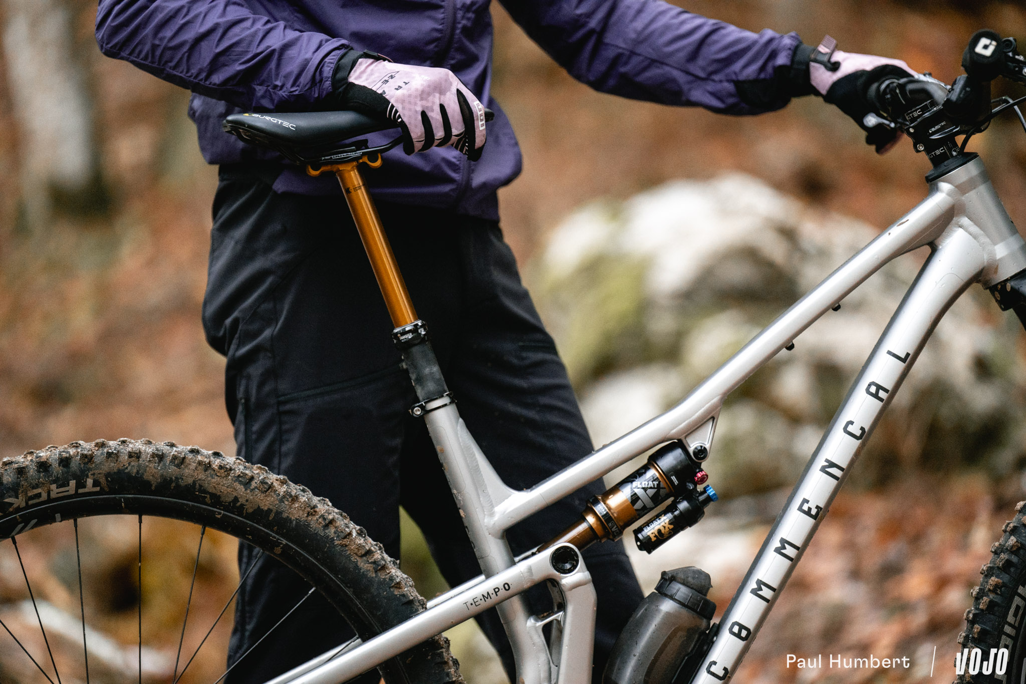 Sur le papier, aucun doute possible : avec ses 125 mm de débattement derrière et 140 mm devant le Tempo est bien un « petit vélo » et c’est bien un Commencal. Esthétiquement, il ressemble à un Commencal avec ces lignes sans artifices, ces tubes aux formes nettes et cette apparente simplicité qui caractérise les vélos de la marque depuis quelques années, et surtout, il est en aluminium.