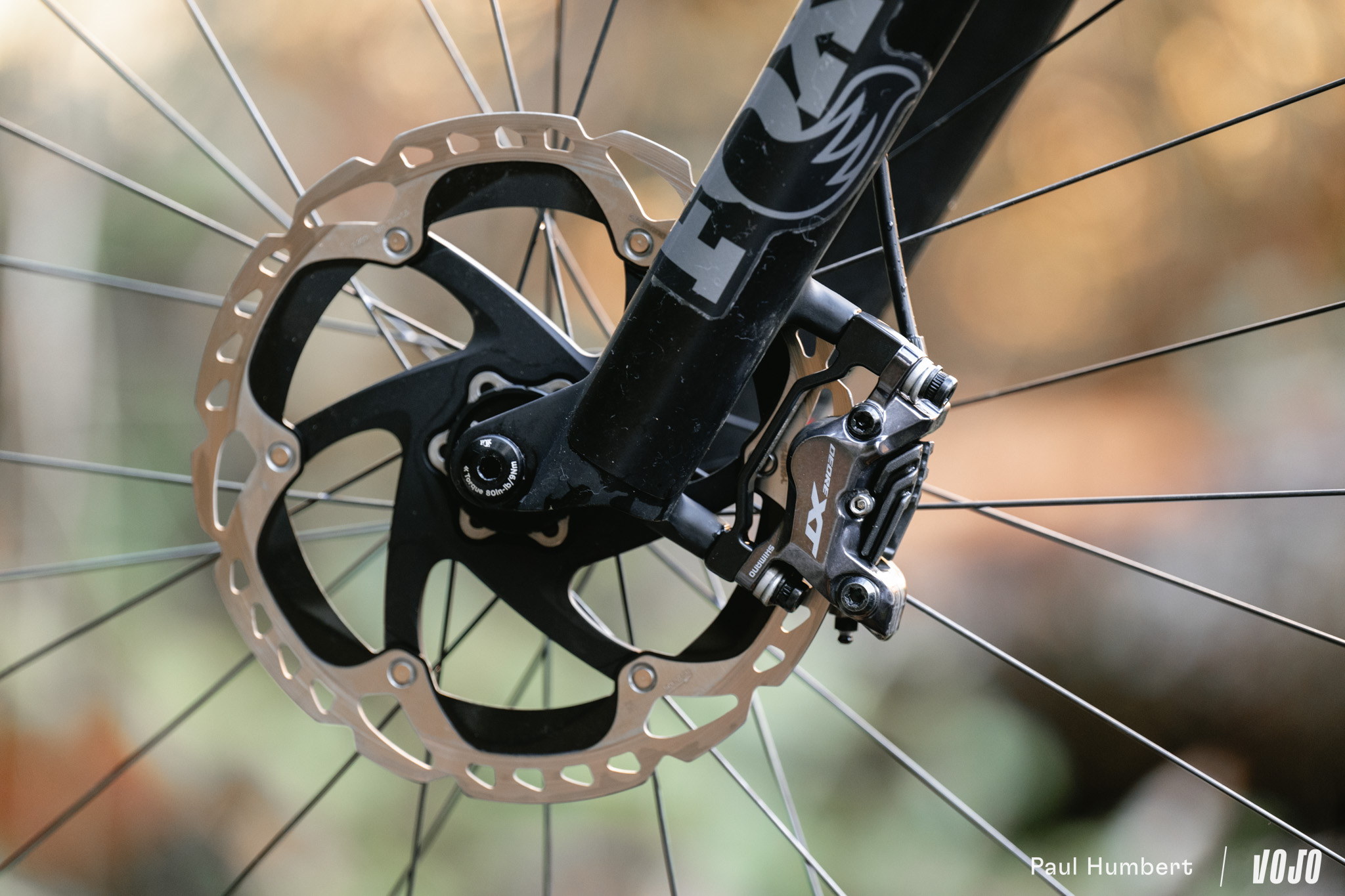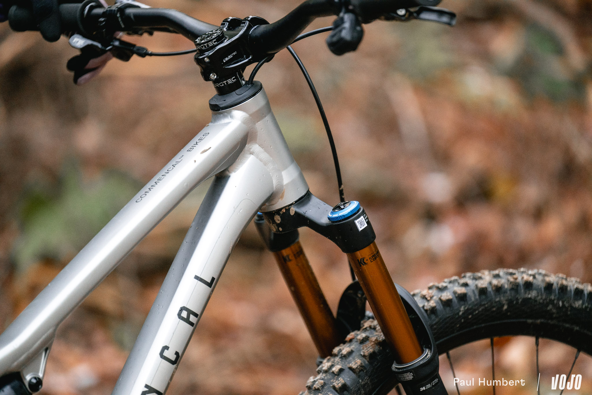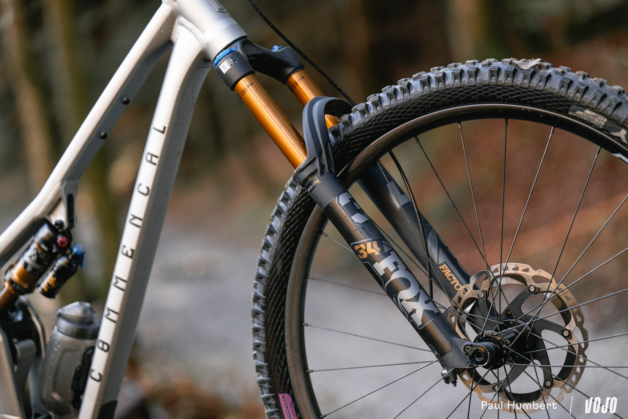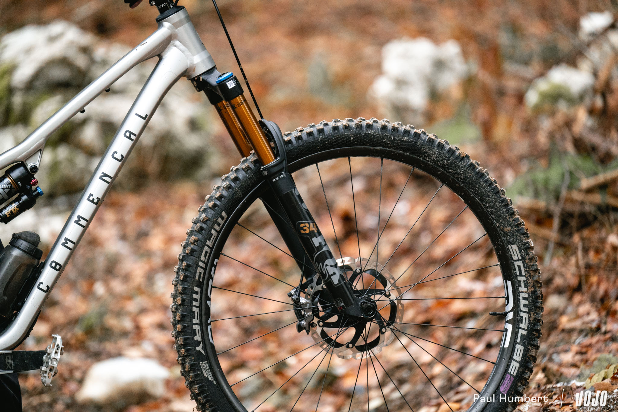 Cependant, chez Vojo on estime que la Fit4 n’a pas sa place au-delà de 130 mm de débattement tant l’hydraulique est dépassée et la fourche manque de soutien, donc on est très content d’avoir cette 34 Grip 2 en 140 mm sur le Tempo. C’est peut-être un poil moins sportif en montée mais peu importe, ce n’est pas vraiment le point fort de la maison Commencal. Surtout, ça promet beaucoup plus de fun en descente !
