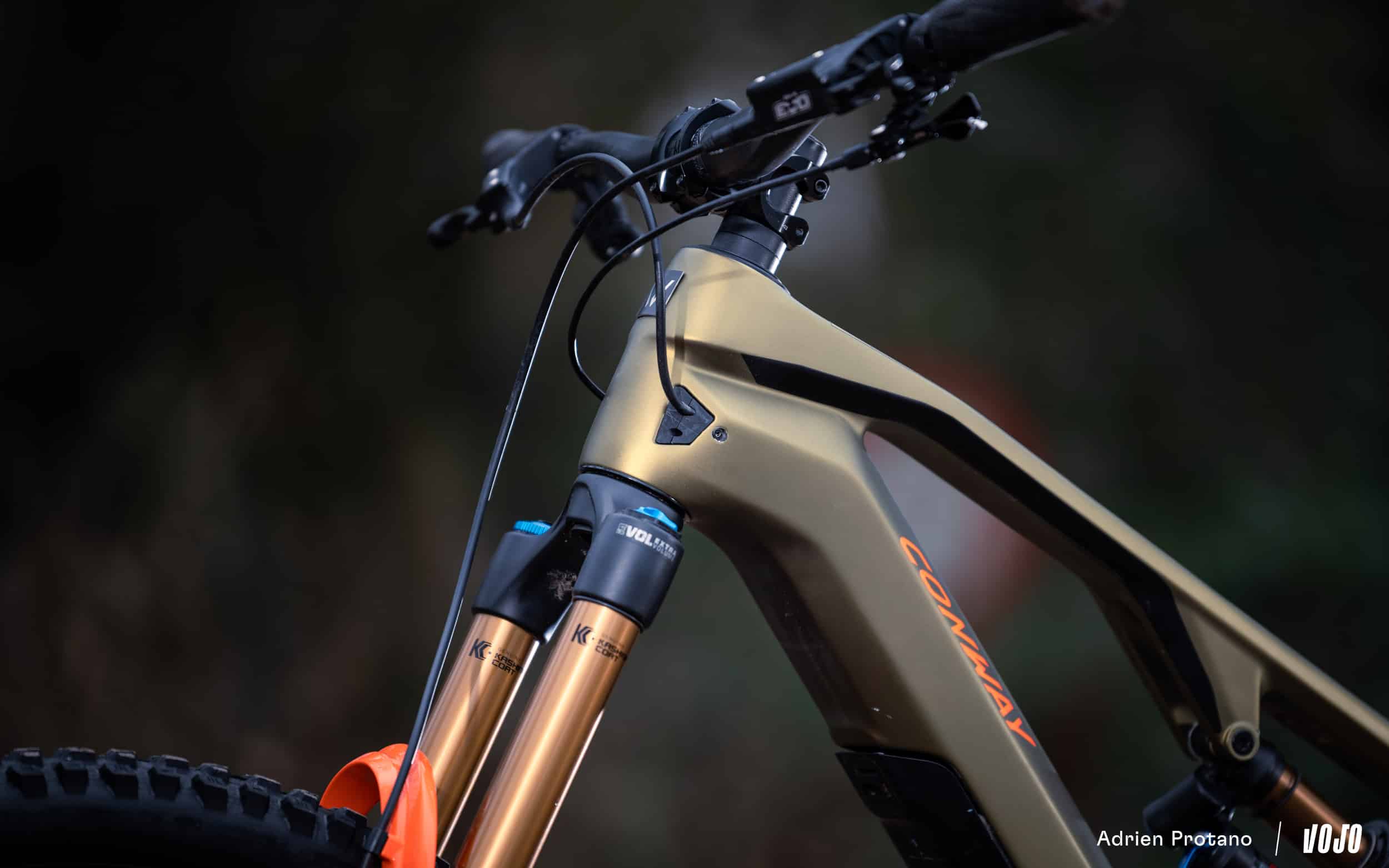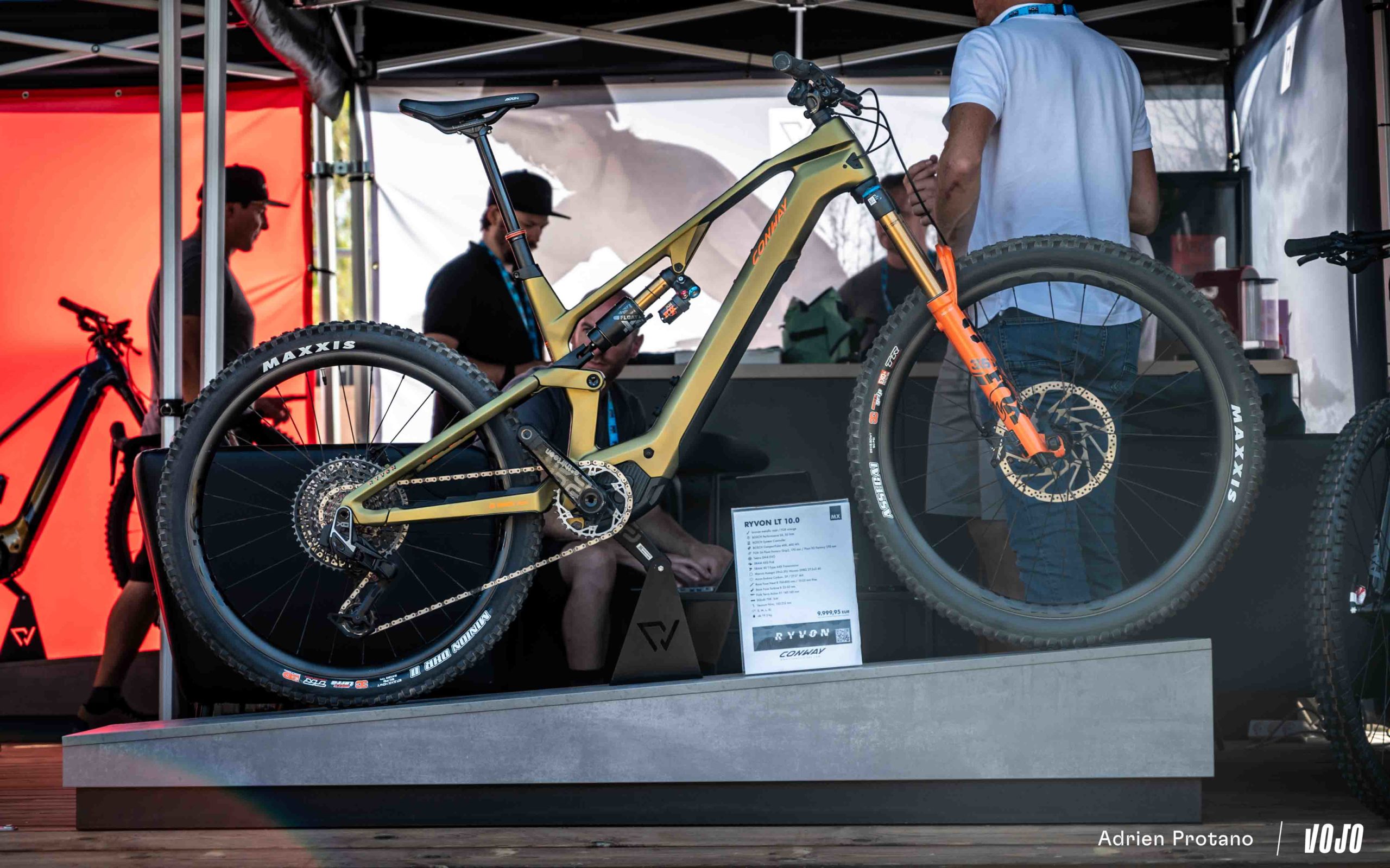 - Conway Ryvon LT 10.0 (9499€) : fourche Fox 36 Factory, amortisseur Fox X2 Factory, transmission Sram T-Type AXS X0, freins Tektro DH-R Evo, roues Acros Enduro Carbon