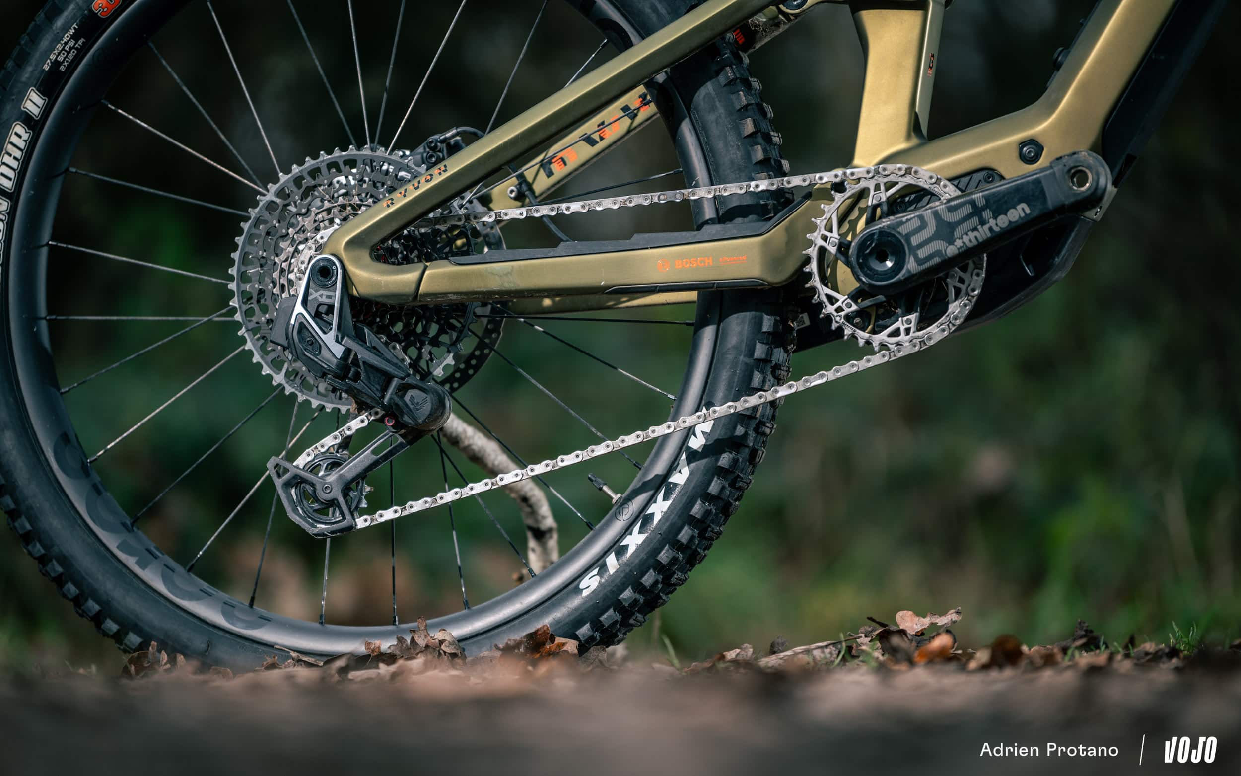 C’est Sram qui est aux commandes du côté de la transmission. On retrouve ainsi un excellent groupe Sram X0 T-Type, dont notre test est à retrouver juste ici : Test | Sram Eagle AXS 2023 : sans égal.