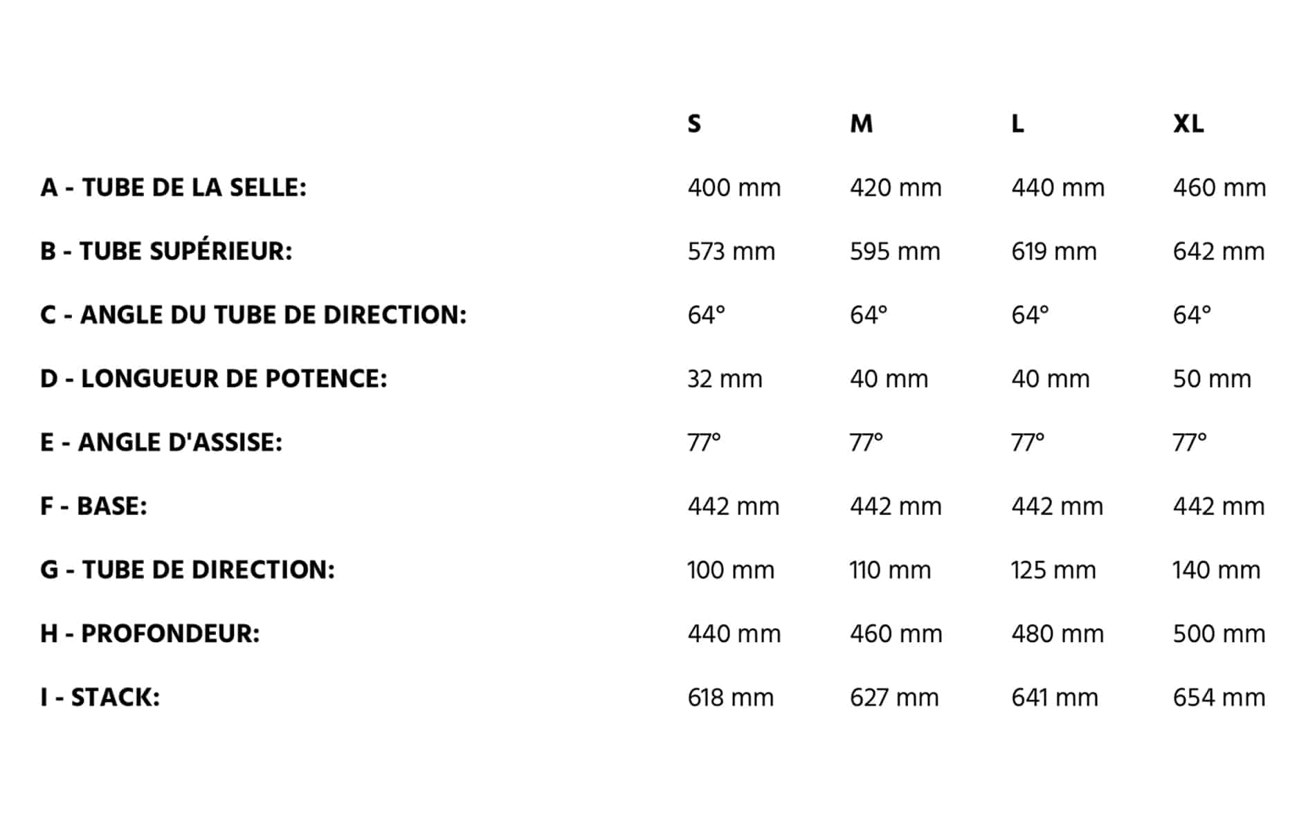 Proposé en quatre tailles (de S à XL), le Ryvon adapte son équipement en fonction de la taille de cadre choisie. Ainsi, l’épaisseur des poignées, la largeur de la selle, la longueur de la potence, la largeur et le rise du cintre ainsi que la longueur des manivelles sont modifiés en conséquence en fonction de la taille de cadre.