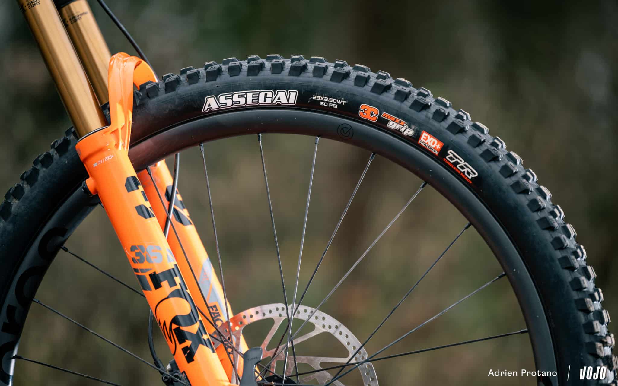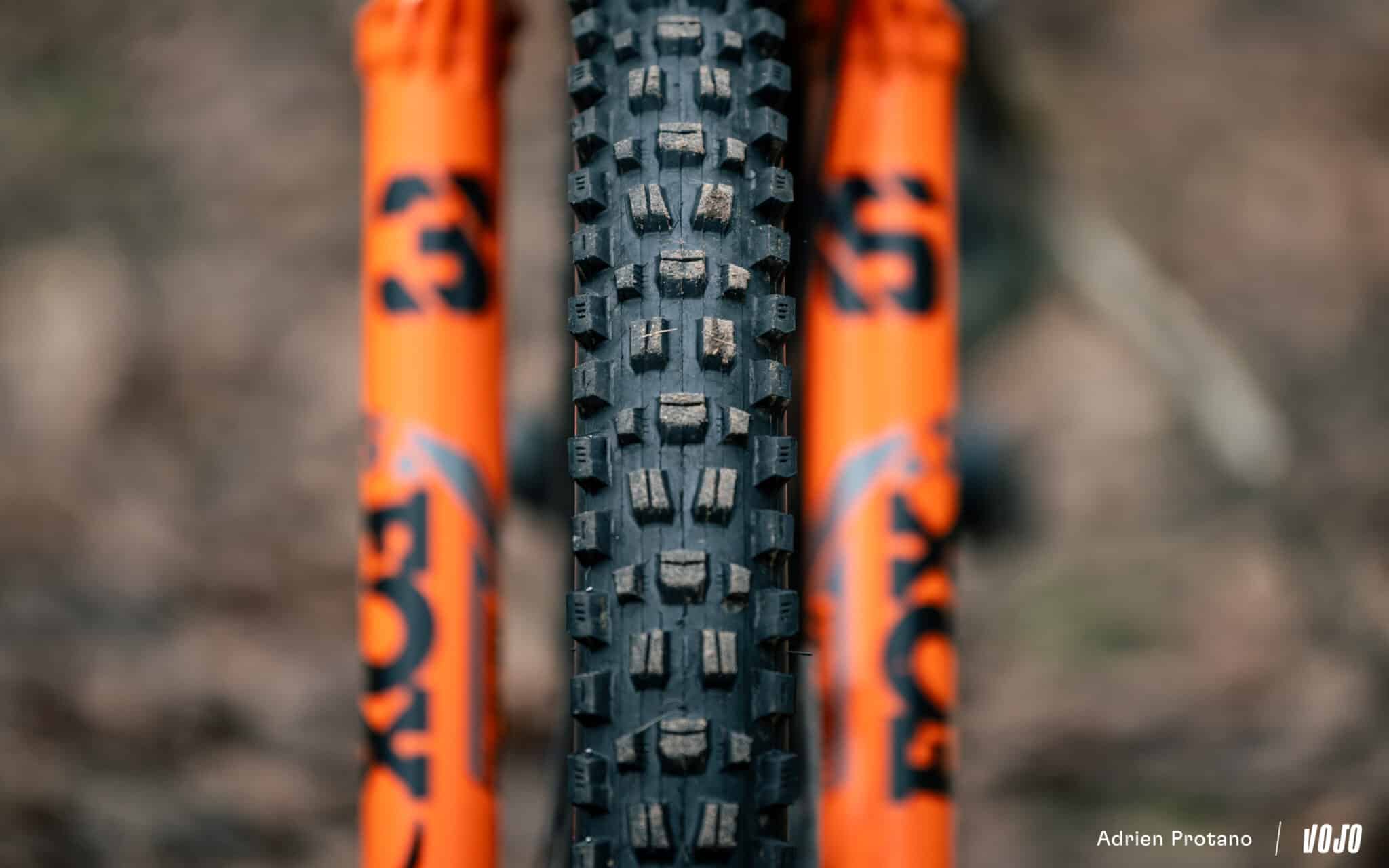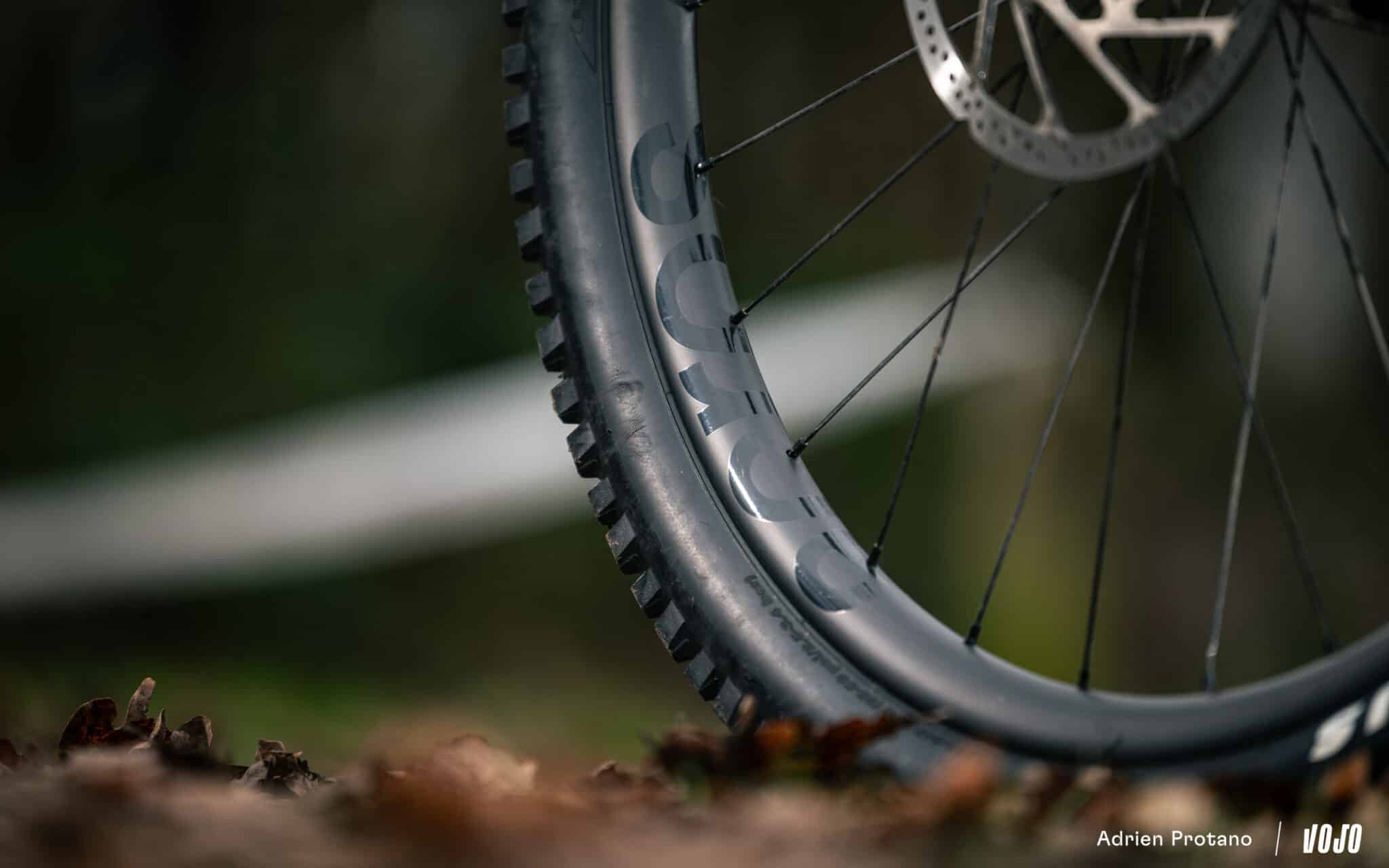 Cette attention aux détails, on la retrouve également dans le choix des carcasses du train roulant. Conway a en effet opté pour un Maxxis Assegai en carcasse EXO+ (MaxxGrip, 2.50) à l’avant et un Minion DHR II en carcasse DoubleDown (MaxxTerra, 2.40) derrière. Il n’a pas ici question d’économie de bout de chandelle sur le prix ou le poids, qui aurait pour conséquence d’impacter négativement l’expérience sur les sentiers. Ces pneumatiques sont montés sur une paire de roues Acros Enduro en carbone.