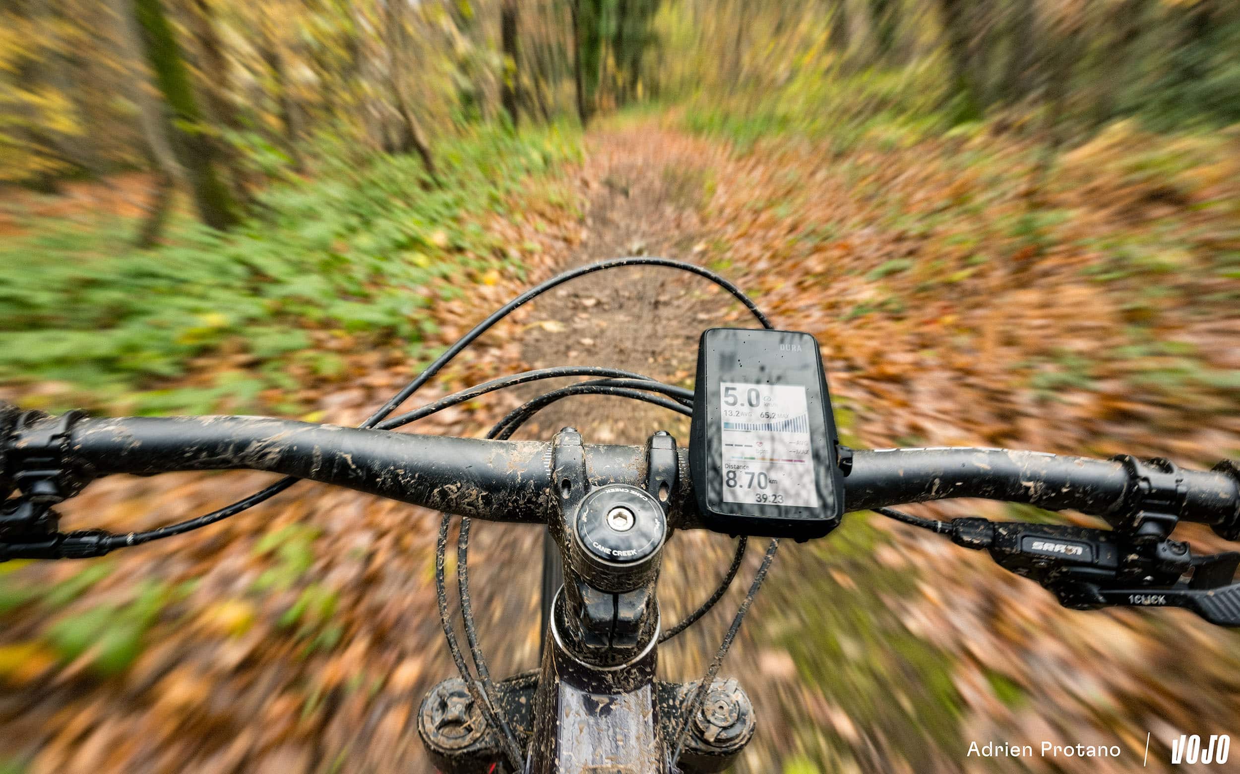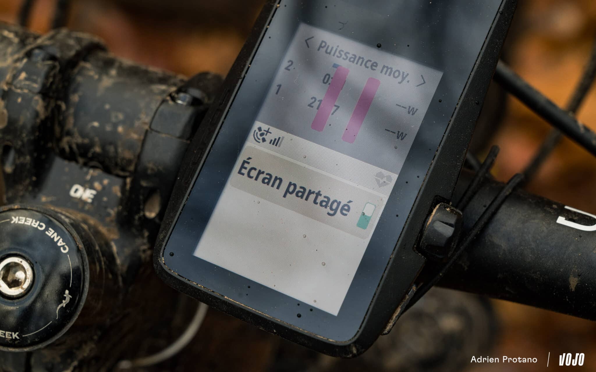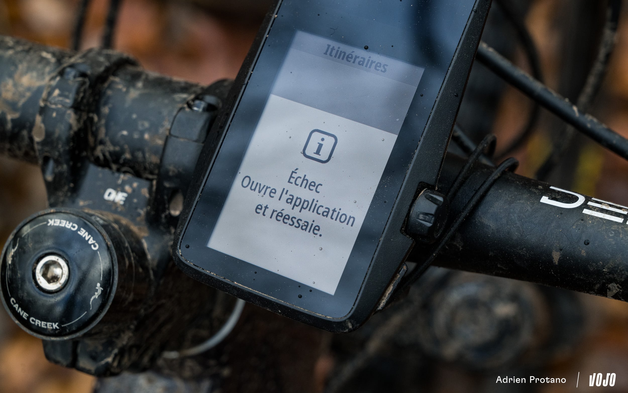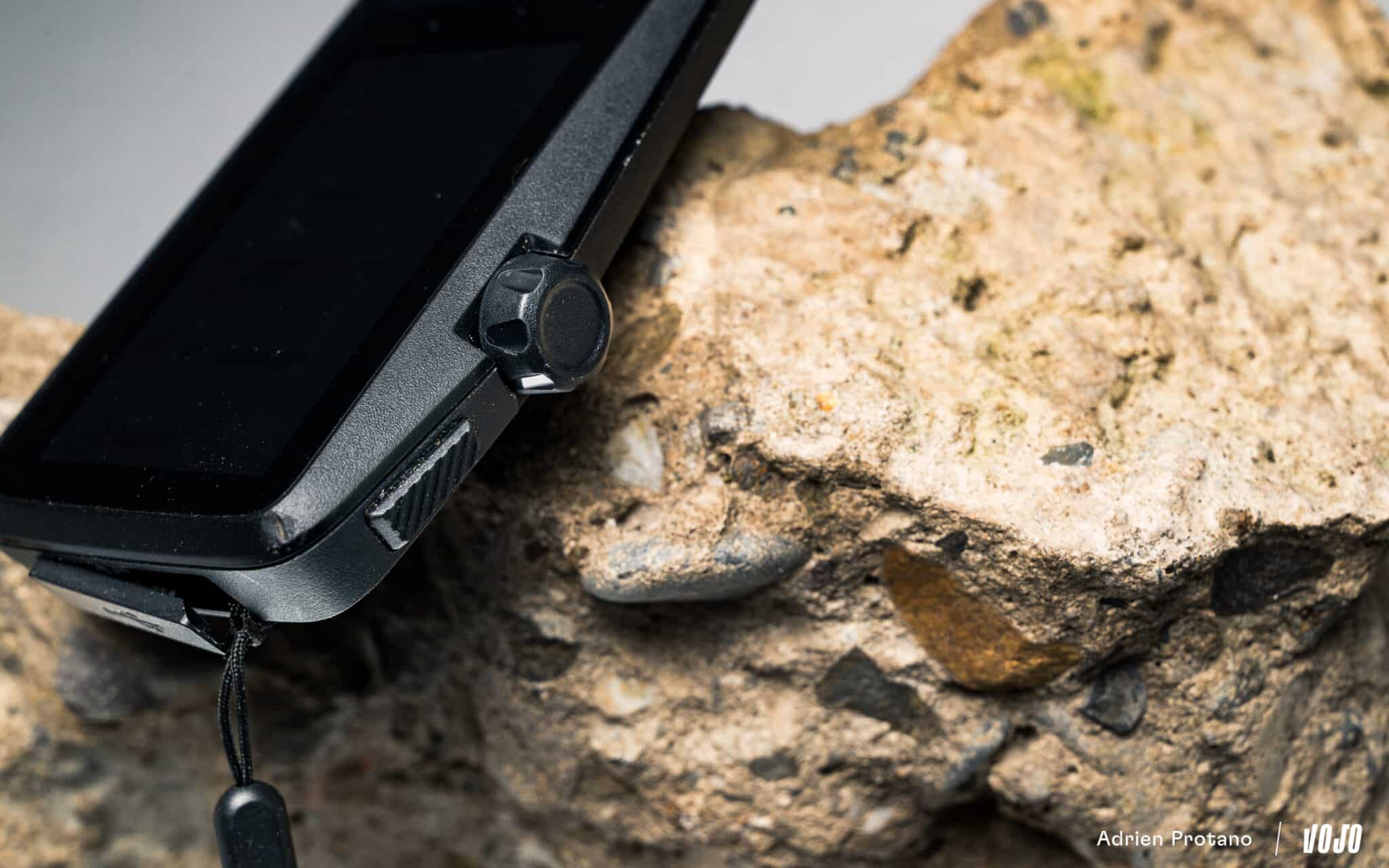 Une fois installé sur le vélo, les premières interactions sont un peu déroutantes avec cette couronne. On essaie de tourner, pas assez intensément, ensuite trop fort… Bref, il faut prendre le coup de main pour l’utiliser naturellement. Après plusieurs semaines passées en sa compagnie, on finira toutefois par en conclure que le combo boutons/écran tactile que l’on retrouve sur la majorité des concurrents nous semblent plus adapté en VTT où le terrain est souvent accidenté. D’autant plus pour votre humble serviteur qui est… gaucher (or cette molette est positionnée à droite) !