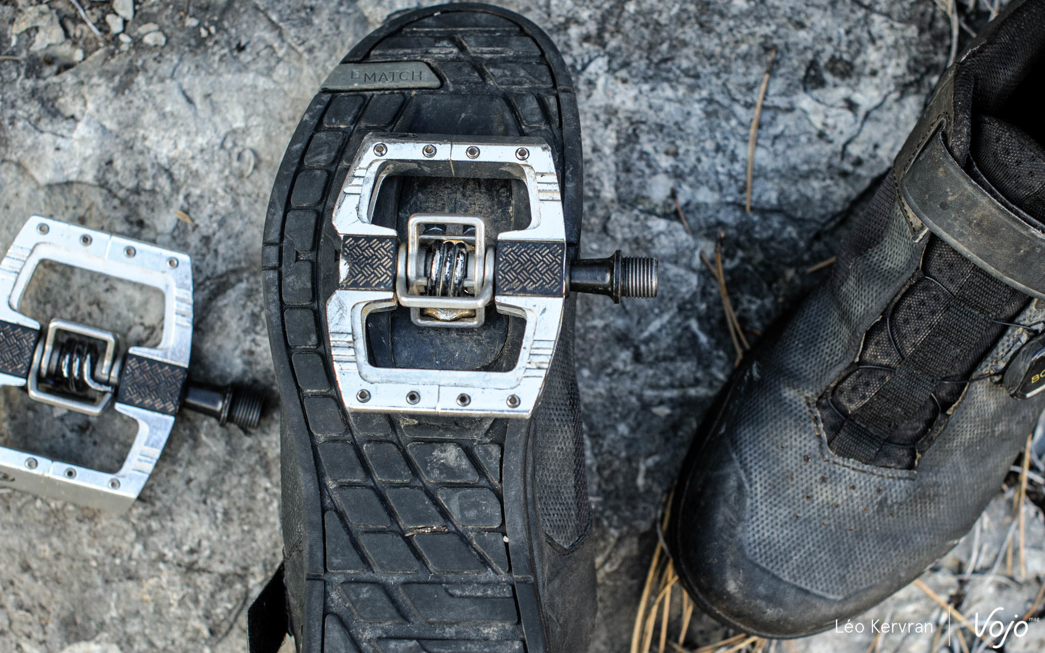 Dans les faits, cela se traduit par le « Match System » : la zone autour de la cale, la forme de la semelle et les mélanges de gomme utilisés ont tous été pensés dans le but d’offrir la meilleure interface possible avec les pédales Crankbrothers. Ce concept, on le retrouve sur tous les modèles de la gamme mais les Mallet Boa se distingue sur deux points :