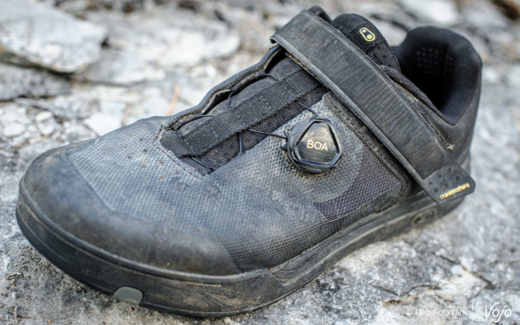 Nous avons toutefois réussi à casser une semelle sur une chute assez spectaculaire (d’où certaines photos en chaussures blanches, prises avant la casse) et sans conséquence mais de l’aveu même de Crankbrothers, c’était la première fois qu’ils voyaient cela. Contactée à ce sujet, la marque nous a confirmé que ce genre de cas de figure est pris en charge par la garantie : « Crankbrothers offre une garantie d’un an sur les chaussures. Bien que les semelles de chaussures puissent subir des contraintes importantes lors d’impacts extrêmes, une semelle cassée et une plaque de cale tordue sont inattendues. Notre but est de permettre aux pratiquants de retourner sur les sentiers le plus rapidement possible et nous sommes heureux de vous aider avec un remplacement sous garantie dans ce cas. »