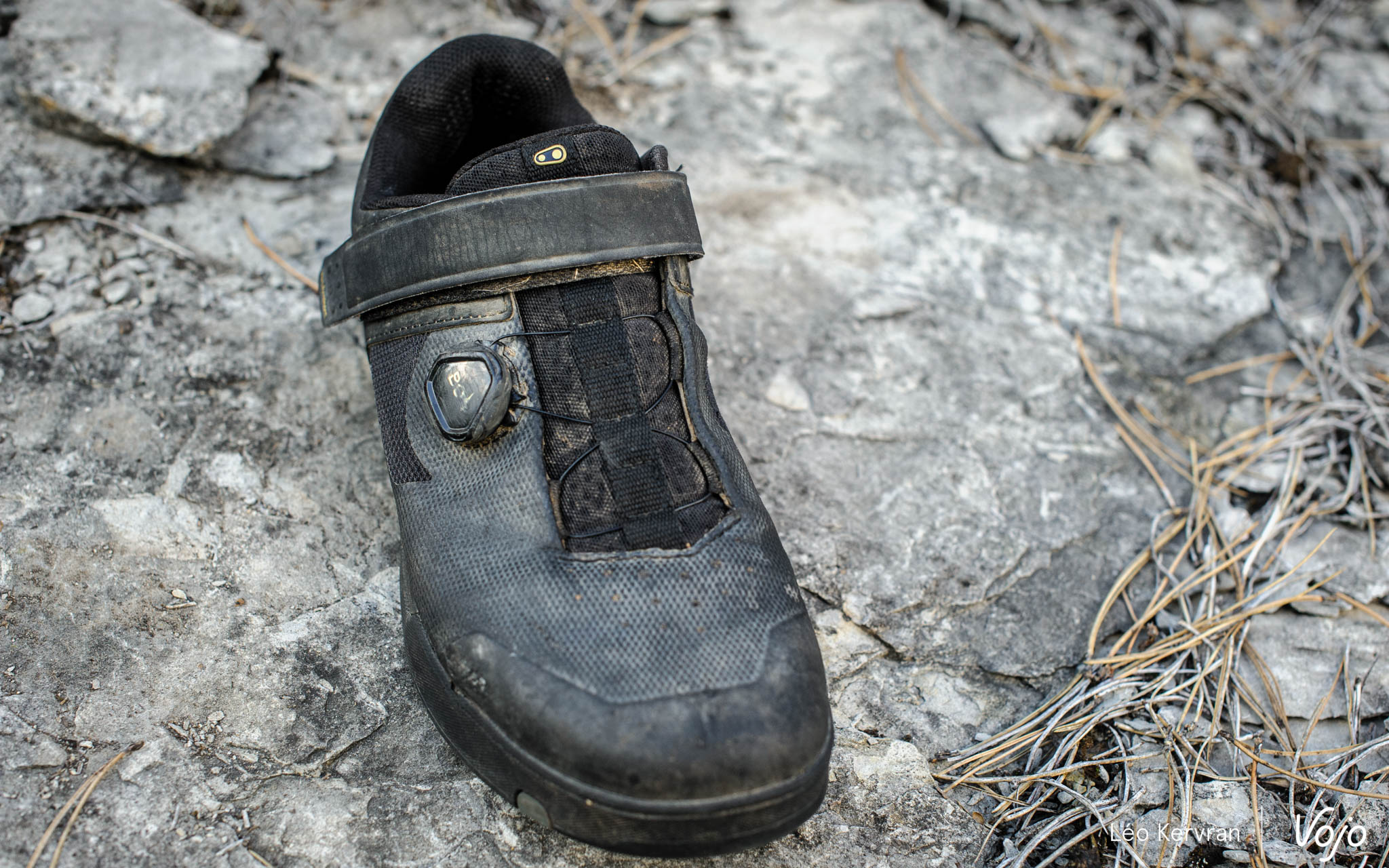 Du côté de la chaussure, le constat est similaire. La durée de vie semble dans la moyenne du marché (autrement dit, entre un et deux ans pour notre usage mais bien plus pour la masse des pratiquants) et comme vous pouvez le constater sur cette photo, seule la semelle en caoutchouc est un peu marquée par les picots de la chaussure. Nous avons notamment été surpris de la solidité des molette Boa, qui ont pris quelques sérieux chocs et arborent de belles rayures mais fonctionnent encore comme au premier jour.