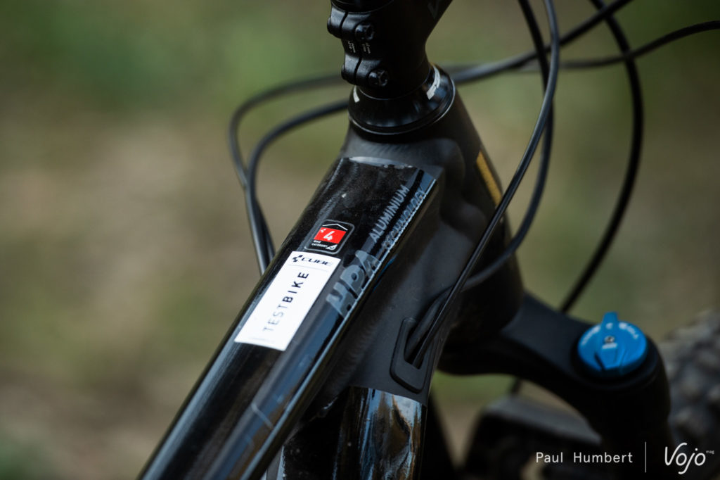 Question géométrie, Cube affiche un angle de direction de 67,3 degrés, un reach de 437mm (en taille L) ainsi que des bases de 473mm. Rien n’est extrême, bien au contraire, et le vélo est équilibré.