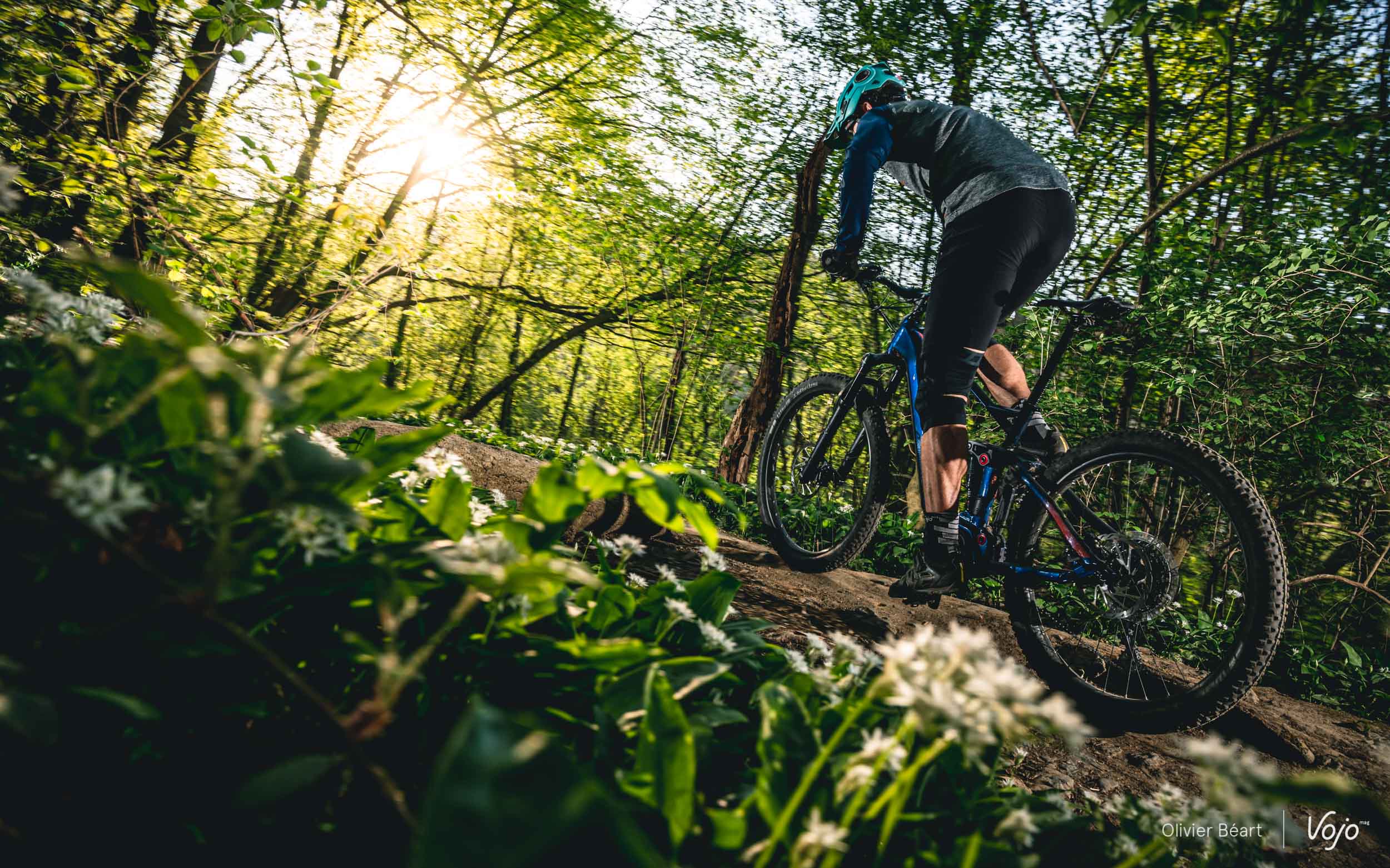 Quand c’est cassant, la suspension arrière encaisse bien les impacts et colle avec aisance la roue arrière au sol. On aurait juste aimé pouvoir régler le rebond vers quelque chose de plus rapide. Ici, nous avons roulé avec le réglage à fond du côté « lapin » (rapide) tout en trouvant toujours cela un peu trop lent pour vraiment bien avaler les successions d’impacts. A l’avant, la RockShox 35 ne démérite pas et elle sera parfaite pour un usage cool. Quand on lui rentre un peu dedans, le châssis encaisse bien, mais on sent que c’est assez basique au niveau des pièces internes. Il y a aussi un claquement en détente pas vraiment pénalisant mais assez perceptible. Comme expliqué plus haut au chapitre des suspensions, les pilotes plus pointus apprécieront la possibilité de pouvoir upgrader leur fourche avec de meilleurs composants internes.
