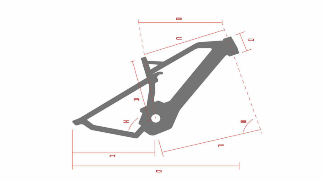 Mis à part l’angle de direction assez couché de 66° qui est dans la tendance actuelle, le reste des cotes joue plutôt dans le classique et ne témoigne pas d’une volonté d’innovation à ce niveau. Le cadre présente un reach assez court (ne vous fiez pas aux chiffres du tableau pour la valeur « B », ceux-ci nous semblent clairement farfelus) et nous vous conseillons sans hésiter de partir sur la taille L dès 175cm et d’envisager le XL dès 180cm.