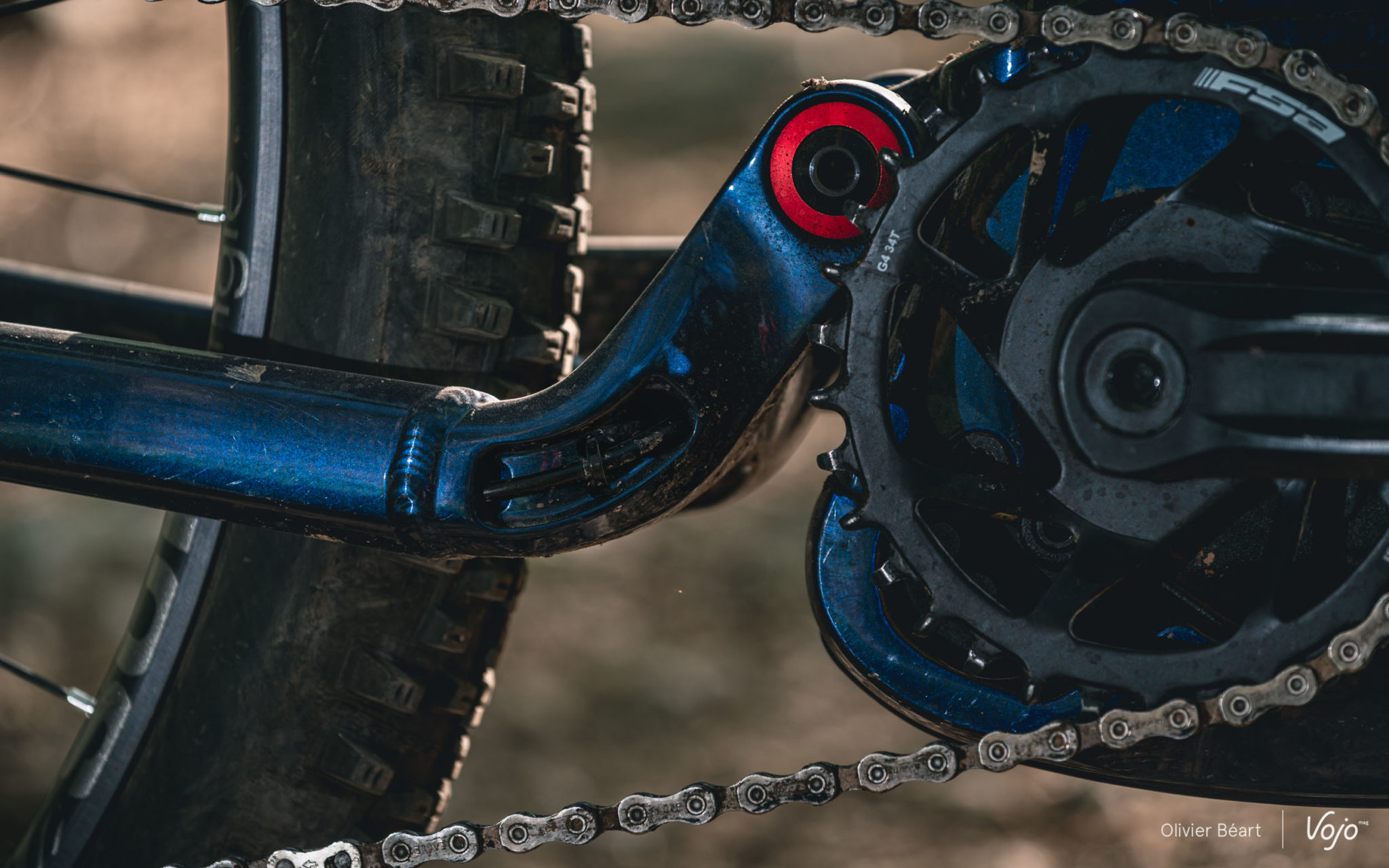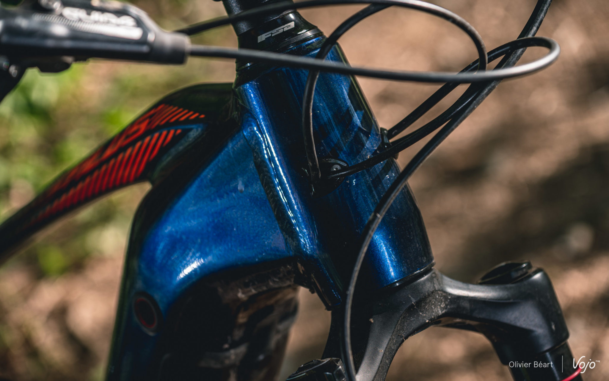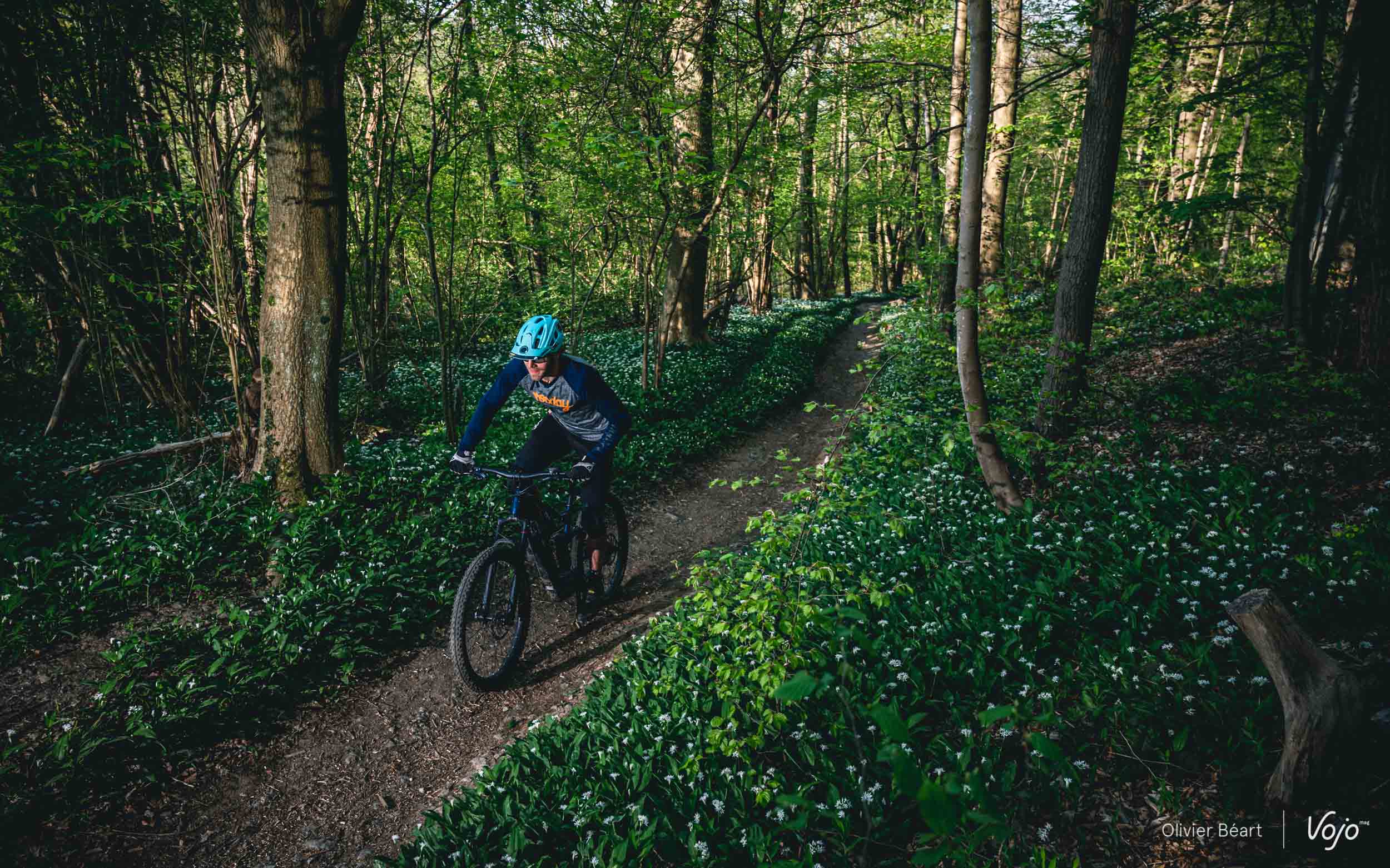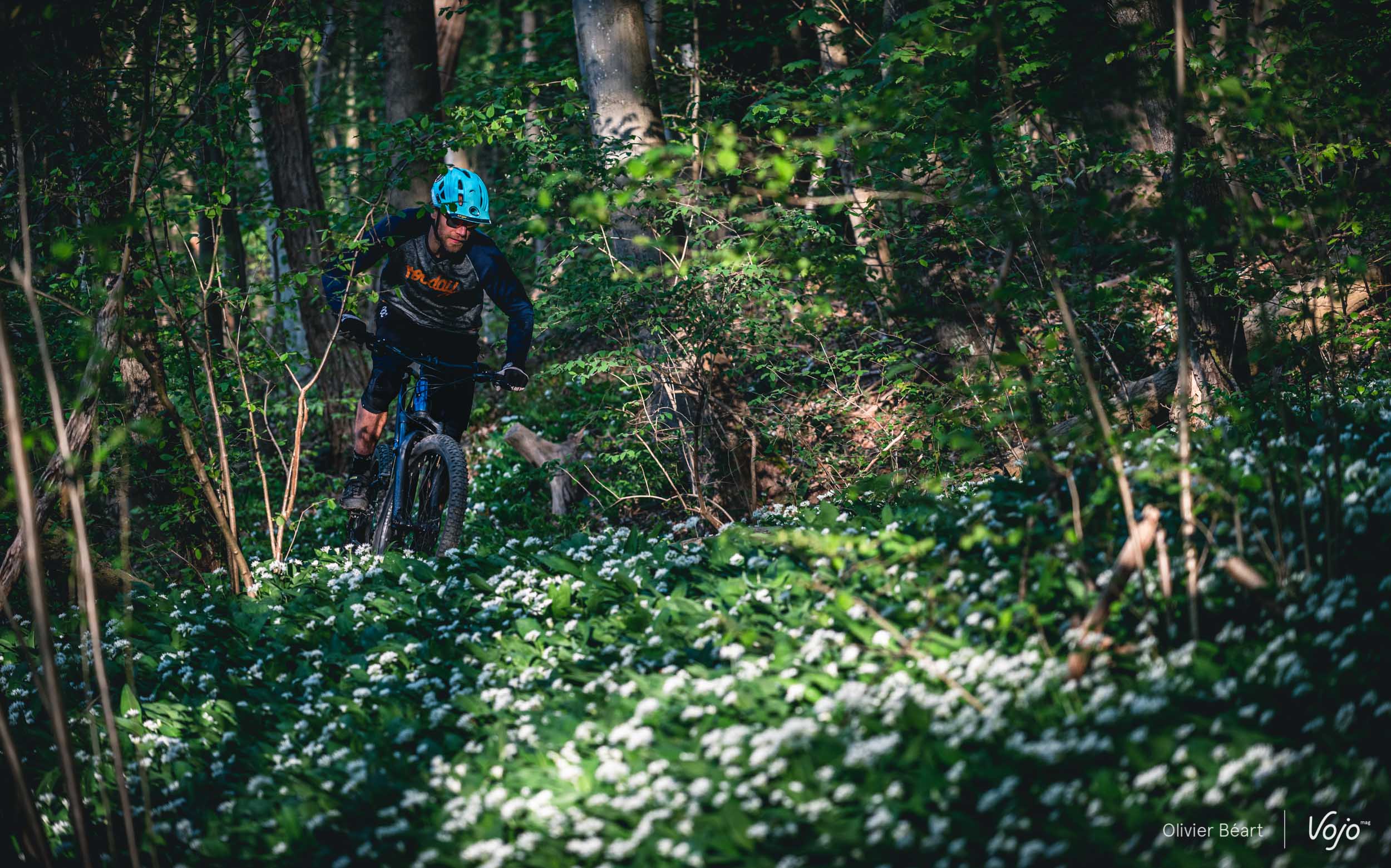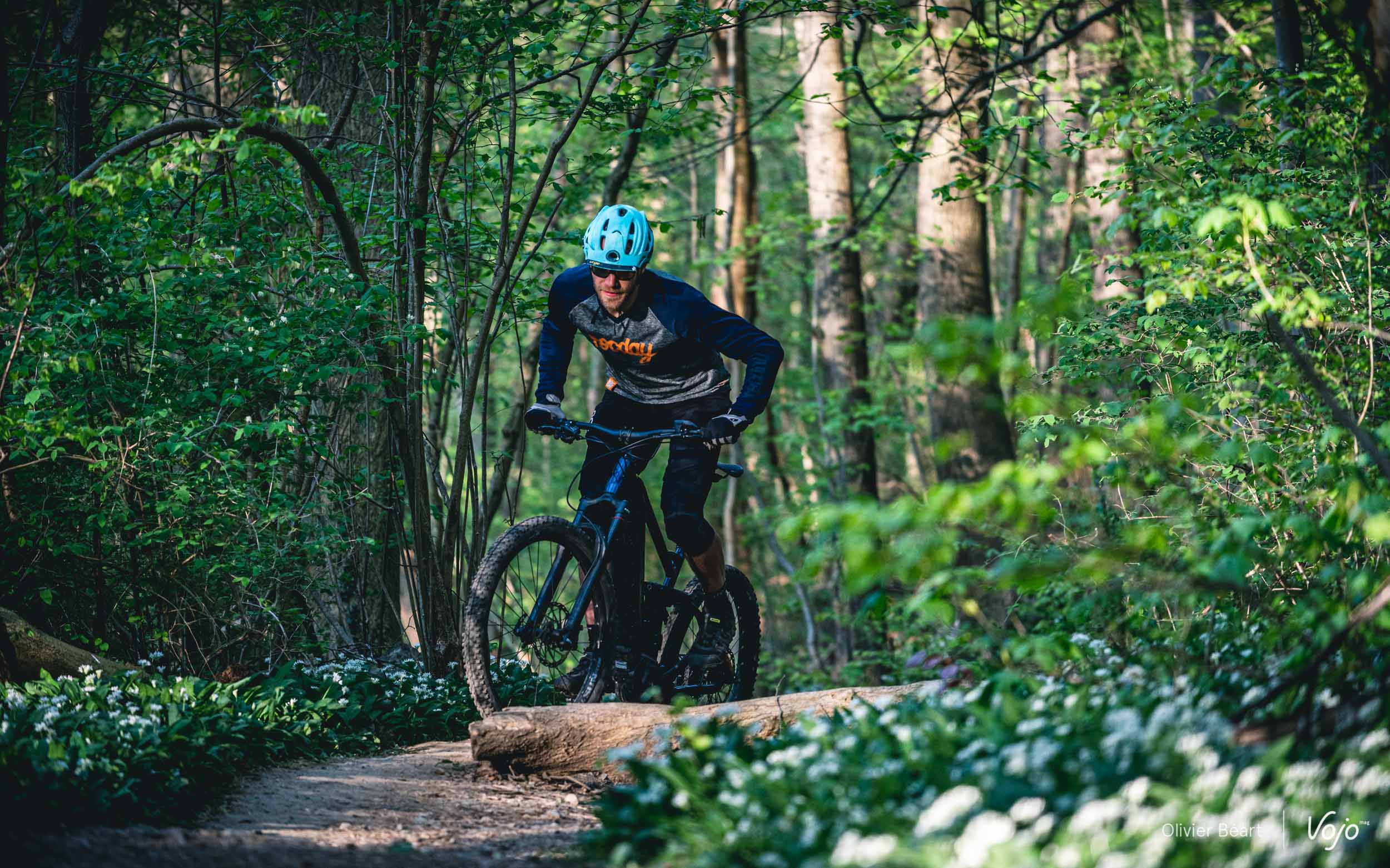 Ce n’est pas un grand sauteur, mais quand on sait y faire, ce n’est pas si difficile que cela de s’envoyer en l’air à son guidon et il se prête bien à quelques excentricités. Son boîtier de pédalier très bas et son empattement généreux lui procurent aussi une belle stabilité et un comportement rassurant quand on cherche à prendre un peu de vitesse dans les portions droites. A voir l’espace restant autour de la roue arrière, on se dit que le cadre est sans doute aussi conçu pour accueillir des roues de 29″ (contrairement à la fourche qui est une pure 27,5″). Heureusement que le carter de protection est solide car il arrive régulièrement qu’on tape des cailloux ou des branches au sol. Néanmoins, même si les ingrédients sont surprenants, le résultat est plutôt intéressant et on apprend vite à s’accommoder des situations où le centre de gravité très bas du vélo sont un désavantage, pour ne profiter que des bons côtés.