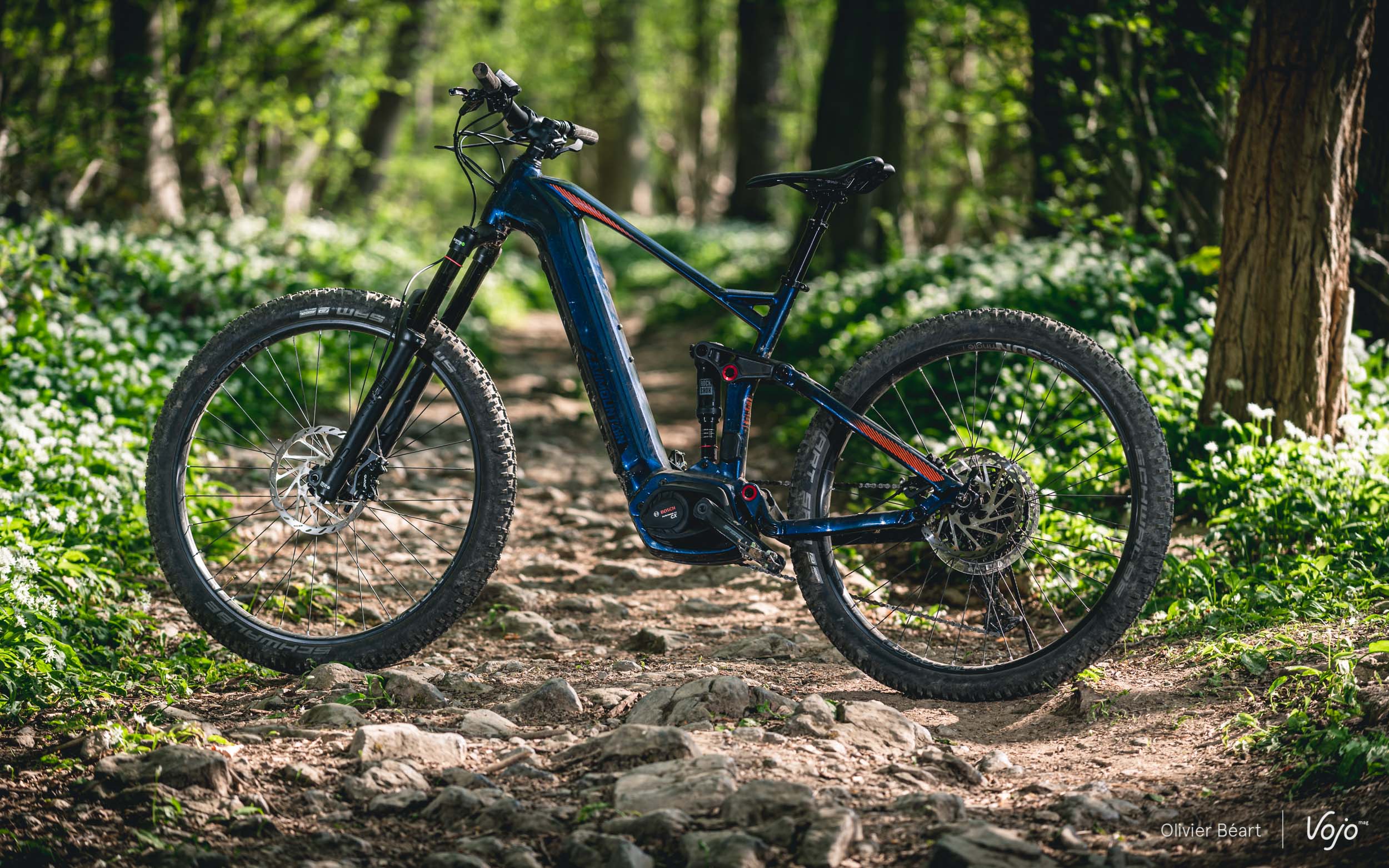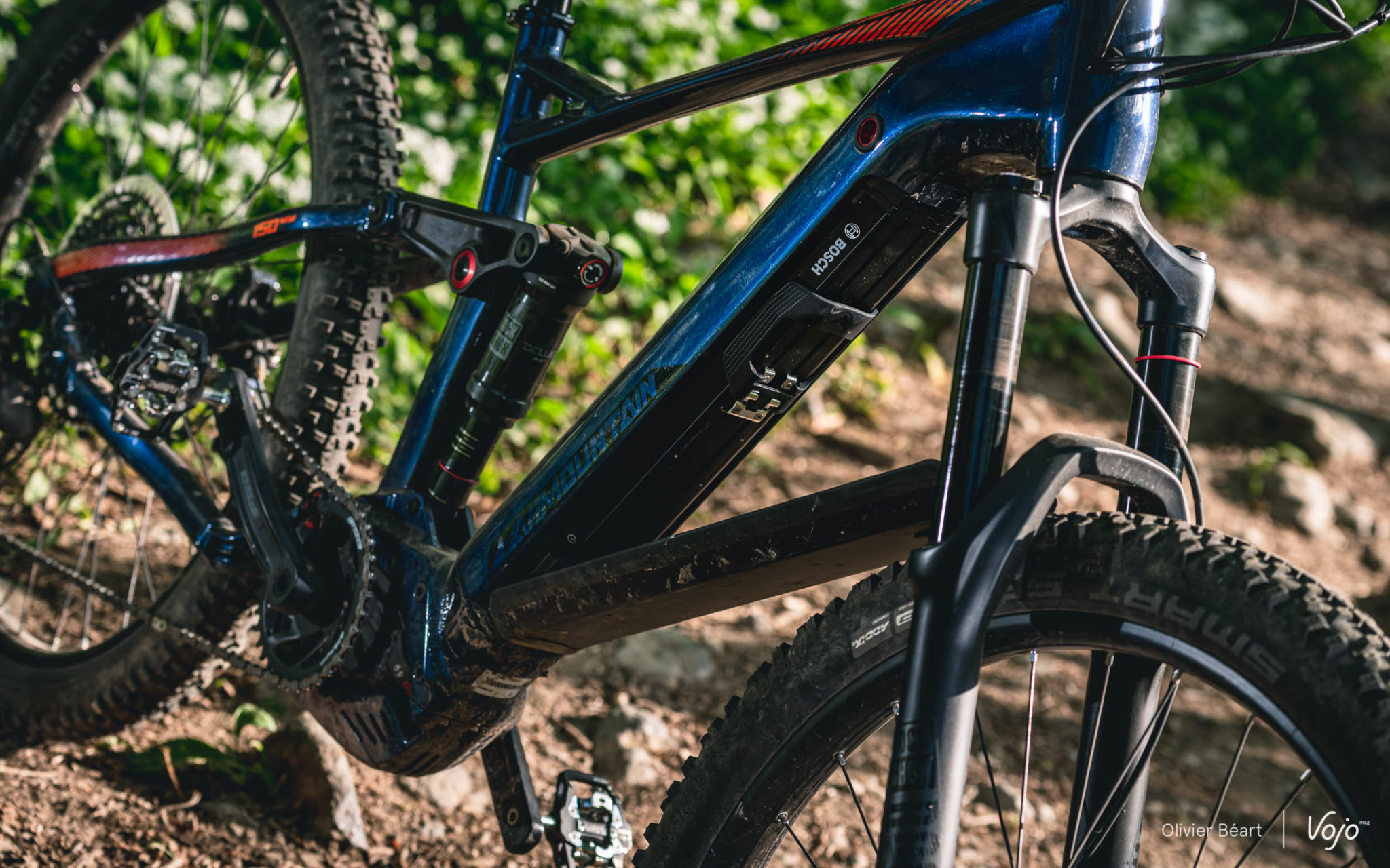 Tiens, en parlant d’autonomie : la batterie 500Wh est-elle suffisante ? A nos yeux, oui. Bien sûr, on irait plus loin avec une 625Wh, mais le nouveau moteur Bosch, même s’il n’est pas le plus frugal du marché, consomme tout de même nettement moins que son prédécesseur et on peut aujourd’hui envisager sans mal des sorties d’un peu plus de 40km et 1200m de d+ quasi toujours en mode e-mtb, avant de tomber en panne sèche. Avec la génération précédente, nous avions du mal à dépasser les 35km et 1000m de d+ en faisant attention, ce qui était frustrant. Oubliez par contre les sorties de « 4h et 2000m de d+ » promises sur le site de la marque, c’est irréaliste selon nous. Mais on a tout de même de quoi faire de très belles choses avec la batterie de 500Wh montée de série, et malgré le poids de l’engin qui, s’il est conséquent, ne se fait au final pas trop sentir sur le terrain.