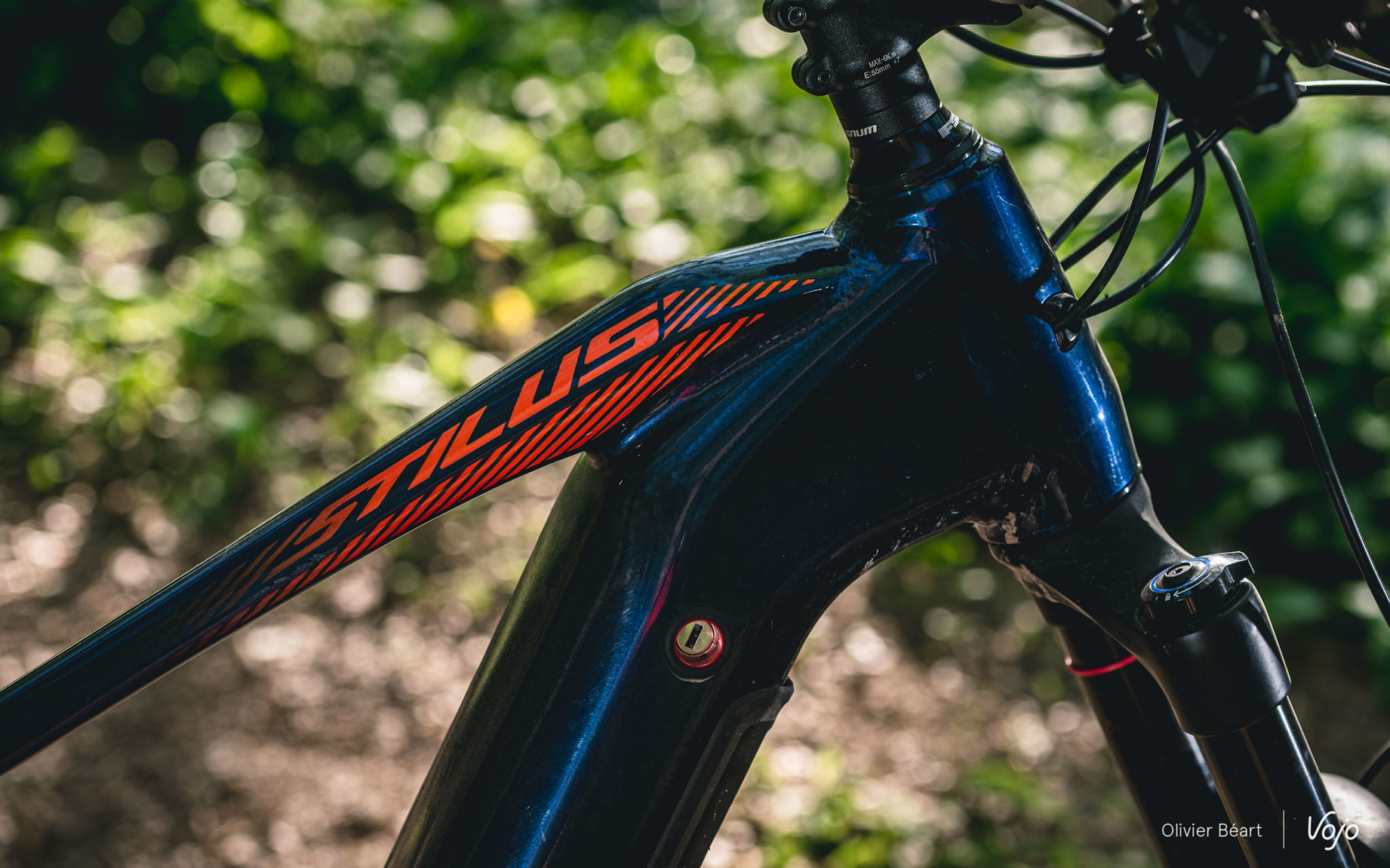 En montée, le Stilus est particulièrement à l’aise. Quand c’est très raide, ses pneus larges et son arrière très long sont des atouts et on peut facilement venir à bout de beaux petits défis en mode montée impossible. La répartition des masses est bien équilibrée et le mode e-mtb du moteur Bosch fait merveille pour offrir du couple avec la subtilité indispensable pour ne pas perdre l’adhérence. De manière générale, nous avons roulé au moins 80% du temps dans ce mode, en oubliant le mode turbo trop agressif à notre goût, et en réservant les modes inférieurs aux sorties où il faut soigner l’autonomie. Dommage par contre que Bosch ne permette aucune personnalisation des modes d’assistance, comme le proposent les principaux concurrents Brose et Shimano.