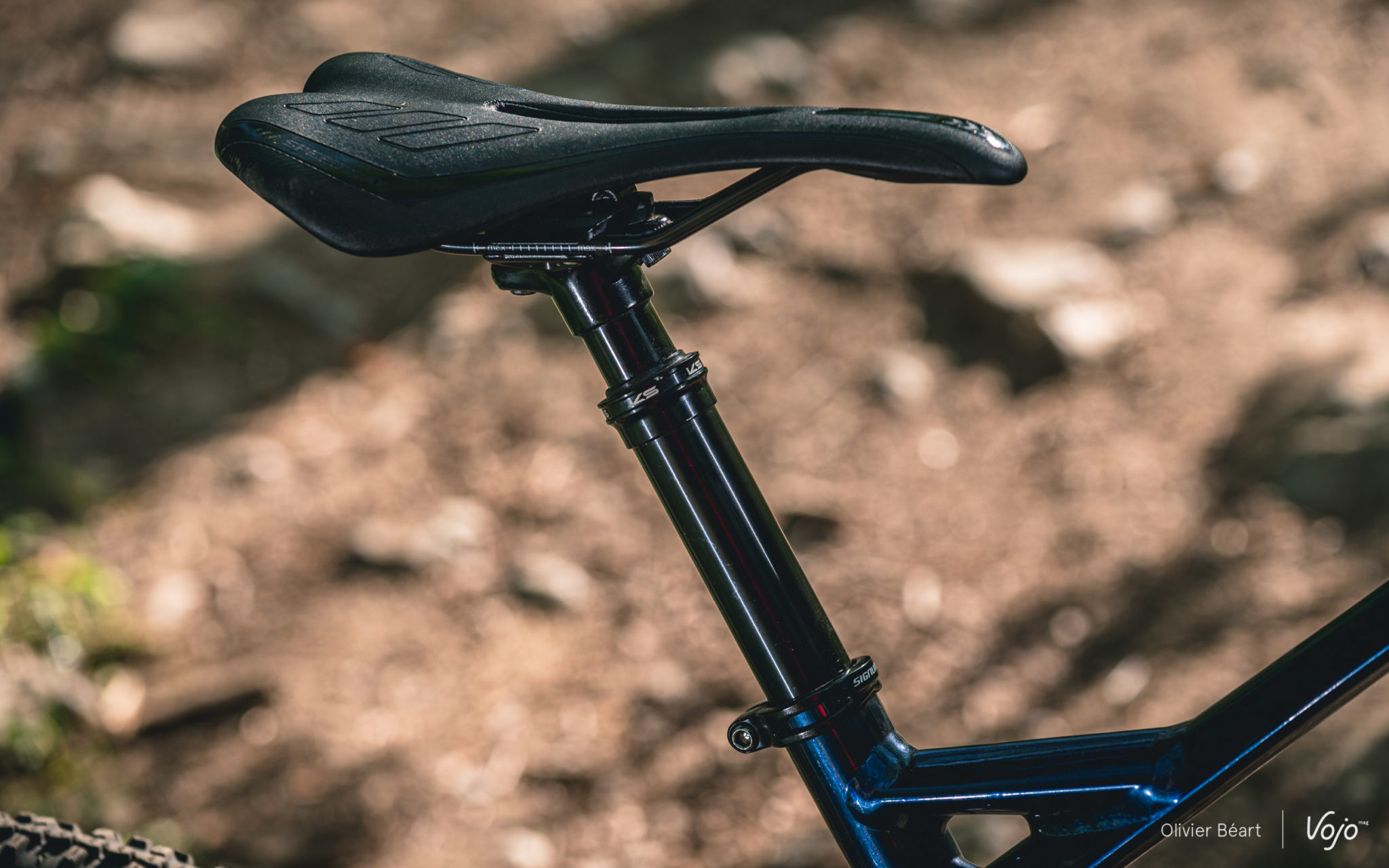 Bémol aussi au niveau de la tige de selle télescopique, qui provient pourtant de chez KS, un spécialiste réputé du domaine. Sa présence est indispensable sur un tel vélo, et elle s’est montrée agréable lors des premières sorties… avant de perdre toute son huile et de rendre l’âme. Decathlon a reconnu un souci sur une série de ce composant monté sur le Stilus et promet un remplacement direct sous garantie par un modèle équivalent pour toute personne qui rencontrerait le souci. On sait que l’enseigne est très large à ce niveau donc on ne se fait pas trop de souci, mais on aurait préféré avoir d’emblée une tige de selle télescopique fiable. D’autant qu’elle est en 30.9 de diamètre, bien moins courant que le 31,6mm, ce qui n’est pas des plus pratique pour trouver une solution de dépannage en cas de souci. Par contre, la selle ne mérite que des éloges. Ne vous laissez pas impressionner par sa finesse, sa forme est parfaite et elle est très confortable.