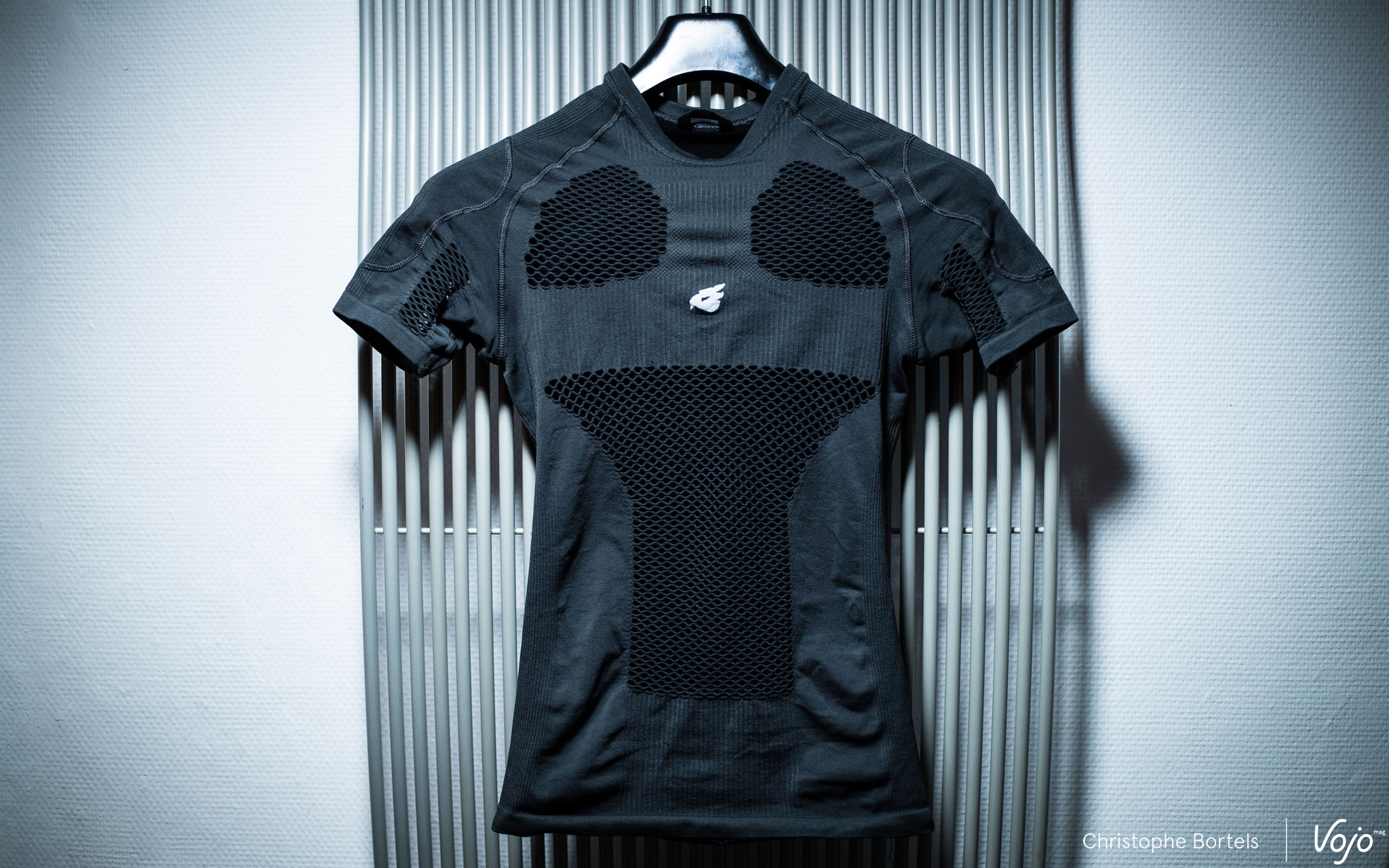 Nous sommes donc face à une dorsale « seamless », autrement dit sans couture, faite d’une seule pièce et à enfiler comme un t-shirt. Mais plutôt que de t-shirt, on devrait en fait parler de première couche technique puisque toute la philosophie du produit est là : un gilet de protection porté au plus près du corps, avec un effet seconde peau, façon sous-vêtement technique qu’on porte sous le maillot en été quand il fait chaud pour réguler l’humidité et la température corporelle. On verra plus loin que cette dorsale ne se limite pas pour autant à un usage estival.