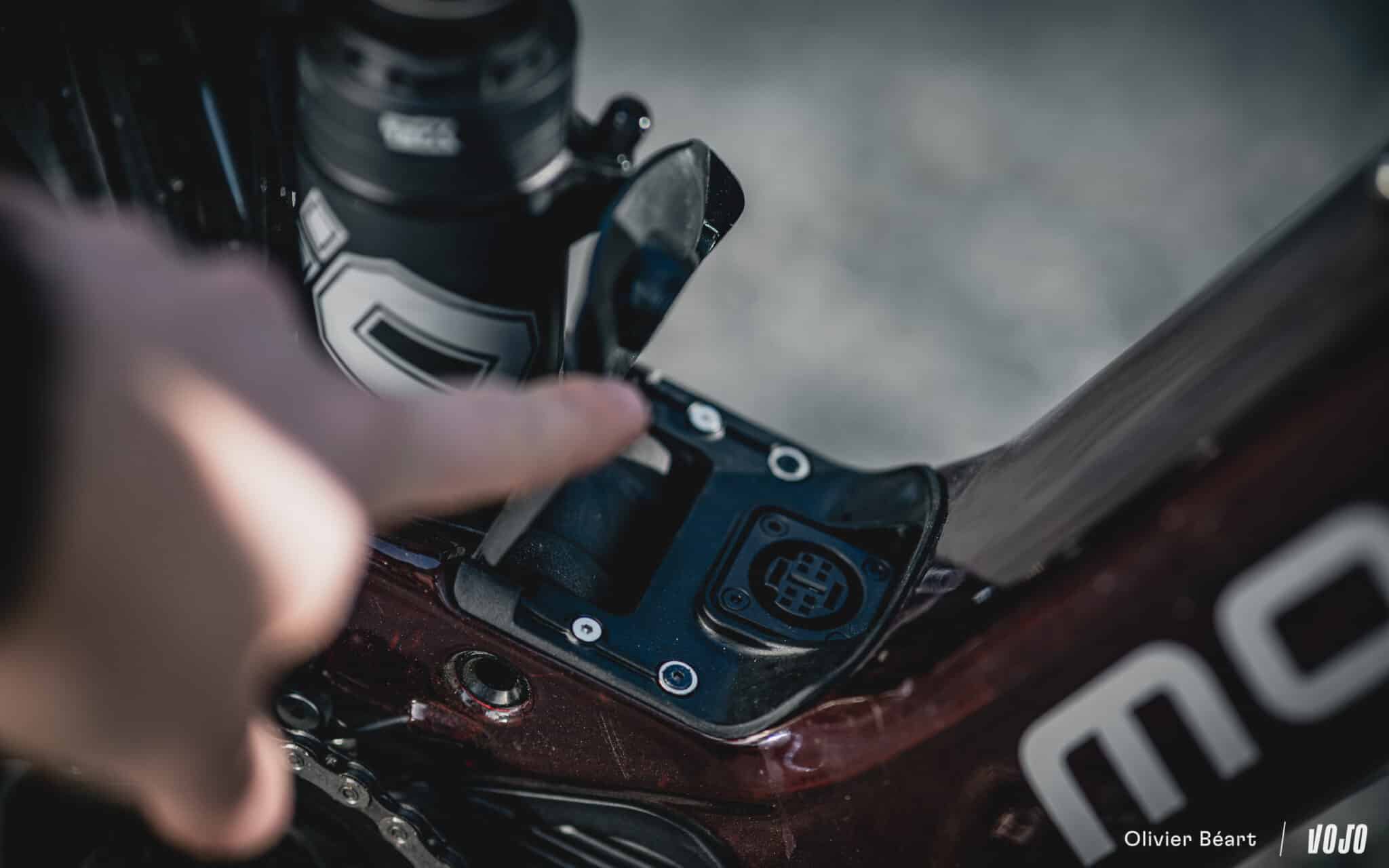 On remarque aussi la présence de protections intégrées pour protéger les bases et haubans de la chaîne, et aussi la très belle intégration du port de charge sous une trappe logée près du support d’amortisseur.