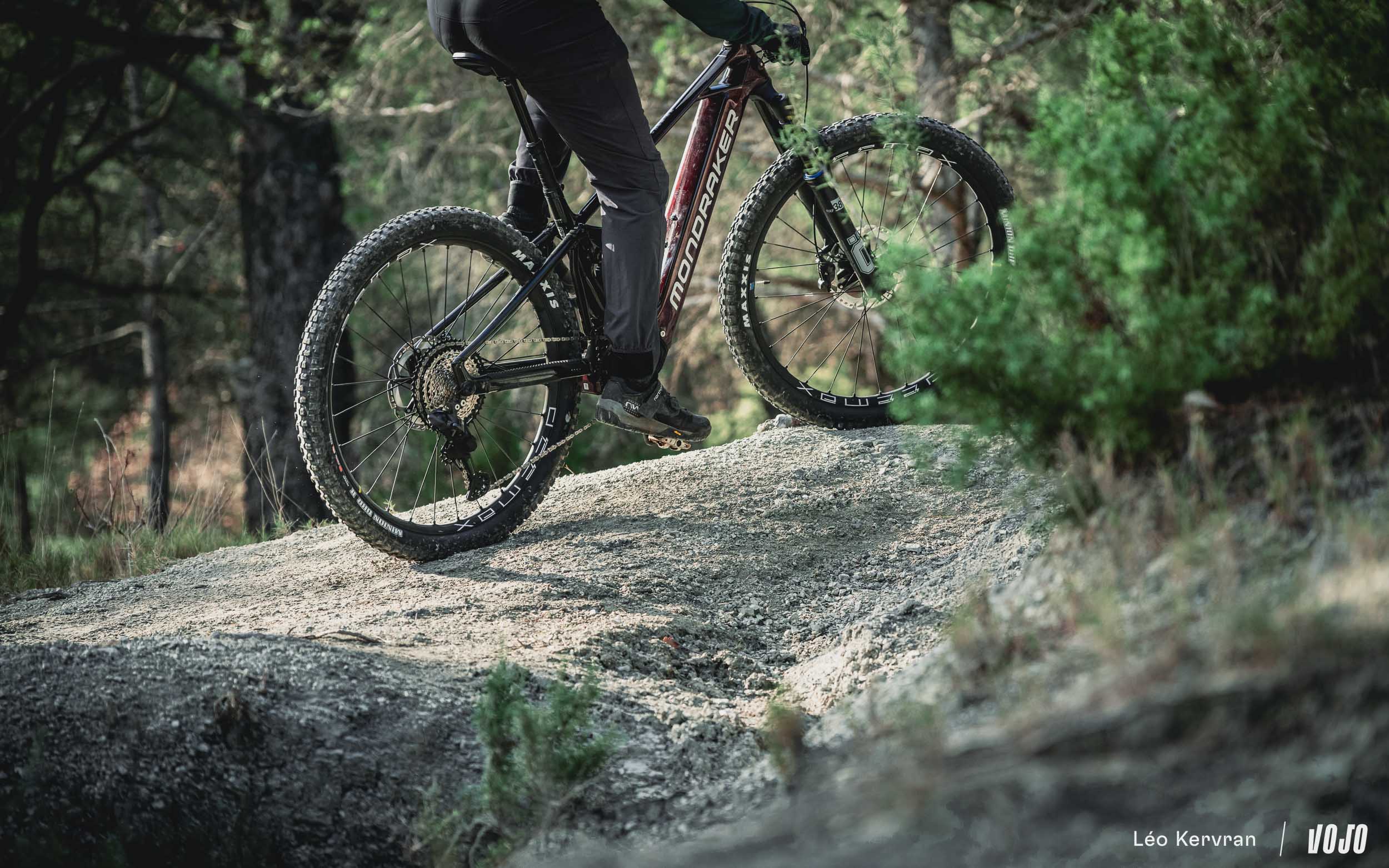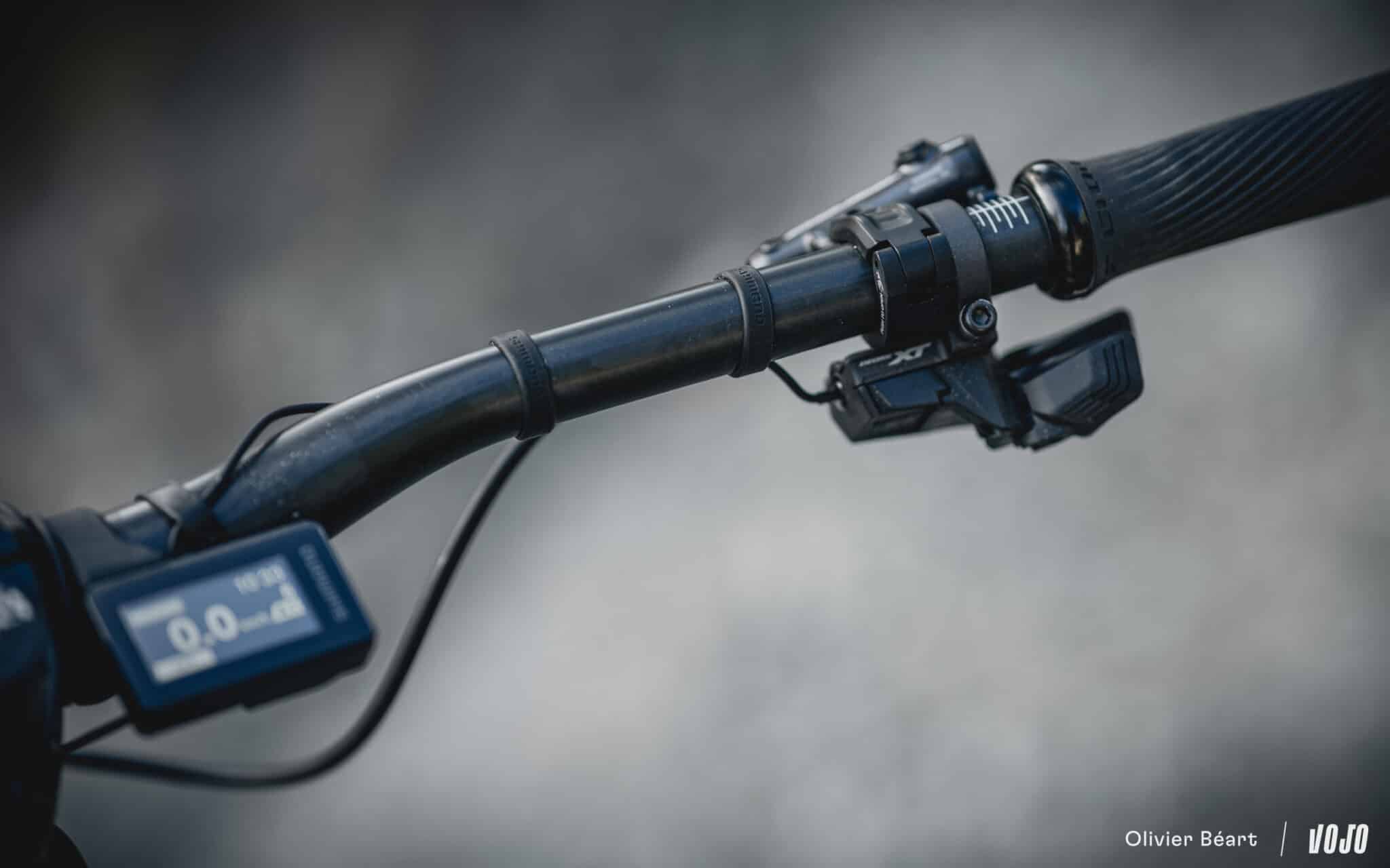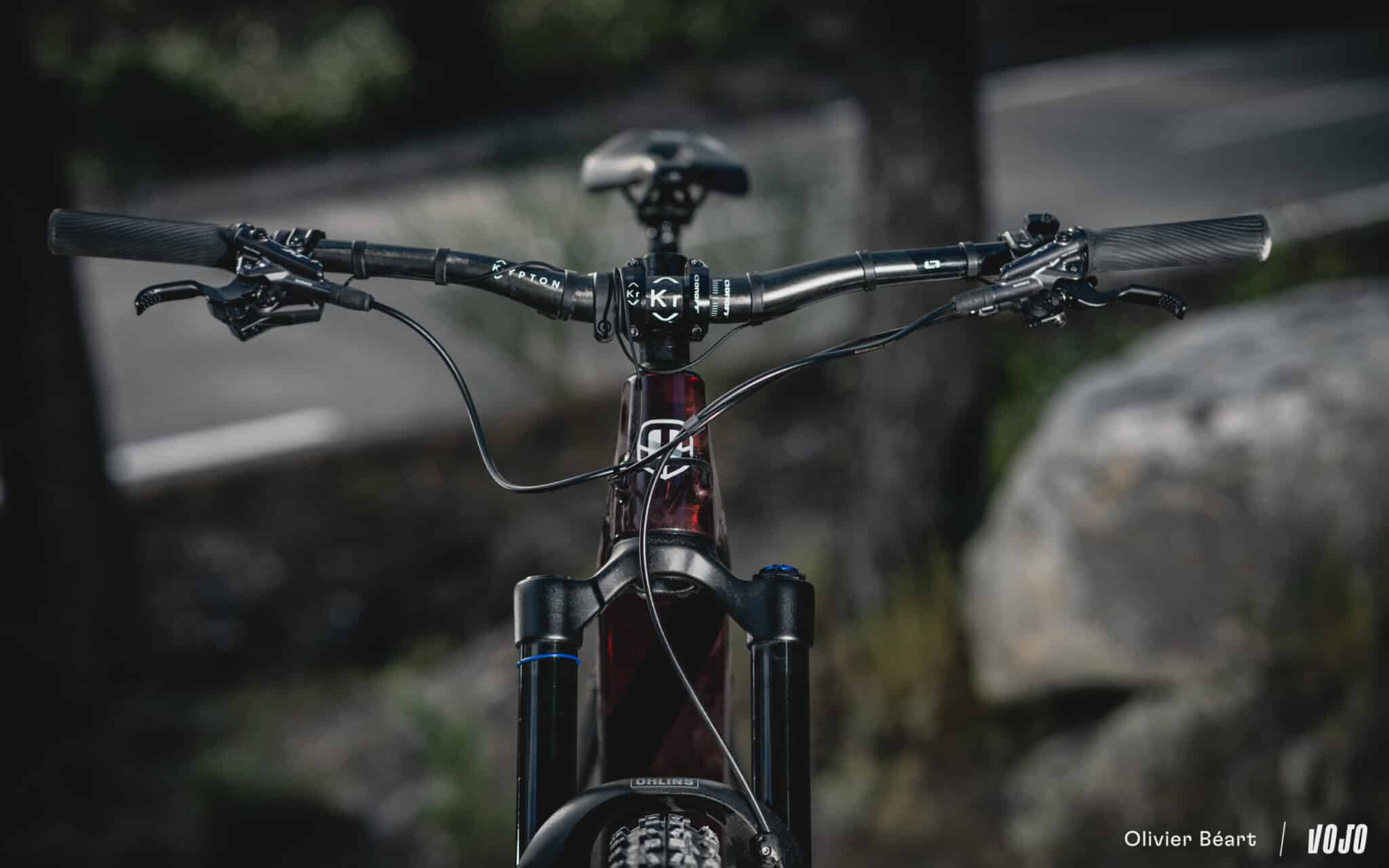 Du côté des accessoires, Mondraker utilise des références de sa marque d’équipements OnOff. Leur finition est de qualité et on a apprécié le fonctionnement de la tige de selle télescopique, qui a un débattement réglable si on souhaite le modifier par rapport à ce qui est proposé d’origine.