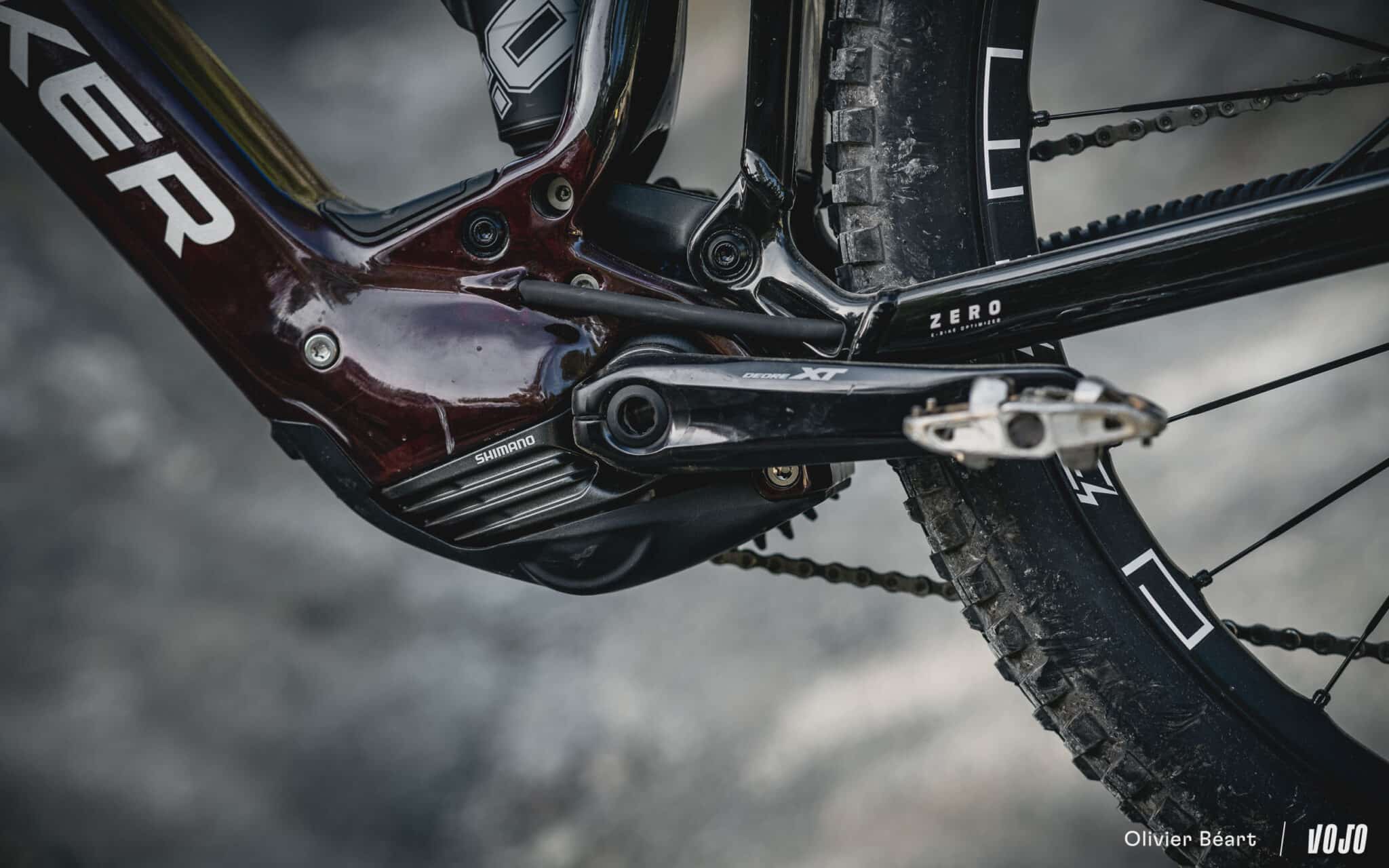 Compact et ne pesant que 2,7kg, le moteur Shimano EP8 a été revu en profondeur. Il faut désormais l’appeler EP801 et nous vous invitons à voir notre vidéo complète pour découvrir les nouveautés en détails (voir ici Test vidéo | Shimano EP 801 : rien ne se voit mais tout se transforme). Sans tout dévoiler du test terrain, sachez juste que cette mise à jour permet vraiment à Shimano de revenir dans la course et de concurrencer la référence Bosch sur bien des points.