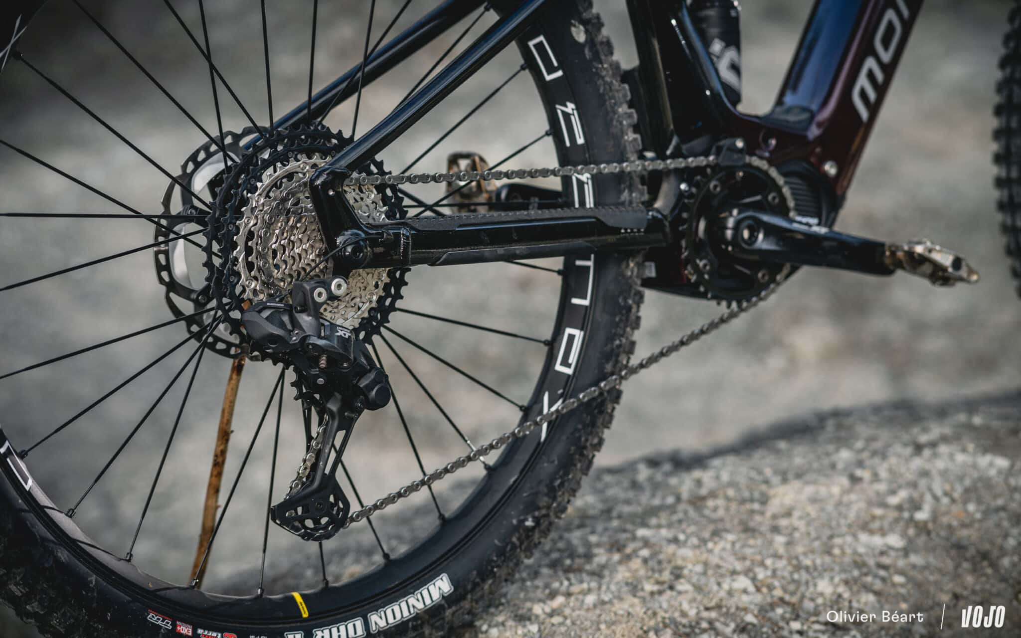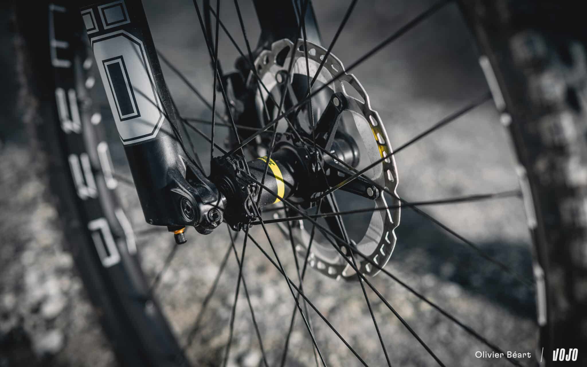 Les roues proviennent de chez Mavic avec le modèle haut de gamme à jantes alu spécifique e-bike, les e-Deemax S. Vu le tarif du vélo, nos goûts de luxe auraient peut-être été plus comblés avec des roues en carbone, mais côté comportement, nous avons beaucoup apprécié les Mavic e-Deemax qui sont à la fois réactives et tolérantes. Puis, même si rien n’est indestructible, nous les avons trouvées plus solides que la plupart des roues alu pour e-bike que nous avons eu l’occasion d’essayer et qui ont tendance à avoir plus rapidement des pocs que les e-Deemax.