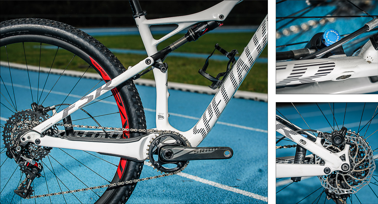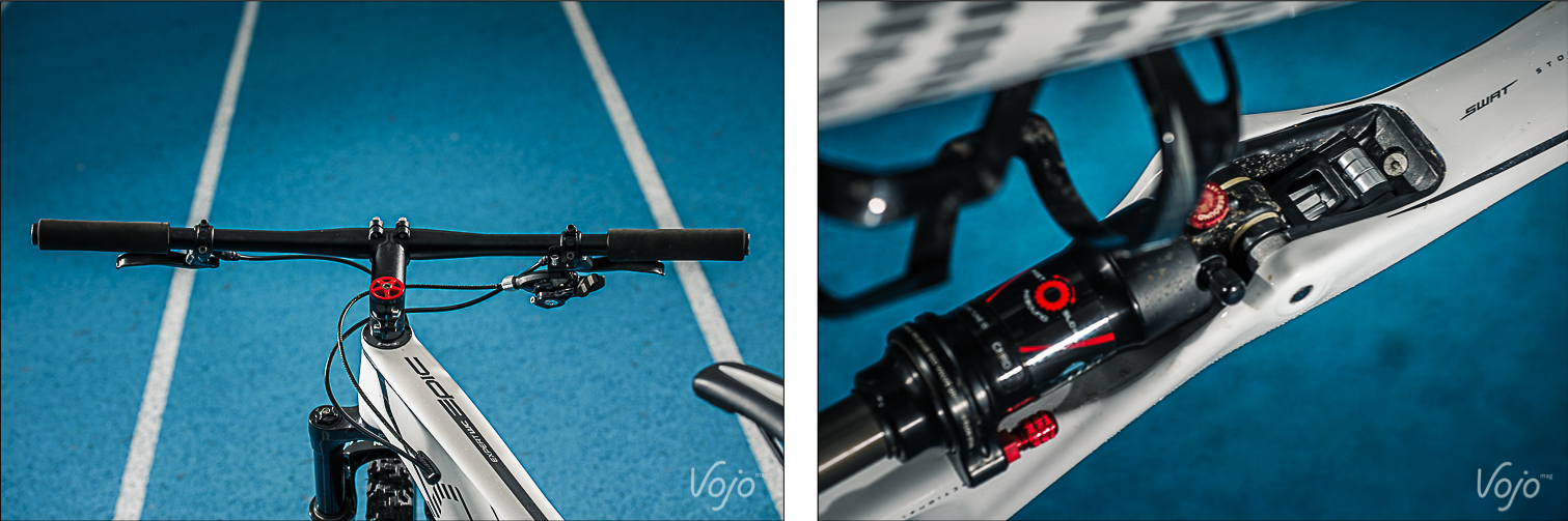 Les bases ne sont pas la seule différence de la version World Cup, puisque le débattement est réduit à 95mm au lieu de 100 et les angles sont plus droits et donc plus agressifs: 74,25° au lieu de 73,75° pour le tube de selle et 71° devant au lieu de 70,5°. Bref, ce n’est pas vraiment un vélo pour aller chercher le pain (ou alors très vite), mais plutôt un athlète affûté façon Dieu du stade.