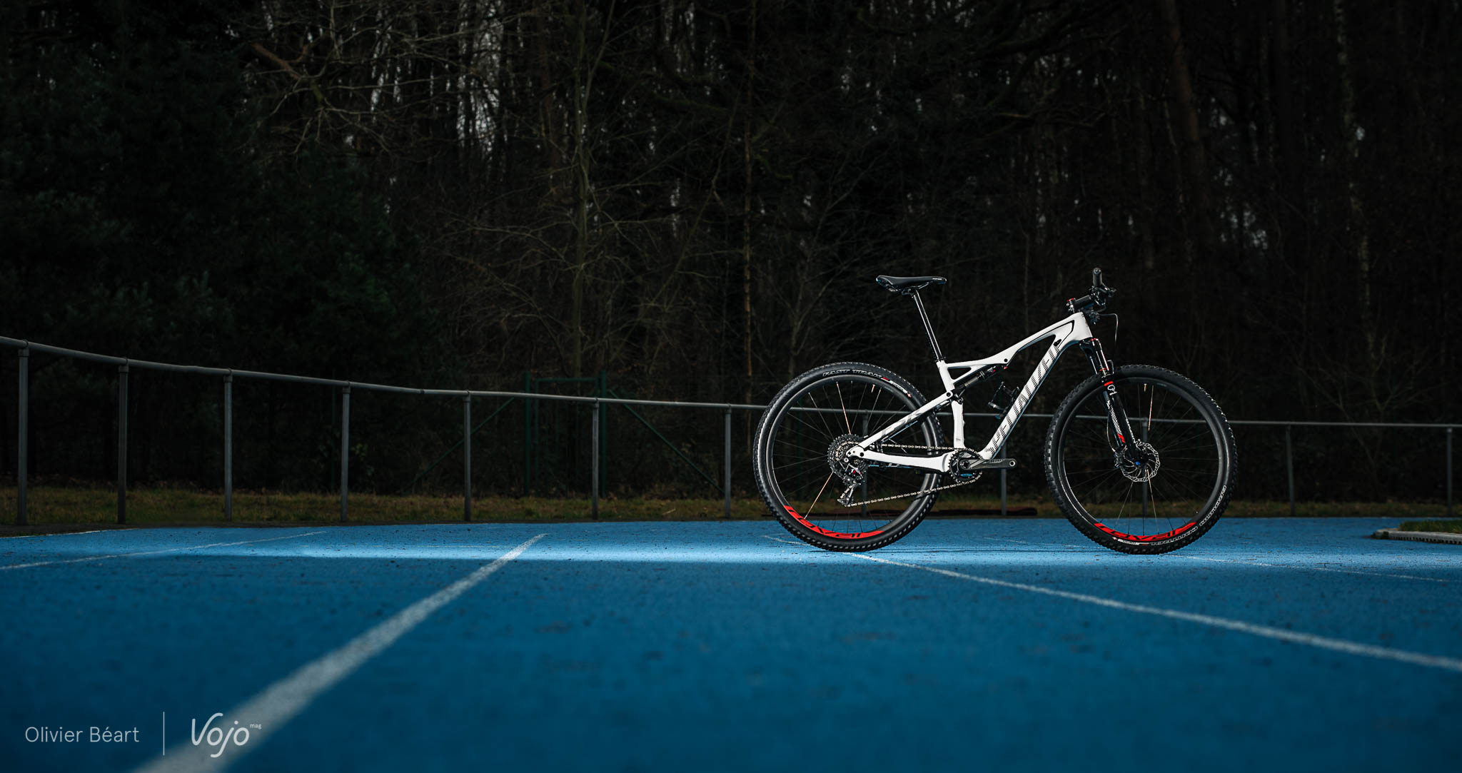 Avant que l’athlète ne quitte la piste synthétique pour aller se frotter à la dure réalité des sentiers tour à tour gelés et détrempés, signalons que le champion a aussi brillamment passé la pesée, avec seulement 10,46kg vérifié sans pédales mais avec le multi-outil SWAT et le porte-bidon. À noter aussi que dès à présent, Specialized garantit ses cadres vie (pour le premier propriétaire).