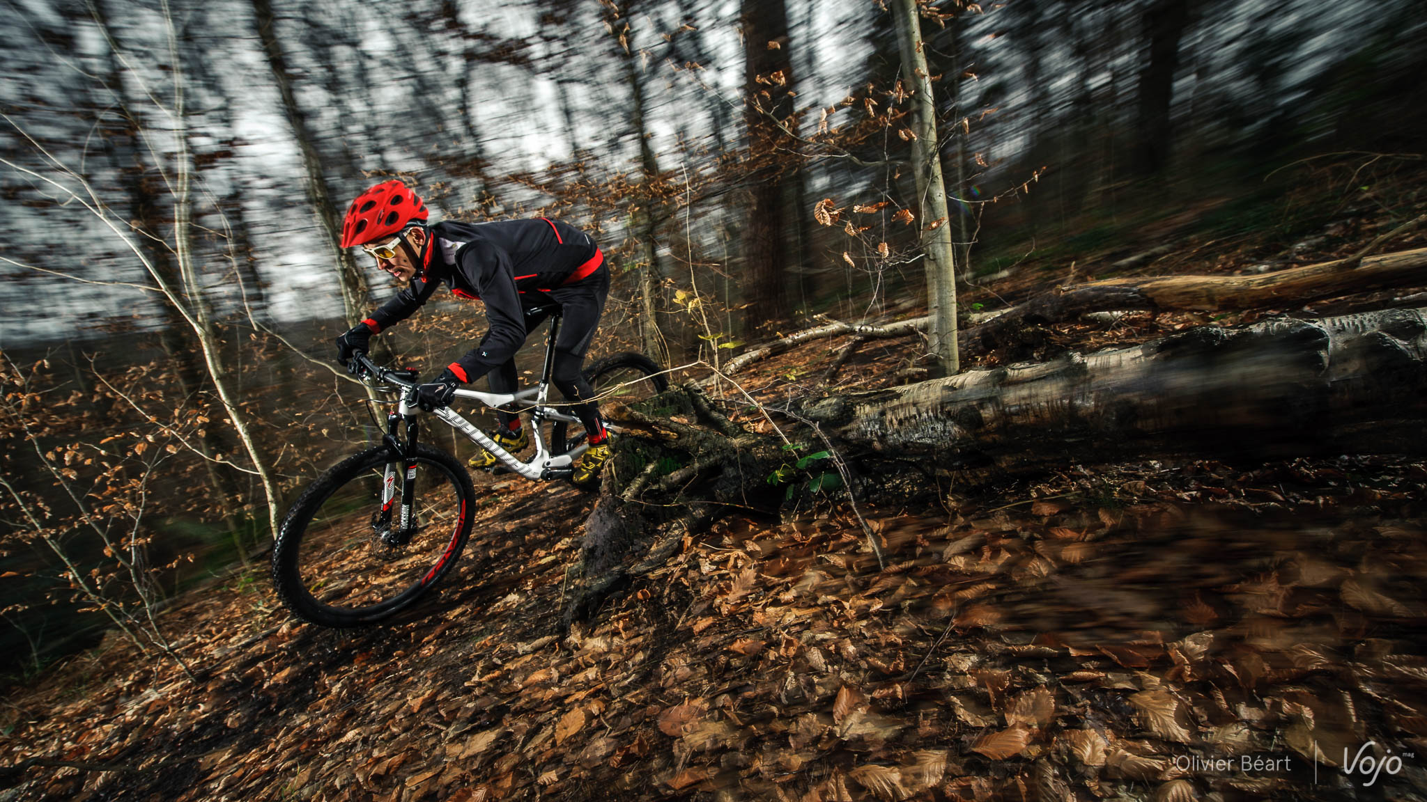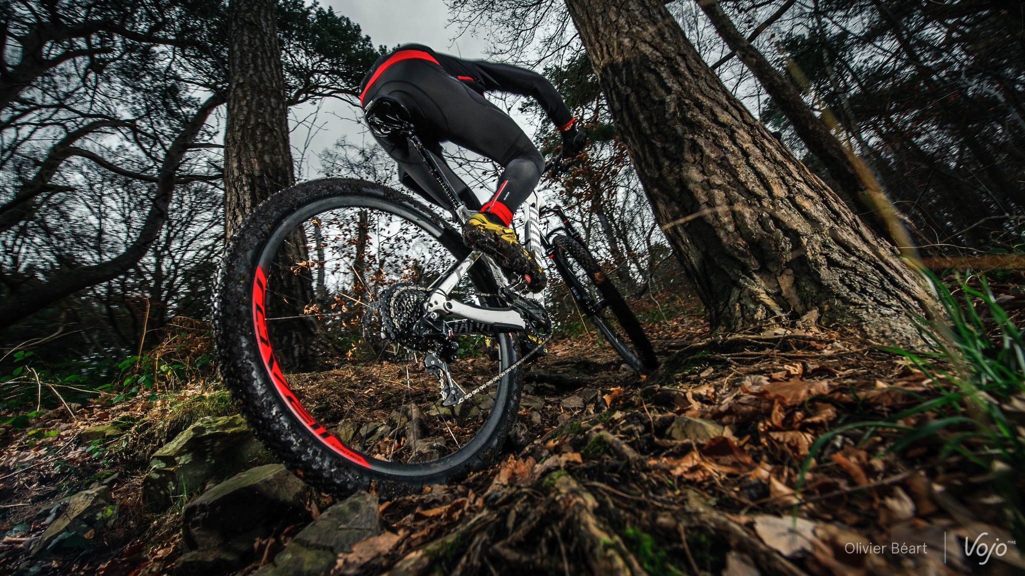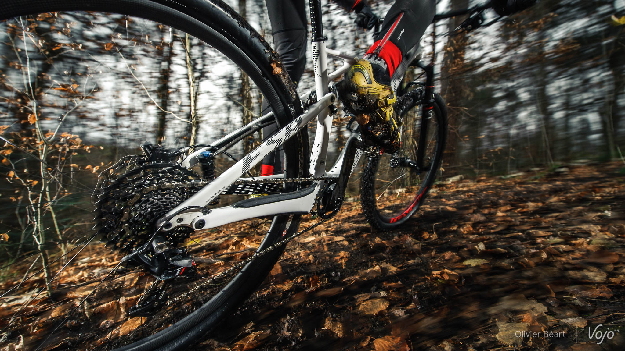 Une fois le dérailleur avant aux oubliettes, de nouveaux horizons s’ouvrent avec des bases en carbone spécifiques qui peuvent être plus courtes : 439mm, soit 9mm de moins qu’un Epic « normal ». Et un score exceptionnel pour un 29 » ! Elles sont aussi body-buildées, au point de faire passer celles de la version classique pour de simples cure-dents. Les haubans en carbone restent le privilège du modèle S-Works, comme le cadre avec les fibres les plus légères « FACT 11M ». Mais pour le reste, l’ossature est identique à celle utilisée par les stars du team. Au niveau de la suspension, même si le débattement est réduit, le principe ne change pas. Rien d’étonnant, le système Brain est indissociable de l’Epic. La cinématique de suspension est l’inusable FSR de Specialized, soit un 4 Bar Linkage avec son fameux pivot Horst-Link placé sur les bases. Une suspension qui a de nombreux atouts avec une courbe qui ne présente presque que des avantages (sensibilité en début de course, bonne gestion de gros impacts avec plus de progressivité en finale,…) mais qui a comme inconvénient d’être plus sujette que d’autres au pompage. Specialized n’a eu de cesse de raffiner cette cinématique pour atténuer ce trait de caractère, mais pour en faire une vraie machine de course sans concession, il fallait trouver une astuce. Et ce fut le Brain, ce génial système de blocage automatique des suspensions, qui est expliqué très clairement dans cette vidéo : Cela ne se voit pas, mais pour 2015, 25g ont été gagnés sur le système Mini-Brain et les seuils de déclenchement et de ré-enclenchement sont encore plus sensibles et donc plus rapides qu’auparavant. L’amortisseur est également doté, depuis l’an dernier, du génial système Auto SAG qui permet de régler l’amortisseur à la pression recommandée en quelques gestes seulement sans risque de se tromper. Il suffit de gonfler à 300psi et d’actionner la petite valve rouge sur le côté qui va automatiquement éliminer l’air superflu pour votre poids (pour en savoir plus en video, rendez-vous ici) On ne peut que se réjouir de la très vaste plage de réglage du Brain au niveau de la fourche. Au début, on se demande à qui peuvent servir ces dizaines de crans, mais sur le terrain, on se rend vite compte que ce n’est pas un gadget et, au fil des kilomètres, cran par cran, on finit par trouver LE compromis idéal pour son poids et sa pratique; celui où la fourche est sensible mais ne pompe pas, même en danseuse. On en vient presque à regretter que l’arrière ne compte « que » 5 clics et ne permette donc pas autant de finesse même si, nous le verrons, on parvient aussi à trouver un réglage plus que convaincant. C’est le cas notamment avec les Fast Track 2.0, très légers (560g en version Control renforcée) et qui ne font pas mentir leur nom avec leur rendement de haut vol. Mais il n’y a pas de miracles: si, à l’arrière, on peut le garder toute l’année dans une optique performance, à l’avant cela devient vite du rodéo quand le terrain est gras et humide. Etre au guidon d’un vélo appelé « World Cup » ne transforme hélas pas en top pilote même quand on a de l’expérience. Dans une optique de polyvalence, nous avons donc monté un Ground Control à l’avant et nous avons tout de suite mieux pu profiter de l’Epic durant ce début d’hiver plutôt mouillé. Il suffit de repositionner le tout à la main, mais cela nous a valu deux séances de réglages inutiles du dérailleur avant de comprendre qu’il n’était pas en cause. A revoir. Le boîtier PF30 Sram a aussi montré quelques signes de faiblesse et semble avoir bu la tasse. Un remplacement rapide par un modèle plus résistant sera donc à prévoir rapidement. Chris King, Reset Racing, Hope,… les alternatives ne manquent pas et nous ne ferons pas le procès du PressFit 30 qui a bien des avantages. Vous croyez connaître l’Epic ? Il a bien changé ! La toute première qualité qui impressionne sur l’Epic, c’est son rendement. Cela fait un peu tarte à la crème de le dire, mais chaque fois c’est cette sensation qui prédomine. Et sur le World Cup, elle semble encore plus marquée. Vous me direz que ce n’est pas très recommandé mais si on accélérait les yeux bandés avec un hardtail et cet Epic, pas sûr que la différence serait évidente. Evidemment, il y a le Brain qui bloque les suspensions. Mais sur cette version, les bases courtes et gonflées rajoutent encore un petit quelque chose que nous ne nous rappelons pas avoir ressenti quand, l’an dernier, nous avons roulé plusieurs semaines avec la version Comp Carbon dotée d’un arrière en aluminium. La toute dernière évolution de la suspension est très subtile mais avant même que Specialized ne nous explique qu’il y avait eu évolution, nous avions bien senti que le Brain de ce millésime était encore un petit peu plus finement ajusté que par le passé. La fameuse sensation « pneu crevé » quand le système se débloque a (presque) complètement disparu et la transition ouvert/fermé se fait aujourd’hui de façon (presque) insensible. Le grip en côte s’en trouve aussi amélioré, dans la mesure où la suspension ne se bloque plus complètement, mais est plutôt dans un mode où la compression lente est très freinée. On l’avait aperçu avec la position, mais cela se confirme quand on se lance sur de plus longues sorties à son guidon, l’Epic World Cup est un dur au coeur tendre. C’est une de ses grandes forces : quand vous avez une baisse de régime, il n’est pas comme certains semi-rigides qui continuent de vous enfoncer à chaque choc. Lui, il les adoucit, les arrondit, et vous facilite la tâche. Comme un vrai full, XC ou pas. C’est d’autant plus vrai que l’Epic est et reste un des vélos de XC les plus amusants à piloter de toute la production actuelle. Emmenez-le sur un circuit de XC contemporain, ou 