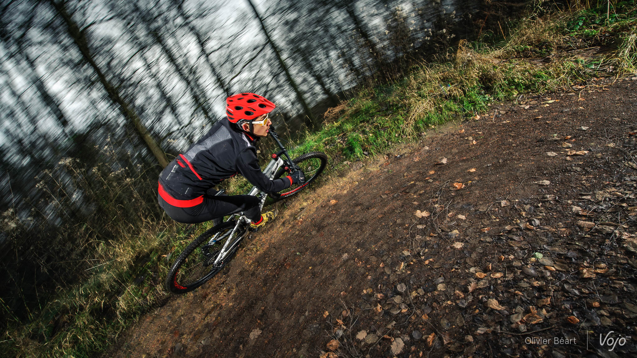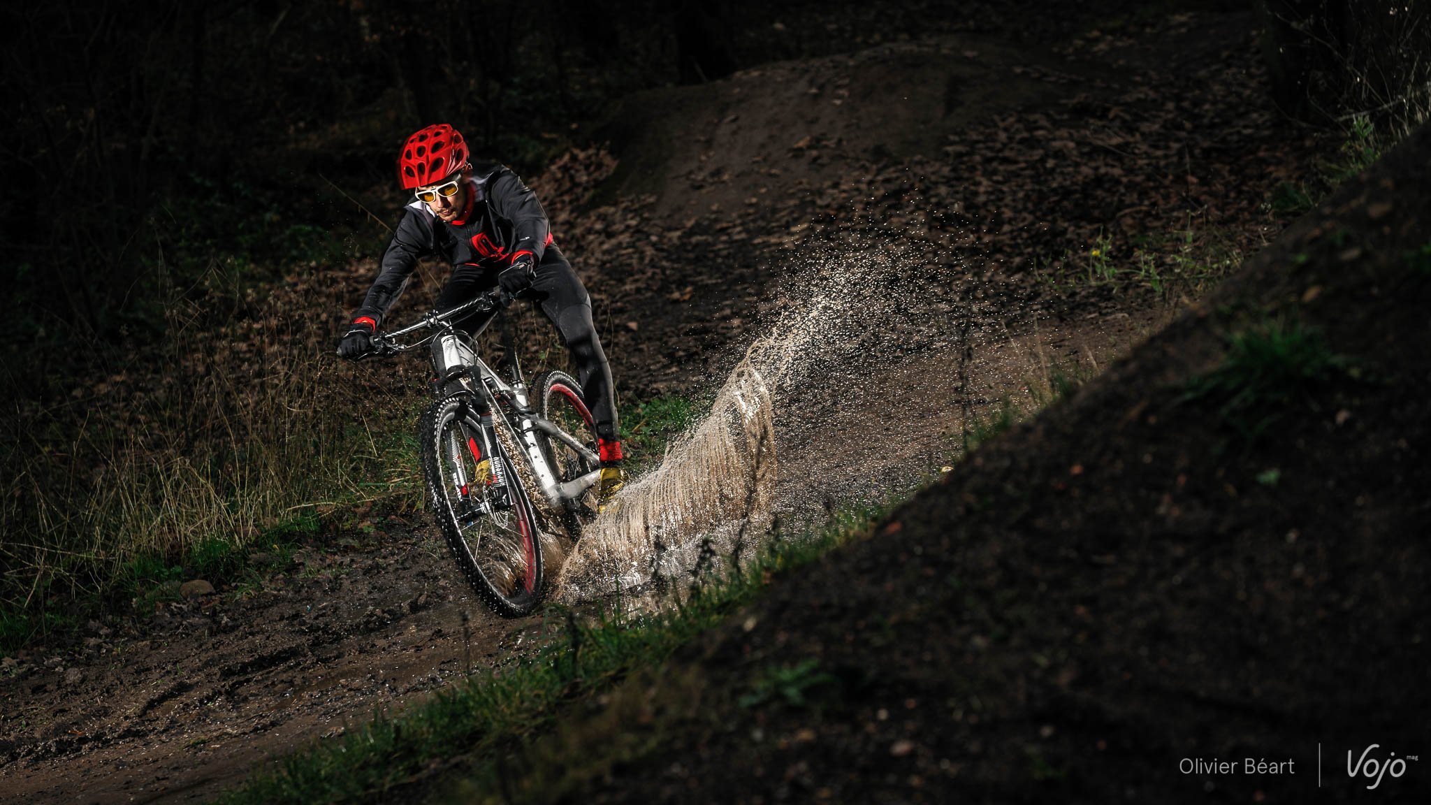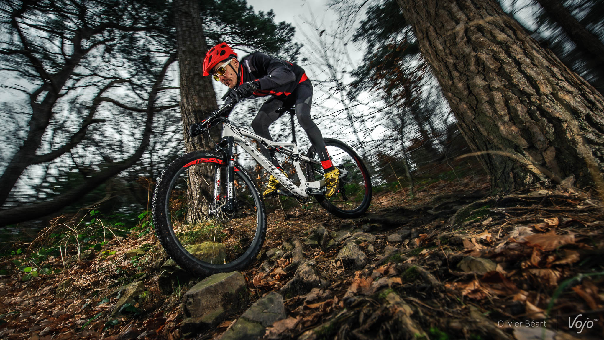 Une fois le dérailleur avant aux oubliettes, de nouveaux horizons s’ouvrent avec des bases en carbone spécifiques qui peuvent être plus courtes : 439mm, soit 9mm de moins qu’un Epic « normal ». Et un score exceptionnel pour un 29 » ! Elles sont aussi body-buildées, au point de faire passer celles de la version classique pour de simples cure-dents. Les haubans en carbone restent le privilège du modèle S-Works, comme le cadre avec les fibres les plus légères « FACT 11M ». Mais pour le reste, l’ossature est identique à celle utilisée par les stars du team. Au niveau de la suspension, même si le débattement est réduit, le principe ne change pas. Rien d’étonnant, le système Brain est indissociable de l’Epic. La cinématique de suspension est l’inusable FSR de Specialized, soit un 4 Bar Linkage avec son fameux pivot Horst-Link placé sur les bases. Une suspension qui a de nombreux atouts avec une courbe qui ne présente presque que des avantages (sensibilité en début de course, bonne gestion de gros impacts avec plus de progressivité en finale,…) mais qui a comme inconvénient d’être plus sujette que d’autres au pompage. Specialized n’a eu de cesse de raffiner cette cinématique pour atténuer ce trait de caractère, mais pour en faire une vraie machine de course sans concession, il fallait trouver une astuce. Et ce fut le Brain, ce génial système de blocage automatique des suspensions, qui est expliqué très clairement dans cette vidéo : Cela ne se voit pas, mais pour 2015, 25g ont été gagnés sur le système Mini-Brain et les seuils de déclenchement et de ré-enclenchement sont encore plus sensibles et donc plus rapides qu’auparavant. L’amortisseur est également doté, depuis l’an dernier, du génial système Auto SAG qui permet de régler l’amortisseur à la pression recommandée en quelques gestes seulement sans risque de se tromper. Il suffit de gonfler à 300psi et d’actionner la petite valve rouge sur le côté qui va automatiquement éliminer l’air superflu pour votre poids (pour en savoir plus en video, rendez-vous ici) On ne peut que se réjouir de la très vaste plage de réglage du Brain au niveau de la fourche. Au début, on se demande à qui peuvent servir ces dizaines de crans, mais sur le terrain, on se rend vite compte que ce n’est pas un gadget et, au fil des kilomètres, cran par cran, on finit par trouver LE compromis idéal pour son poids et sa pratique; celui où la fourche est sensible mais ne pompe pas, même en danseuse. On en vient presque à regretter que l’arrière ne compte « que » 5 clics et ne permette donc pas autant de finesse même si, nous le verrons, on parvient aussi à trouver un réglage plus que convaincant. C’est le cas notamment avec les Fast Track 2.0, très légers (560g en version Control renforcée) et qui ne font pas mentir leur nom avec leur rendement de haut vol. Mais il n’y a pas de miracles: si, à l’arrière, on peut le garder toute l’année dans une optique performance, à l’avant cela devient vite du rodéo quand le terrain est gras et humide. Etre au guidon d’un vélo appelé « World Cup » ne transforme hélas pas en top pilote même quand on a de l’expérience. Dans une optique de polyvalence, nous avons donc monté un Ground Control à l’avant et nous avons tout de suite mieux pu profiter de l’Epic durant ce début d’hiver plutôt mouillé. Il suffit de repositionner le tout à la main, mais cela nous a valu deux séances de réglages inutiles du dérailleur avant de comprendre qu’il n’était pas en cause. A revoir. Le boîtier PF30 Sram a aussi montré quelques signes de faiblesse et semble avoir bu la tasse. Un remplacement rapide par un modèle plus résistant sera donc à prévoir rapidement. Chris King, Reset Racing, Hope,… les alternatives ne manquent pas et nous ne ferons pas le procès du PressFit 30 qui a bien des avantages. Vous croyez connaître l’Epic ? Il a bien changé ! La toute première qualité qui impressionne sur l’Epic, c’est son rendement. Cela fait un peu tarte à la crème de le dire, mais chaque fois c’est cette sensation qui prédomine. Et sur le World Cup, elle semble encore plus marquée. Vous me direz que ce n’est pas très recommandé mais si on accélérait les yeux bandés avec un hardtail et cet Epic, pas sûr que la différence serait évidente. Evidemment, il y a le Brain qui bloque les suspensions. Mais sur cette version, les bases courtes et gonflées rajoutent encore un petit quelque chose que nous ne nous rappelons pas avoir ressenti quand, l’an dernier, nous avons roulé plusieurs semaines avec la version Comp Carbon dotée d’un arrière en aluminium. La toute dernière évolution de la suspension est très subtile mais avant même que Specialized ne nous explique qu’il y avait eu évolution, nous avions bien senti que le Brain de ce millésime était encore un petit peu plus finement ajusté que par le passé. La fameuse sensation « pneu crevé » quand le système se débloque a (presque) complètement disparu et la transition ouvert/fermé se fait aujourd’hui de façon (presque) insensible. Le grip en côte s’en trouve aussi amélioré, dans la mesure où la suspension ne se bloque plus complètement, mais est plutôt dans un mode où la compression lente est très freinée. On l’avait aperçu avec la position, mais cela se confirme quand on se lance sur de plus longues sorties à son guidon, l’Epic World Cup est un dur au coeur tendre. C’est une de ses grandes forces : quand vous avez une baisse de régime, il n’est pas comme certains semi-rigides qui continuent de vous enfoncer à chaque choc. Lui, il les adoucit, les arrondit, et vous facilite la tâche. Comme un vrai full, XC ou pas. C’est d’autant plus vrai que l’Epic est et reste un des vélos de XC les plus amusants à piloter de toute la production actuelle. Emmenez-le sur un circuit de XC contemporain, ou 