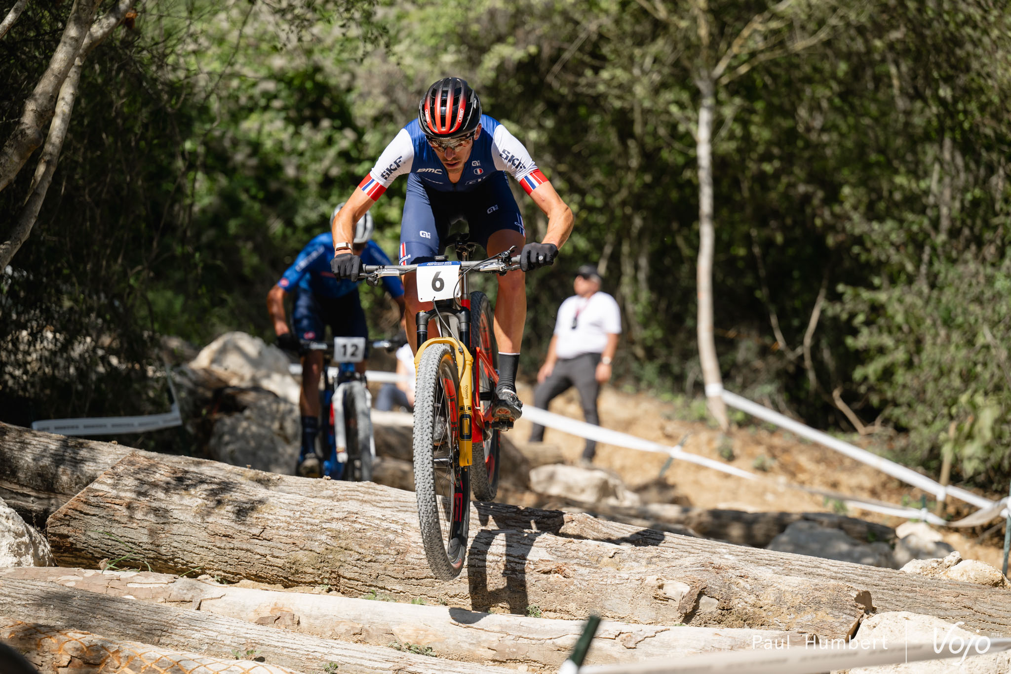 Celui qui n’est jamais là pour être deuxième, c’est Nino Schurter. Le Suisse n’allait pas laisser les Français dérouler à domicile, et il entre dans la danse dès le milieu de course.