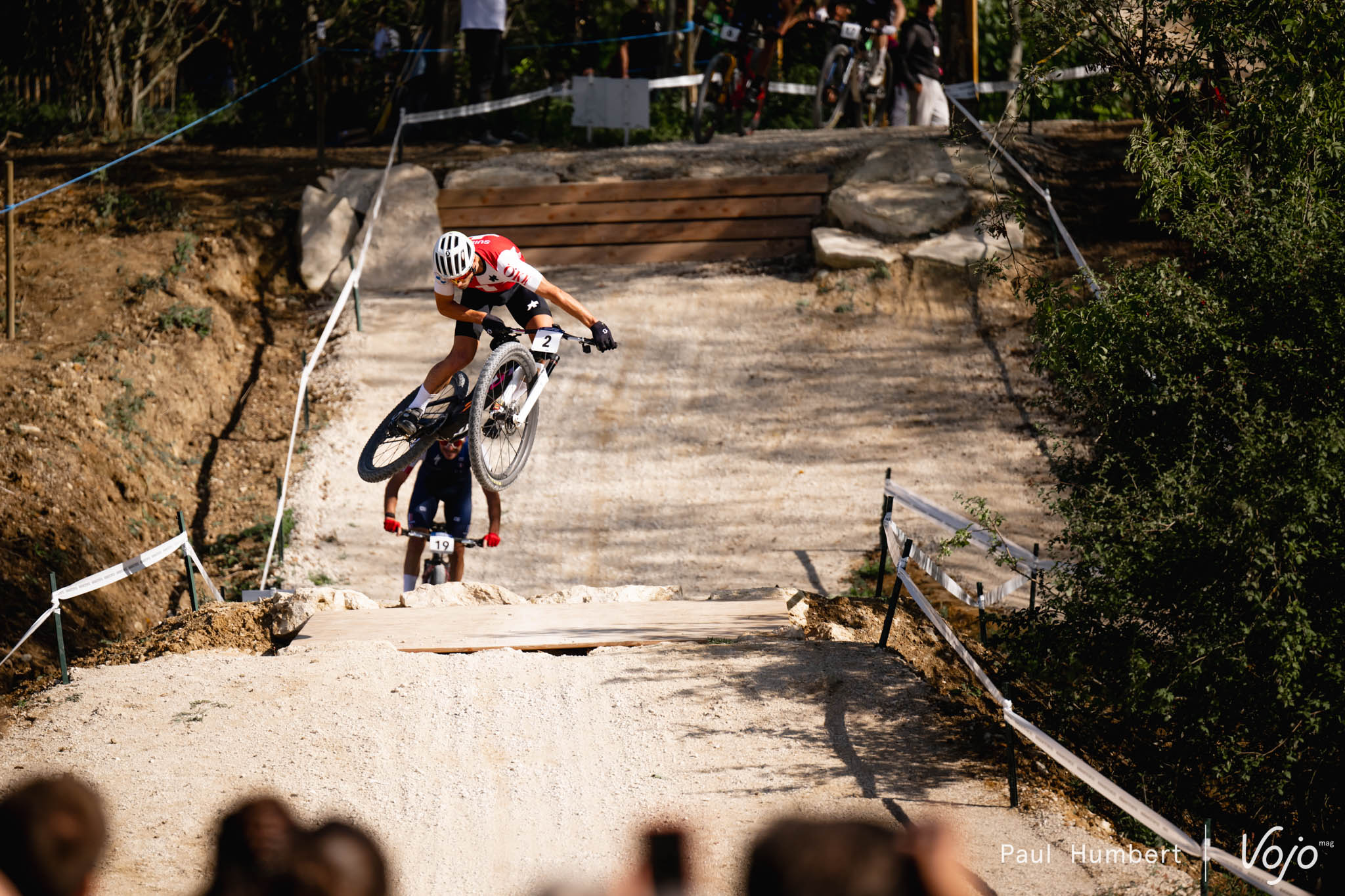 Que faut-il penser du parcours justement ? Situé dans les Yvelines, sur la colline d’Elancourt, il s’inscrit dans une lignée de circuits olympiques très « artificiels » et télévisuels. Le sol glaiseux du point culminant d’île de France a été massivement recouvert de gravette, et ponctué d’obstacles artificiels. L’ensemble est moins clivant dans le paddock que sur les réseaux sociaux, et la majorités des athlètes semblent s’adapter convenablement à ce tracé. Ce dernier sera d’ailleurs susceptible d’évoluer d’ici à l’évènement final en 2024 et il a ensuite vocation à être rendu « accessible au public » d’ici à 2025. Notre article dédié : dev.vojomag.com/test-event-paris-2024-reconnaissance-du-circuit-des-jeux-olympiques/