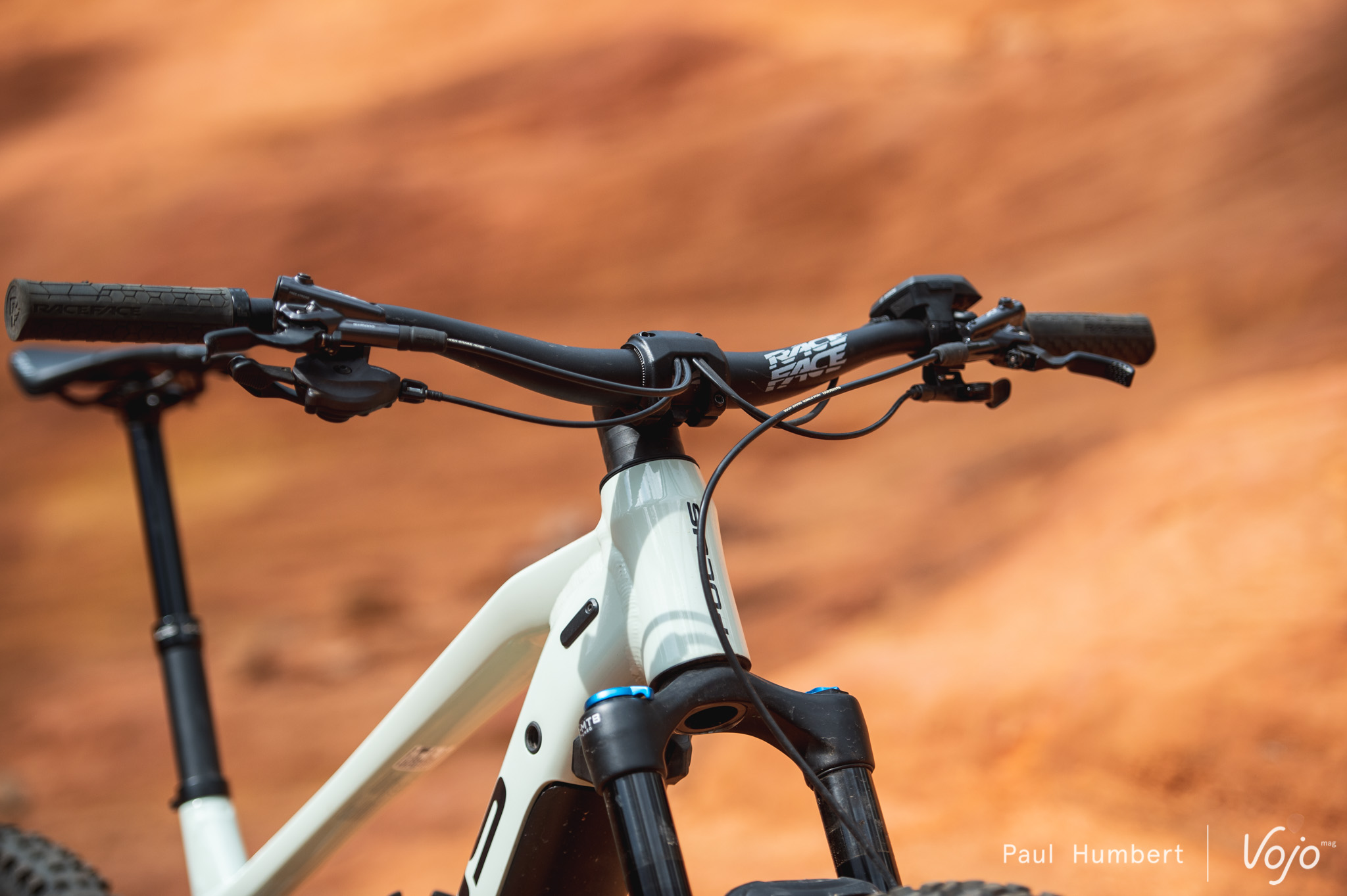 Comme évoqué dans la partie dédiée, les suspensions sont des Fox avec un amortisseur DPS Performance et une fourche 36 Rythm. Des produits moyen de gamme, fiables et éprouvés mais desquels il ne faudra pas attendre des performances révolutionnaires en descente. Ça tombe bien, ce n’est pas l’objectif du vélo.