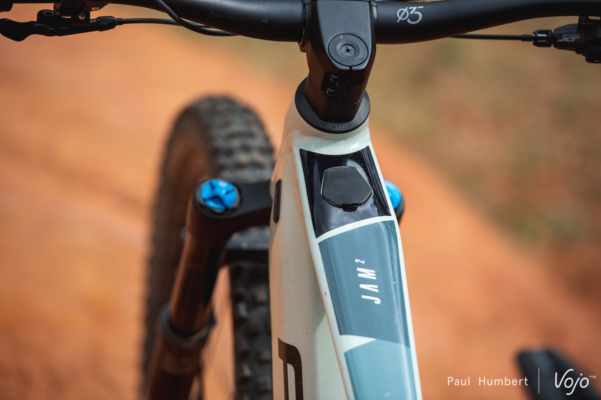 Equilibrée, c’est le mot qui nous vient en tête pour décrire la géométrie du Jam². Ce n’est pas la plus progressive des e-bikes en 150 mm afin de préserver une certaine facilité de prise en main mais les côtes sont tout de même suffisamment modernes et devraient garantir un niveau de performance suffisant pour qui souhaite engager un peu en descente.