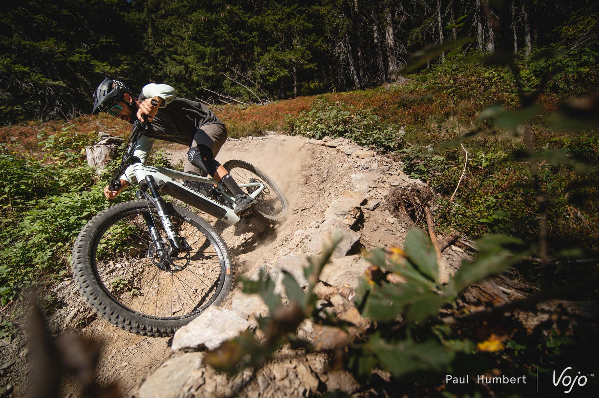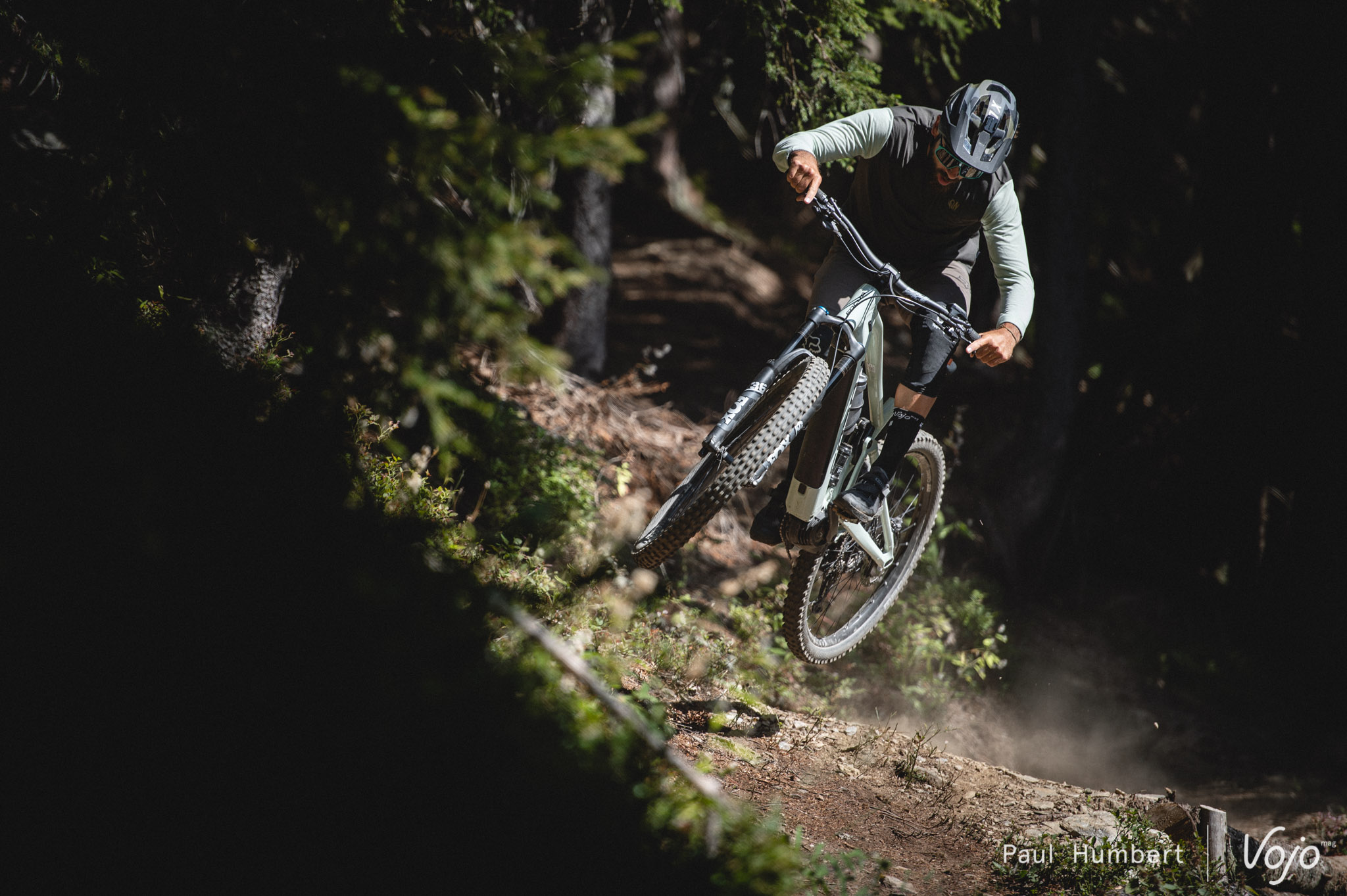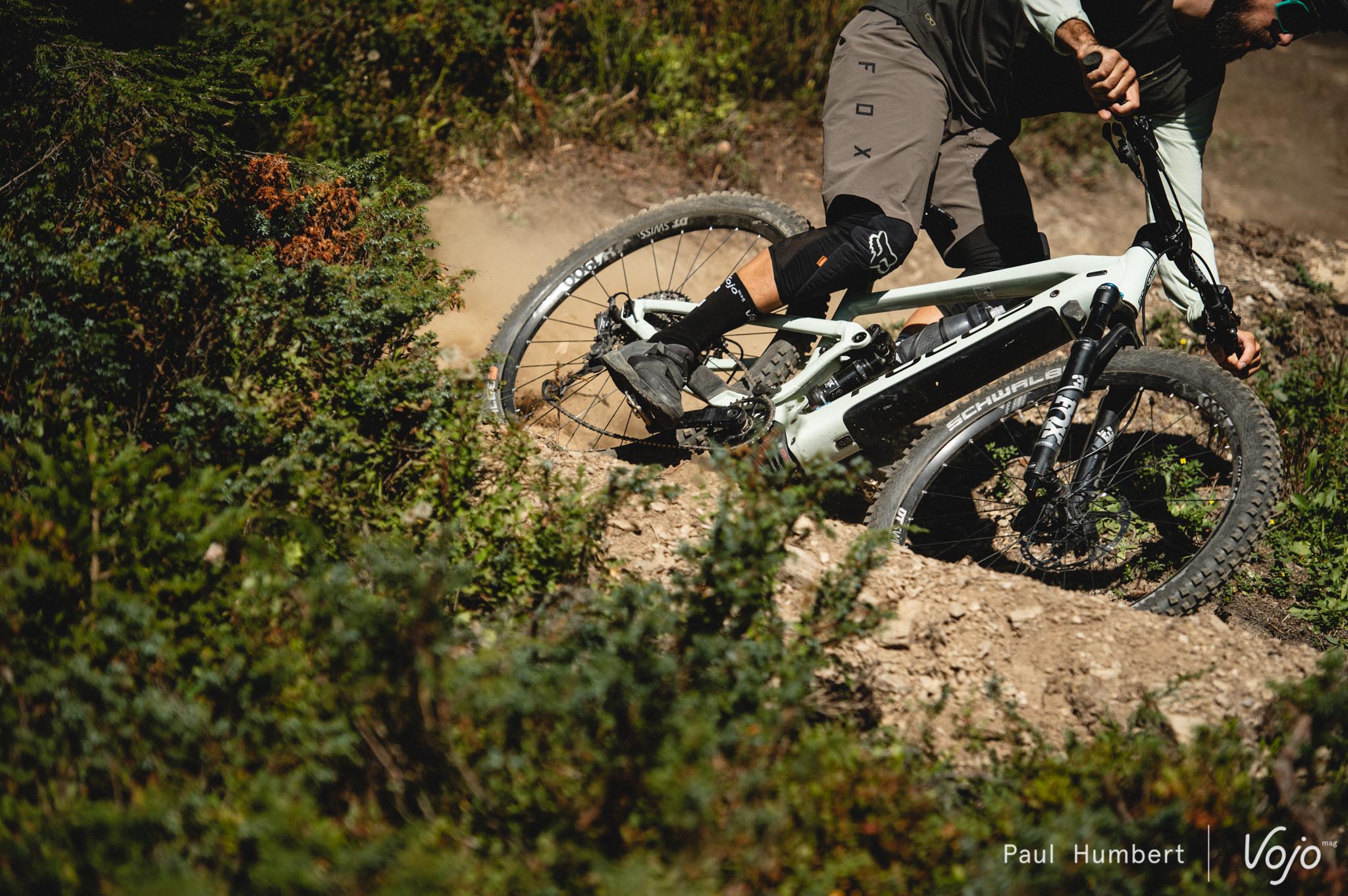 En revanche, si on gonfle un peu plus on perd en confort ce qu’on gagne en support (le défaut connu de la cartouche Grip qui équipe ces fourches Fox Rythm, elle a du mal à concilier soutien et sensibilité) et le vélo devient plus intéressant à piloter. Il répond bien, ne se plante pas dans les virages et autorise même quelques excentricités. Contrairement à d’autres, ce n’est pas un e-bike qui force son pilote à rester roues au sol.