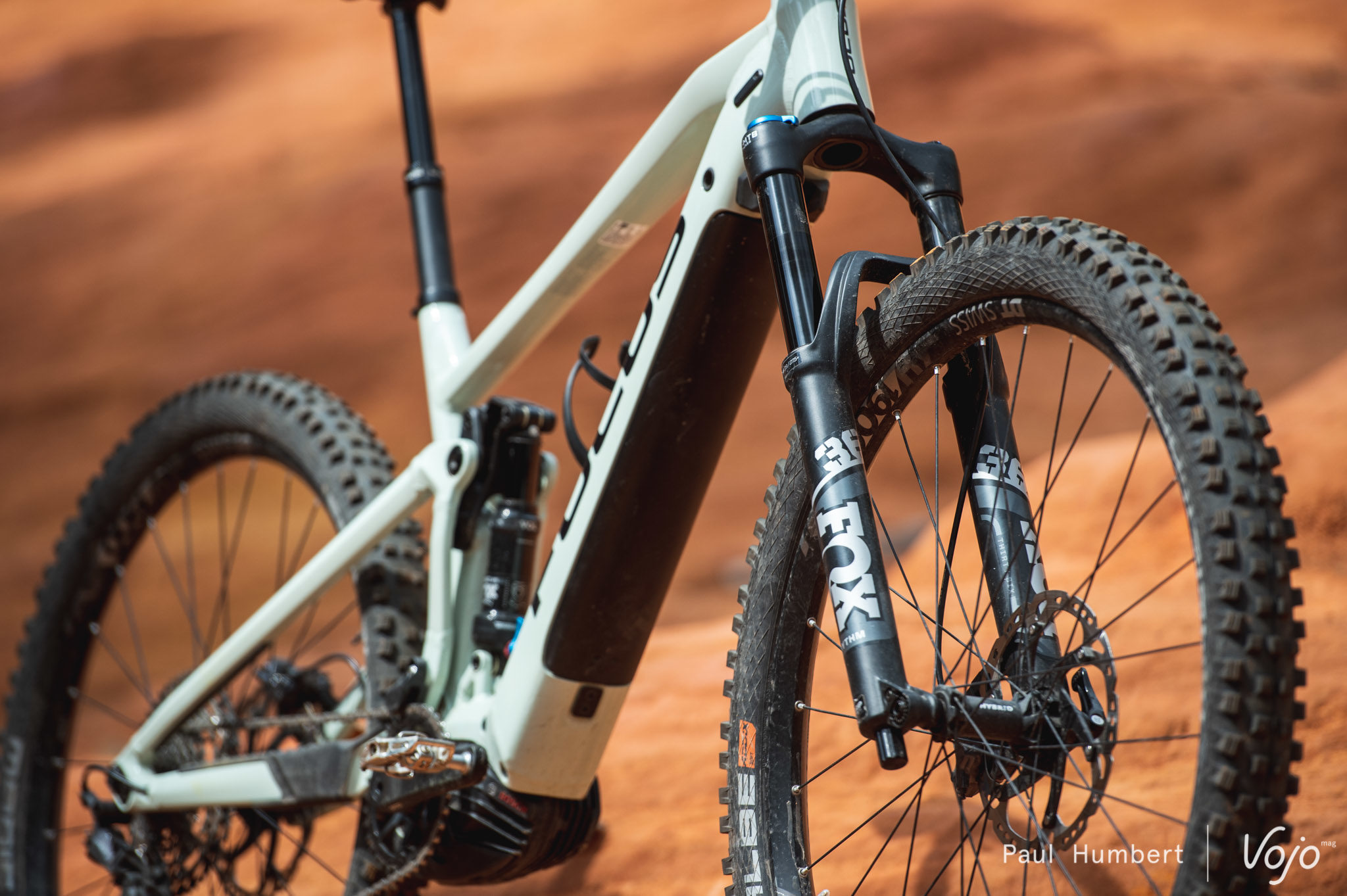 Comme évoqué dans la partie dédiée, les suspensions sont des Fox avec un amortisseur DPS Performance et une fourche 36 Rythm. Des produits moyen de gamme, fiables et éprouvés mais desquels il ne faudra pas attendre des performances révolutionnaires en descente. Ça tombe bien, ce n’est pas l’objectif du vélo.