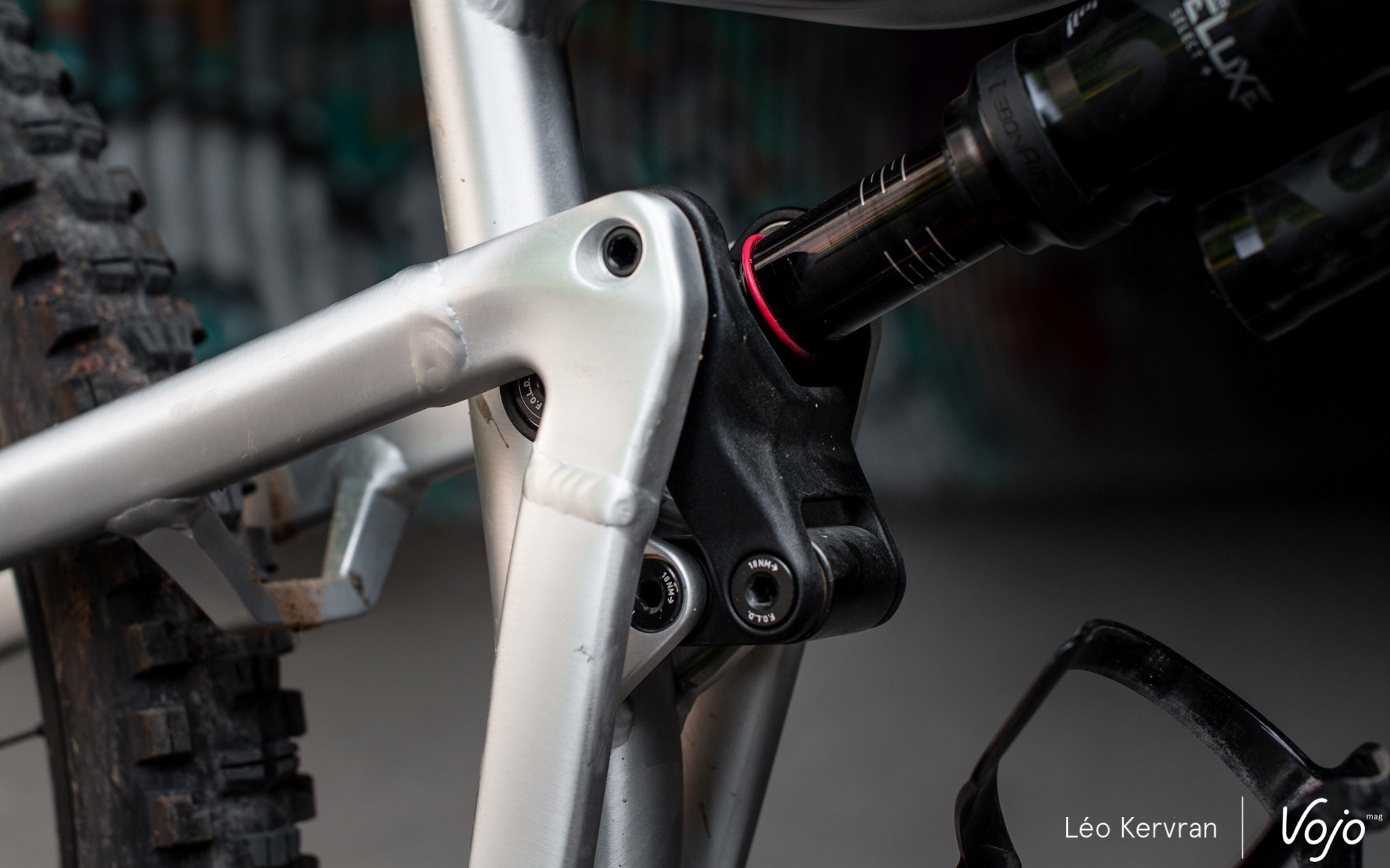 D’après la marque, ce changement répond à deux problématiques : tout d’abord, il s’agissait de modifier la cinématique pour obtenir quelque chose de plus en rapport avec le comportement des derniers modèles d’amortisseurs, sur lesquels la chambre d’air négative est plus grande que par le passé. Auparavant dégressive jusqu’au sag et progressive ensuite, la cinématique est désormais progressive tout au long du débattement. Autre avantage, cela permet de libérer de la place dans le triangle avant (notamment pour la sacoche).