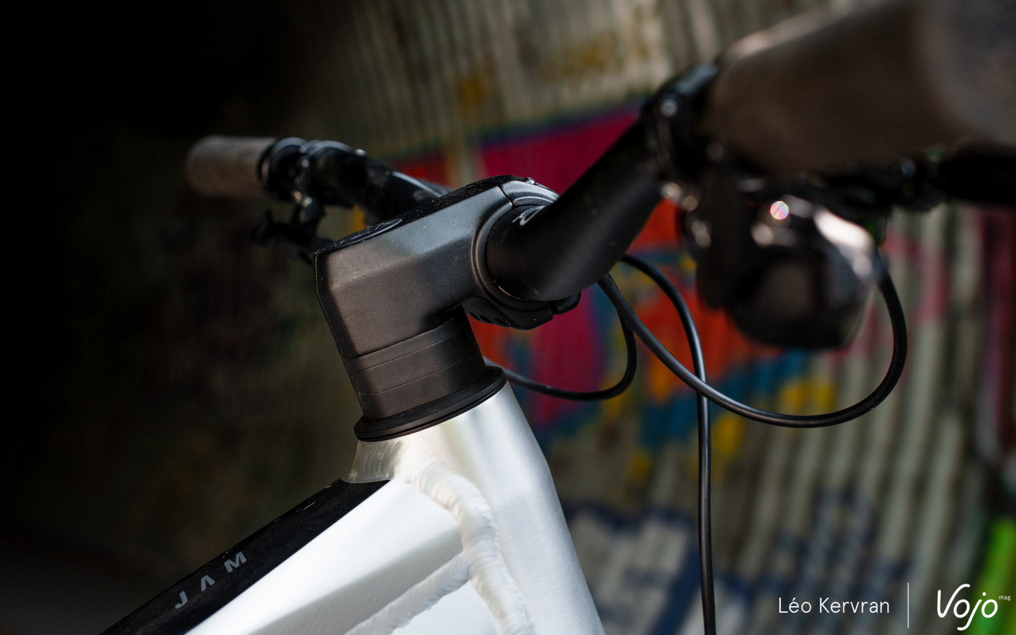 Par ailleurs, elle n’est disponible qu’en 50 mm de long. Si on veut changer de longueur, il faut prendre une potence classique et investir dans un nouveau cache supérieur du jeu de direction (disponible chez Acros), avec des passages pour faire rentrer les gaines dans le cadre via le jeu et non via la potence. En revanche, si la potence vous convient, il n’y a aucun problème à signaler et nous n’avons pas eu l’impression que cela affectait la qualité des changements de vitesse.