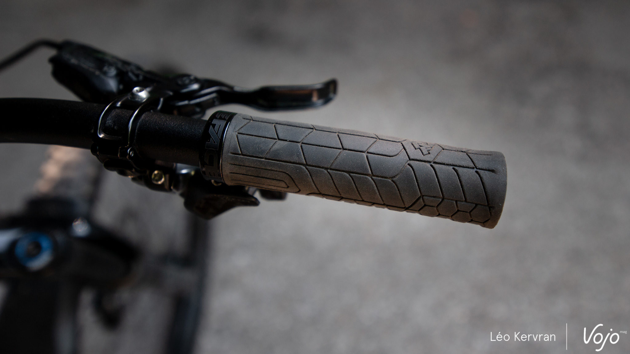 Enfin, le poste de pilotage vient de chez Race Face avec un cintre Chester 35 et des poignées Getta, la tige de selle est une KS et la selle est signée Prologo.