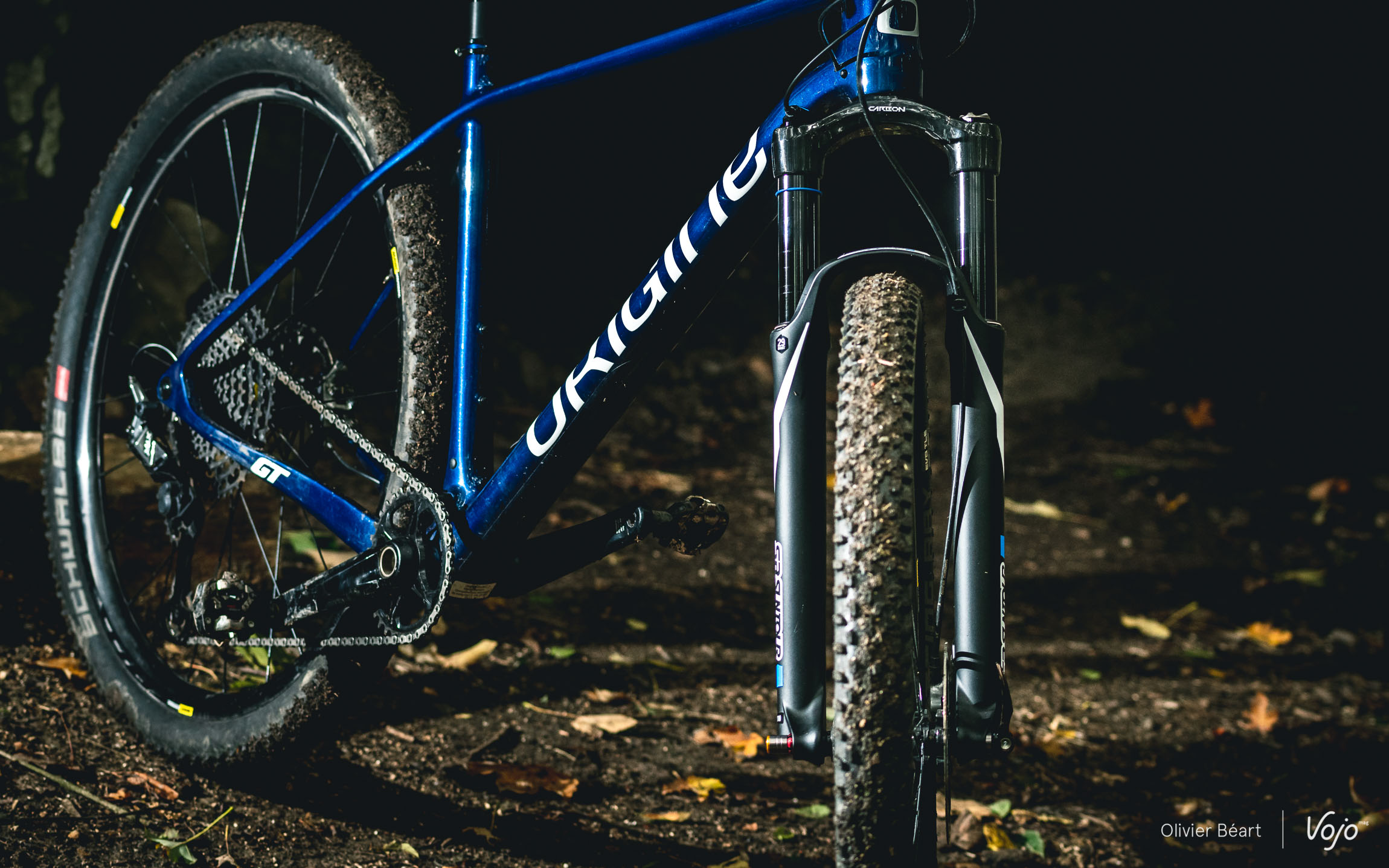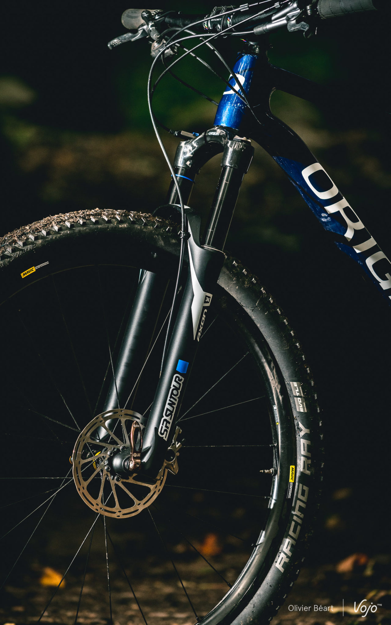 Nous avons monté cette fourche SR Suntour 34 Werx sur trois vélos différents, et elle a été testée par 4 bikers aux profils variés. Tout d’abord, elle a atterri sur un Scott Spark RC dont le propriétaire, un grand gaillard de quasi 1m90 et 90kg, trouvait la F32 Sc montée d’origine sur son vélo bien trop légère. Elle est ensuite passée sur notre Orbea Oiz TR 120 qui nous sert de plateforme de test XC « engagé » pour le moment, pour enfin terminer sur l’Origine Théorème GT, un semi-rigide carbone léger mais monté dans un esprit « fun » et qui s’accommode très bien d’une fourche en 120mm. Sur l’Oiz et l’Origine, la fourche a été roulée par nos testeurs habituels, au gabarit compris entre 178 et 181cm pour des poids autour de 75/80kg.