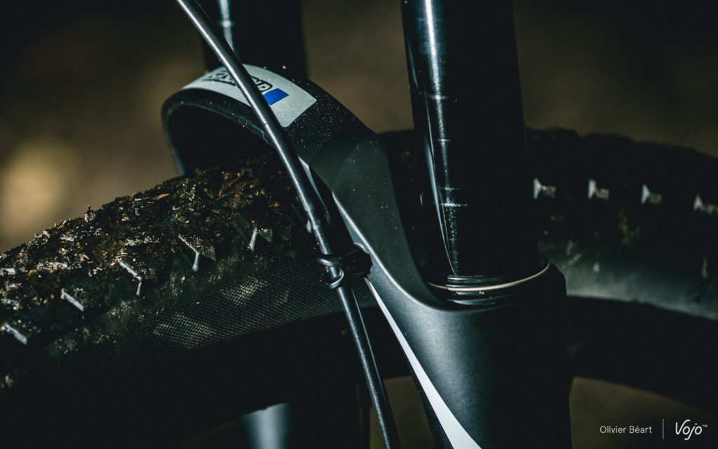 Côté tarif et versions, la SR Suntour 34 Werx est affichée à 1199€, soit un peu moins que la Fox F34SC, mais on reste sur un produit clairement positionné dans le haut de gamme. Si le poids est moins une préoccupation pour vous, il existe aussi une Suntour Axon 34 Boost avec la même hydraulique mais un ensemble té-pivot en alu pour un poids de 1900g et un tarif de 699€. Petit détail sympa, un garde-boue sur mesure se trouve dans la boîte et on apprécie aussi le système de maintien de la Durit de frein, simple et efficace.