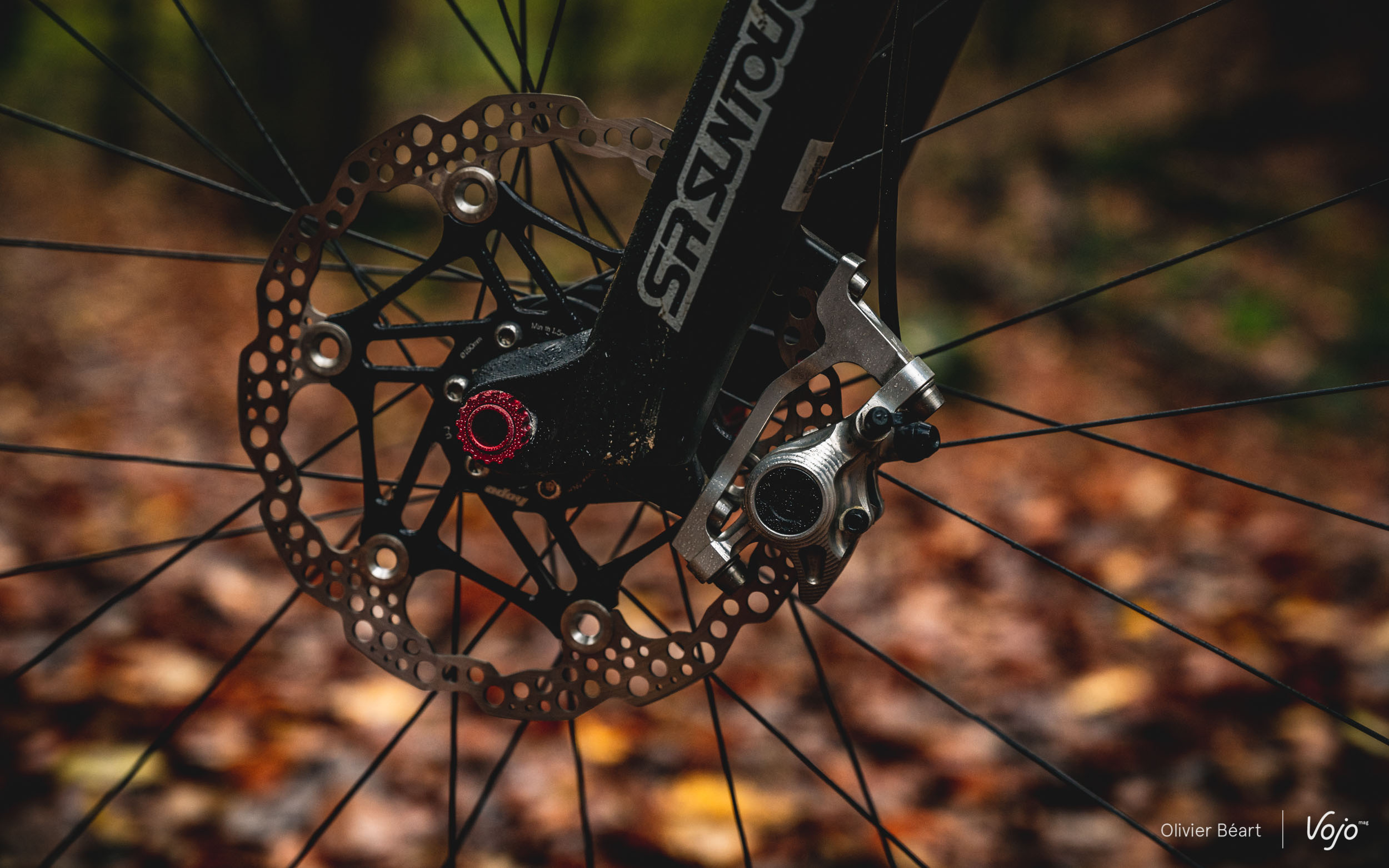 Nous avons reçu les freins au début de l’été, juste avant un de nos grands objectifs de l’année, à savoir la MB Ultime, cette course folle de 240km et 11 000m de dénivelé au pied du Mont Blanc. Avant de s’attaquer à ce défi un peu fou, nous n’avions que quelques sorties d’entraînement et une petite course en Flandre à nous mettre sous la dent. Comme chaque gramme compte, nous avons même opté pour le montage d’un disque avant en 160mm (-72g par rapport au 180mm, adaptateur compris). Voilà l’heure des premiers tours de roues… et du premier avertissement : ces freins ont vraiment besoin d’une bonne période de rodage pour fonctionner parfaitement. On pense au rodage des plaquettes bien sûr, mais nous avons eu l’impression que les freins eux-mêmes avaient aussi besoin d’une petite « mise en place ».
