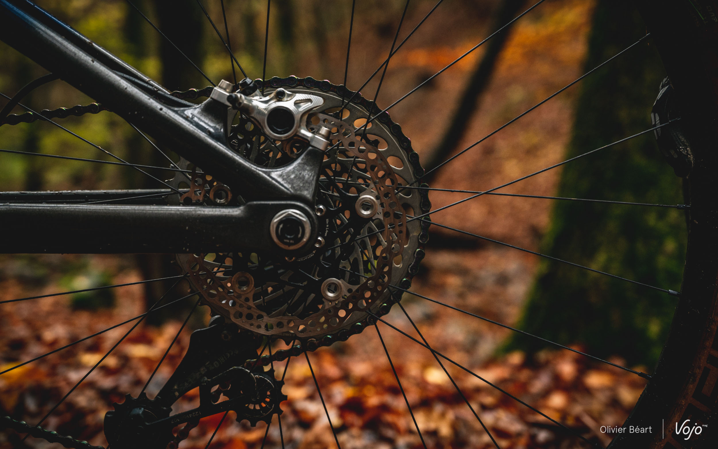 Avec un disque de frein plus grand à l’avant, on a fort logiquement plus de puissance de freinage, un meilleur dosage et aussi moins de risque de surchauffe. Nous sommes donc allés vérifier cela avec notre BH Lynx Race Evo 120mm sur les traces enduro des Hautes-Rivières. Sur ces spéciales qui durent entre 3 et 6 minutes, le risque de surchauffe est moins grand qu’à la MB Race, mais il faut savoir freiner fort à de nombreuses reprises. Il y a aussi de nombreuses portions de racines et de pierres parfois glissantes où il faut pouvoir doser finement son freinage. Et c’est là, sur ces descentes qu’on peut qualifier de trail/enduro ou de « super XC » pour l’occasion, que nous avons pu comparer les sensations avec celles des freins 4 pistons des vélos en 150/160mm ou 160/170mm de débattement que nous roulons habituellement sur ces traces.