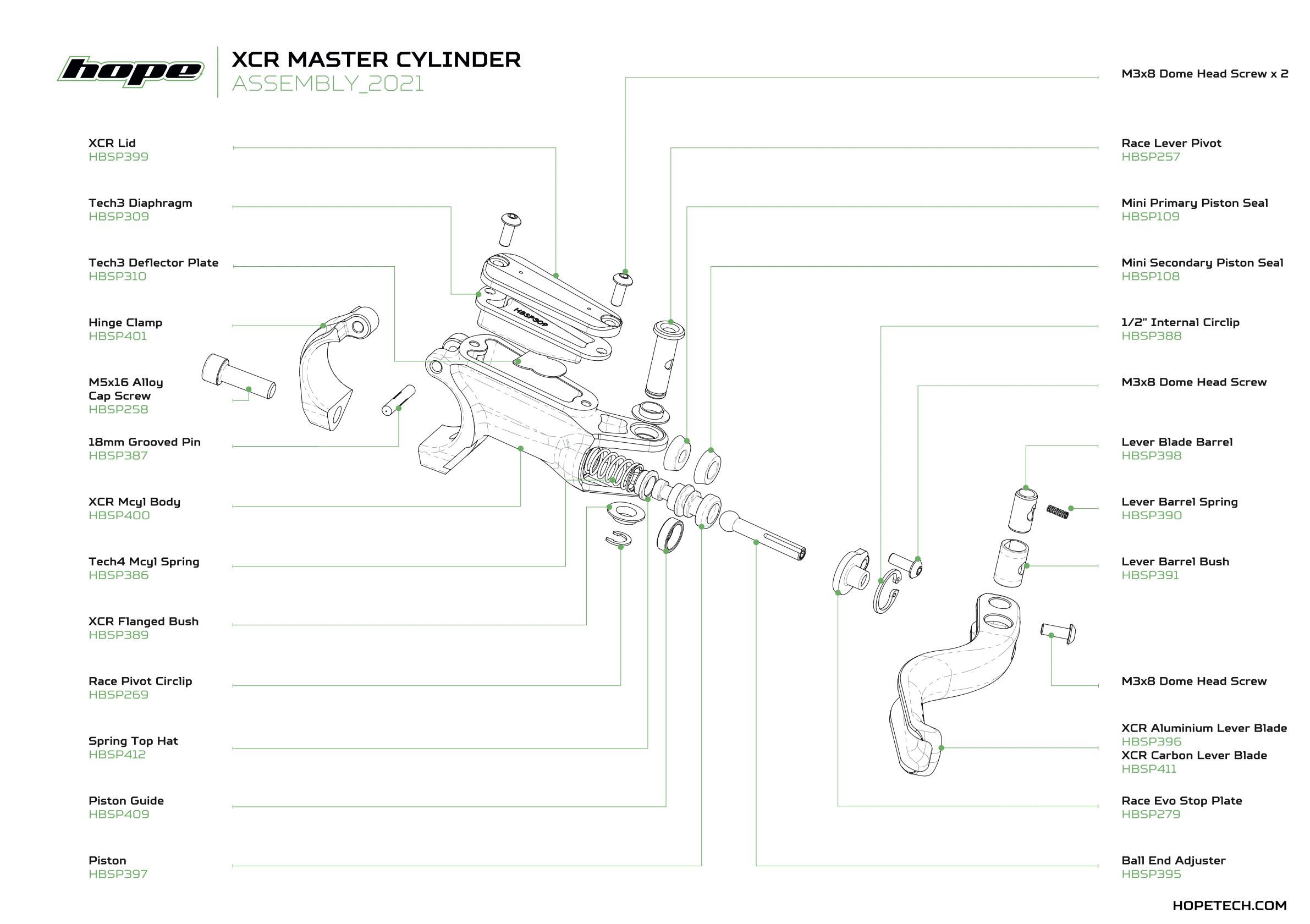 Quand on regarde les dernières collections Hope, on constate qu’il n’y avait plus vraiment eu de frein spécifiquement dédié au cross-country depuis le Race Evo, et que ce rôle était assuré par le Tech3 X2. Ce dernier est certes équipé d’un étrier deux pistons léger, mais sa poignée Tech3 aux nombreux réglages est commune avec les freins enduro/DH et elle s’avère fort massive pour un usage XC compétitif. Sans parler de son poids qui est assez éloigné des références du secteur puisqu’on dépasse les 500g. A côté du Tech 3 X2, qui reste au catalogue comme un frein trail/all-mountain léger, il était temps de compléter l’offre et de renouer avec le glorieux passé de la marque en matière de freins légers et performants. C’est ainsi qu’est né le nouveau levier XCR que vous avez sous les yeux.