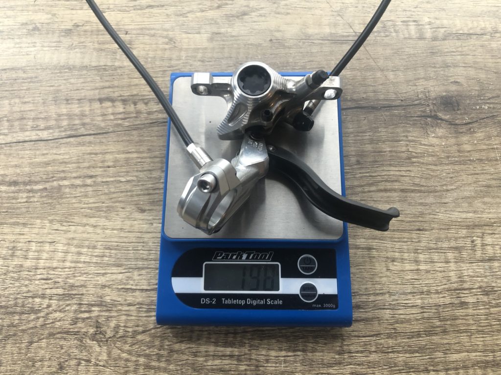On a fait durer le suspense, mais nous avons naturellement pesé cet ensemble Hope XCR sur notre fidèle balance. Verdict : 198g pour en ensemble avant avec Durit recoupée pour un montage sur un bike en taille M avec fourche de 120mm. Quant au frein arrière, il affiche 214g. Pour la paire, cela donne un total de 412g, soit très proche des derniers Shimano XTR Race (404g). Attention : nous avons pesé nos freins avec des plaquettes à support acier, 10g plus lourdes que celles à support en alu. On peut donc descendre sous les 400g (392g exactement) avec l’ensemble Hope XCR ! A part les Trickstuff Piccola (320g), on ne voit que très peu d’ensembles plus légers, puisque les Magura MT8SL tournent autour de 450g la paire et des Sram Level ULT dans les 435g. Sur ce plan, l’objectif est donc pleinement atteint.