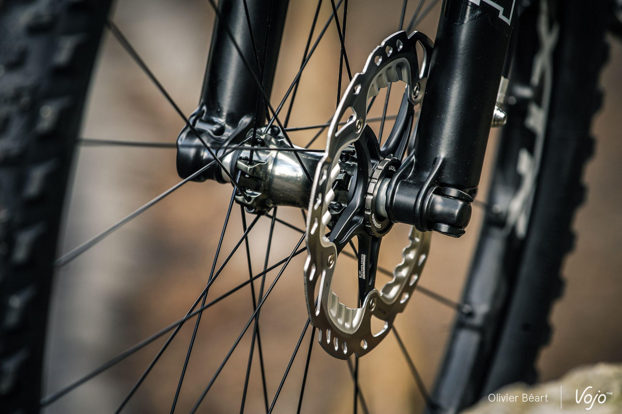Cela dit, au niveau du poids, les freins Shimano XTR Race perdent quelques plumes quand on y ajoute les disques. En XTR, il s’agit d’office de disques Centerlock qui nécessitent un moyeu adapté (Shimano, Dt Swiss, etc). D’autres disques en 6 trous existent au catalogue Shimano, mais pas au niveau XTR. Même si ce n’est officiellement pas recommandé, nous avons aussi rouler ces freins avec d’autres disques (Magura notamment) et le résultat était excellent.
