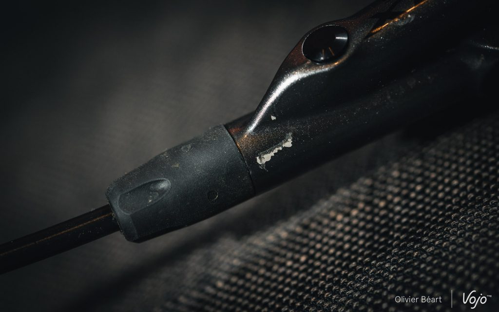 Les leviers n’ont pas pris de jeu au cours du test, mais la magnifique finition métallisée est assez fragile et supporte mal les frottements ainsi que les impacts. Les freins sont des accessoires assez peu exposés mais quand même.