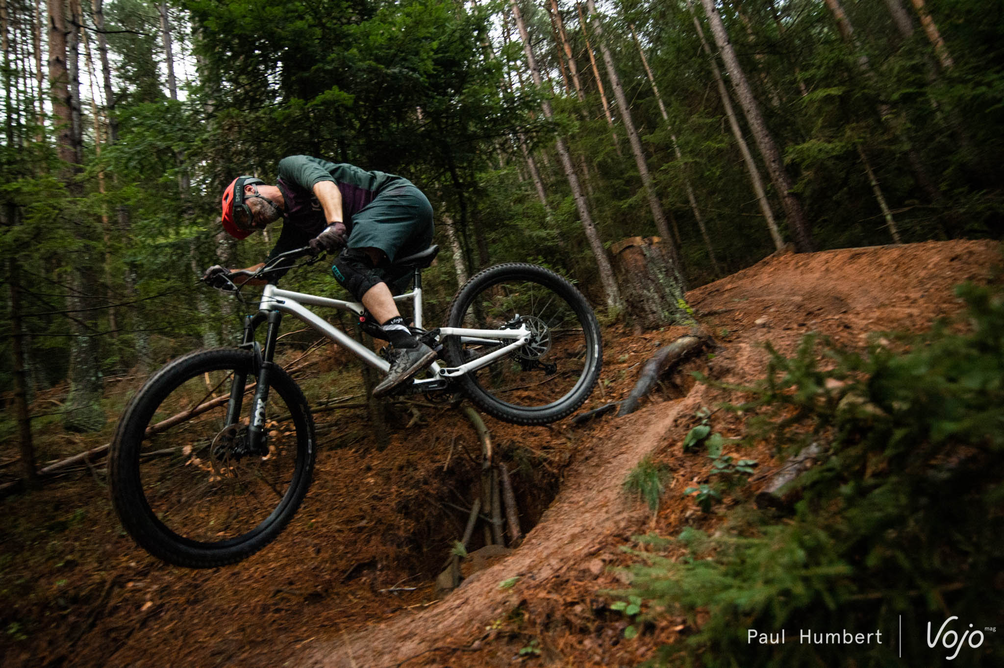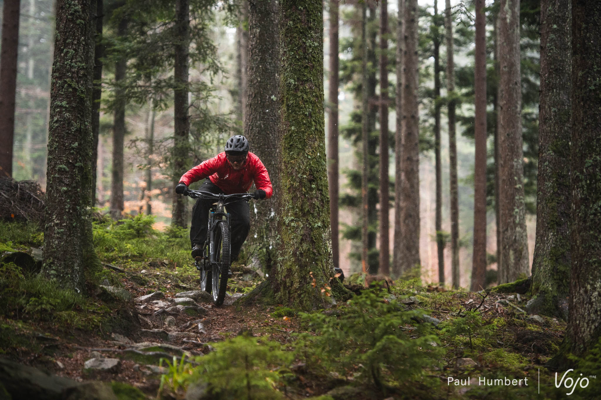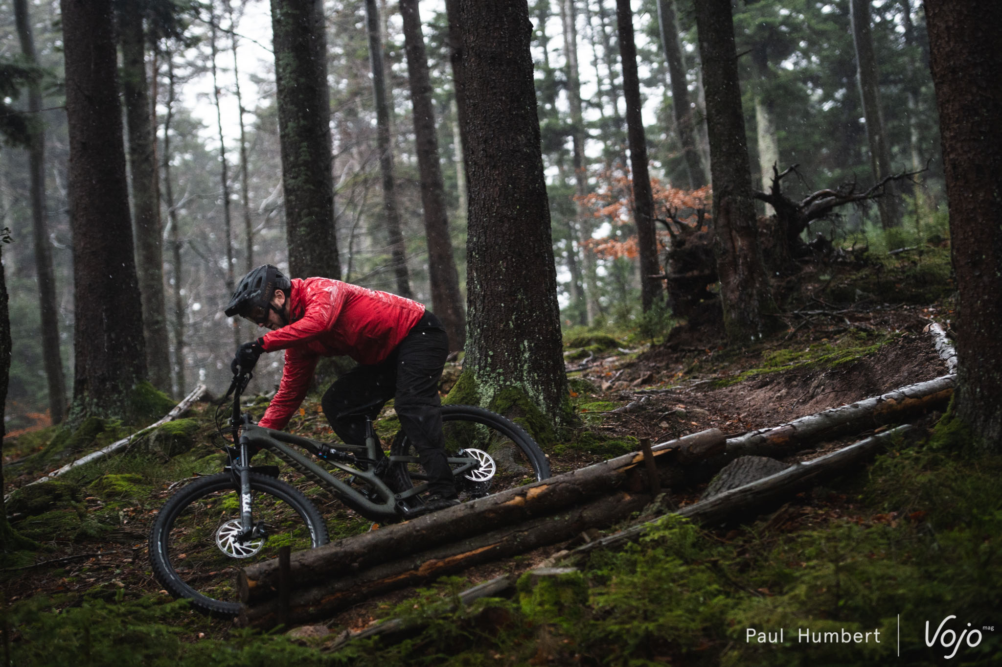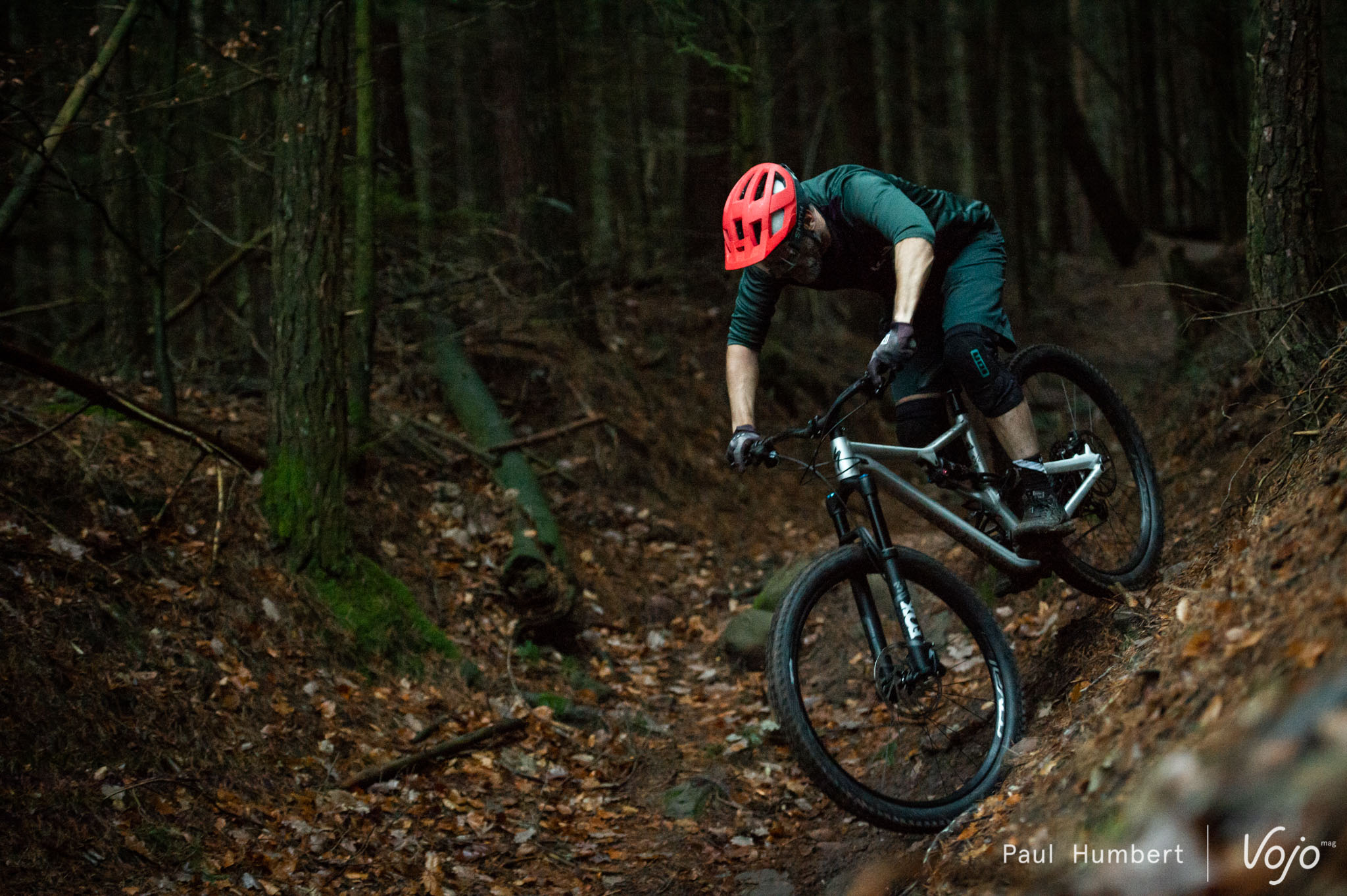 Seule restriction : les descentes ne sont jamais longues et les sorties s’apparentent ici à des successions de up/down à coup de 100m de D+/D- à chaque coup, pour un total qui tourne souvent autour de 1200m de d+ sur 40 bornes dans la région de Liège, où se trouve le « headquarter » belge de Vojo. Pas besoin donc d’énormément de débattement, mais un vélo joueur, bien suspendu et qui pédale bien semble idéal.