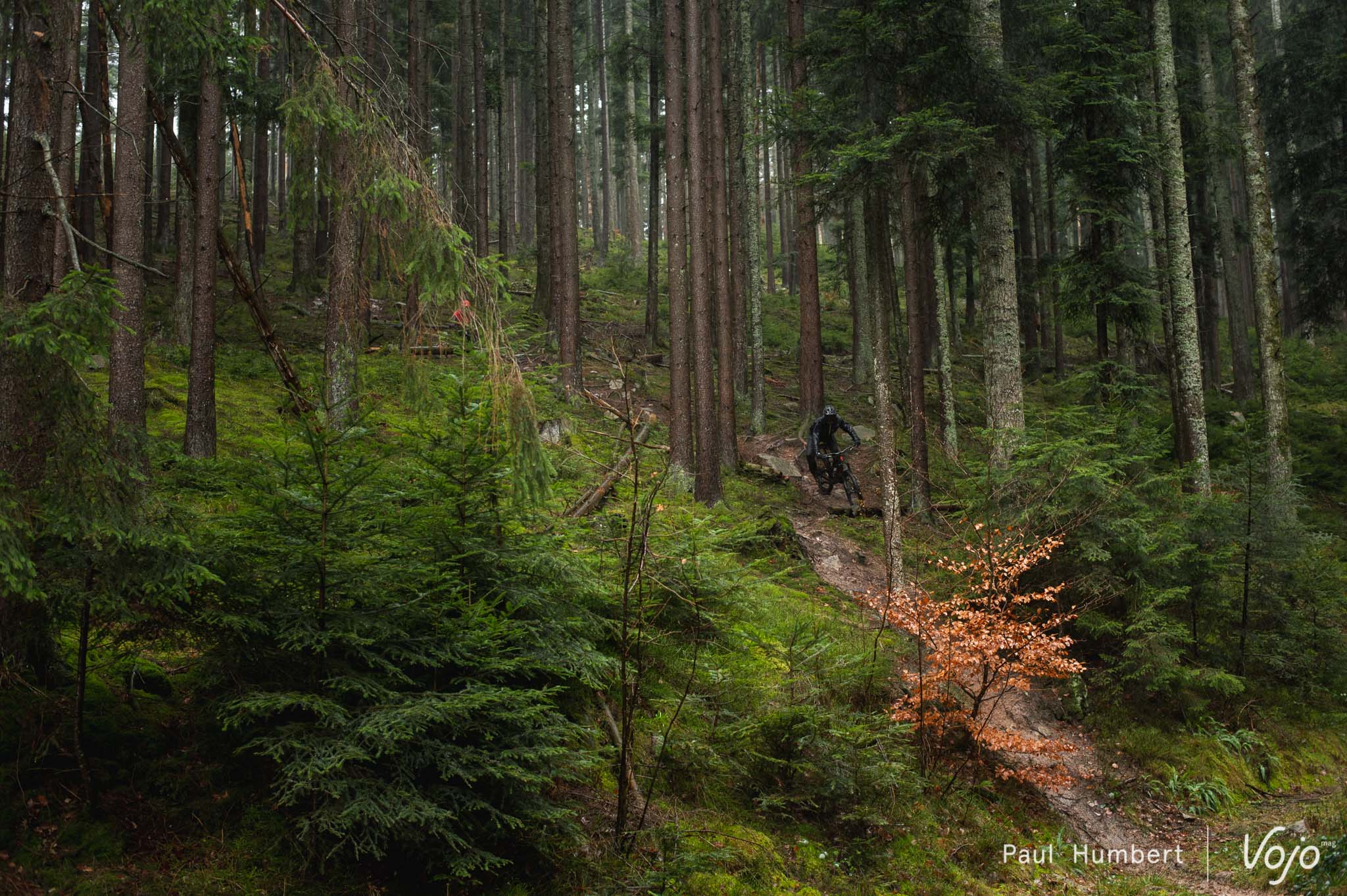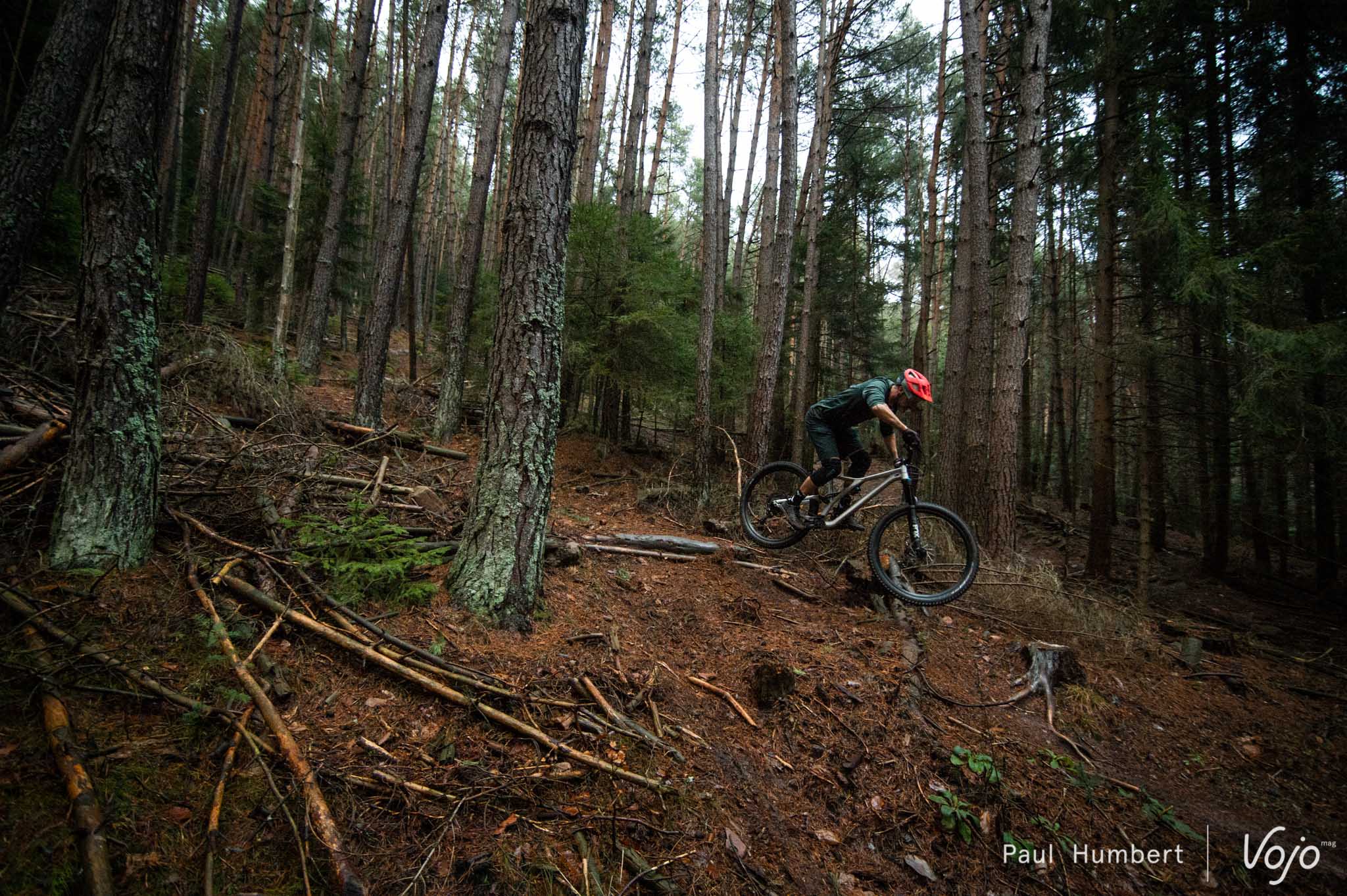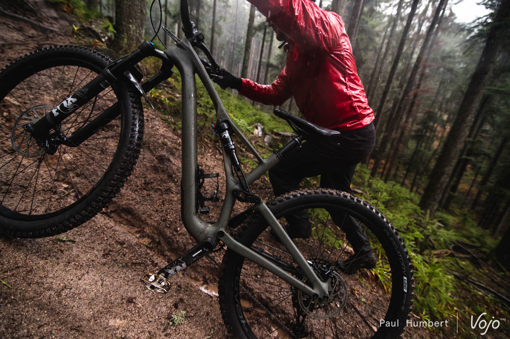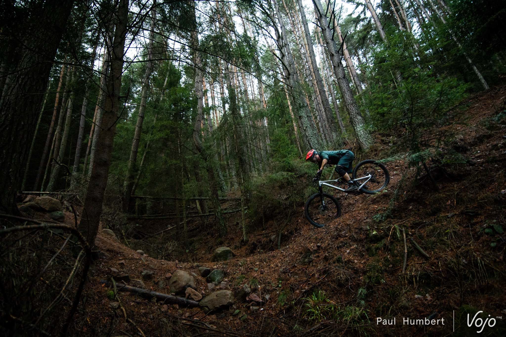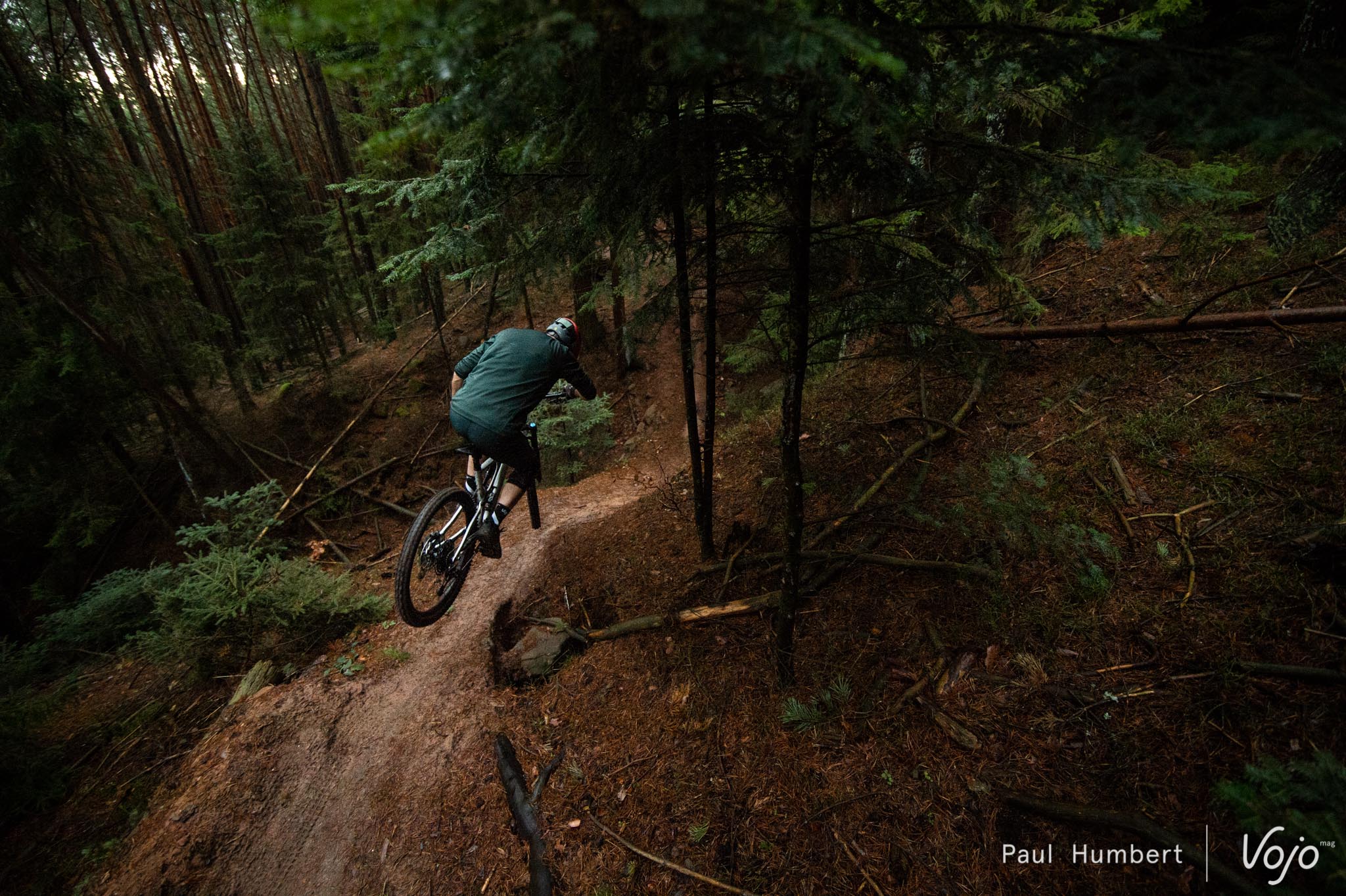 Seule restriction : les descentes ne sont jamais longues et les sorties s’apparentent ici à des successions de up/down à coup de 100m de D+/D- à chaque coup, pour un total qui tourne souvent autour de 1200m de d+ sur 40 bornes dans la région de Liège, où se trouve le « headquarter » belge de Vojo. Pas besoin donc d’énormément de débattement, mais un vélo joueur, bien suspendu et qui pédale bien semble idéal.
