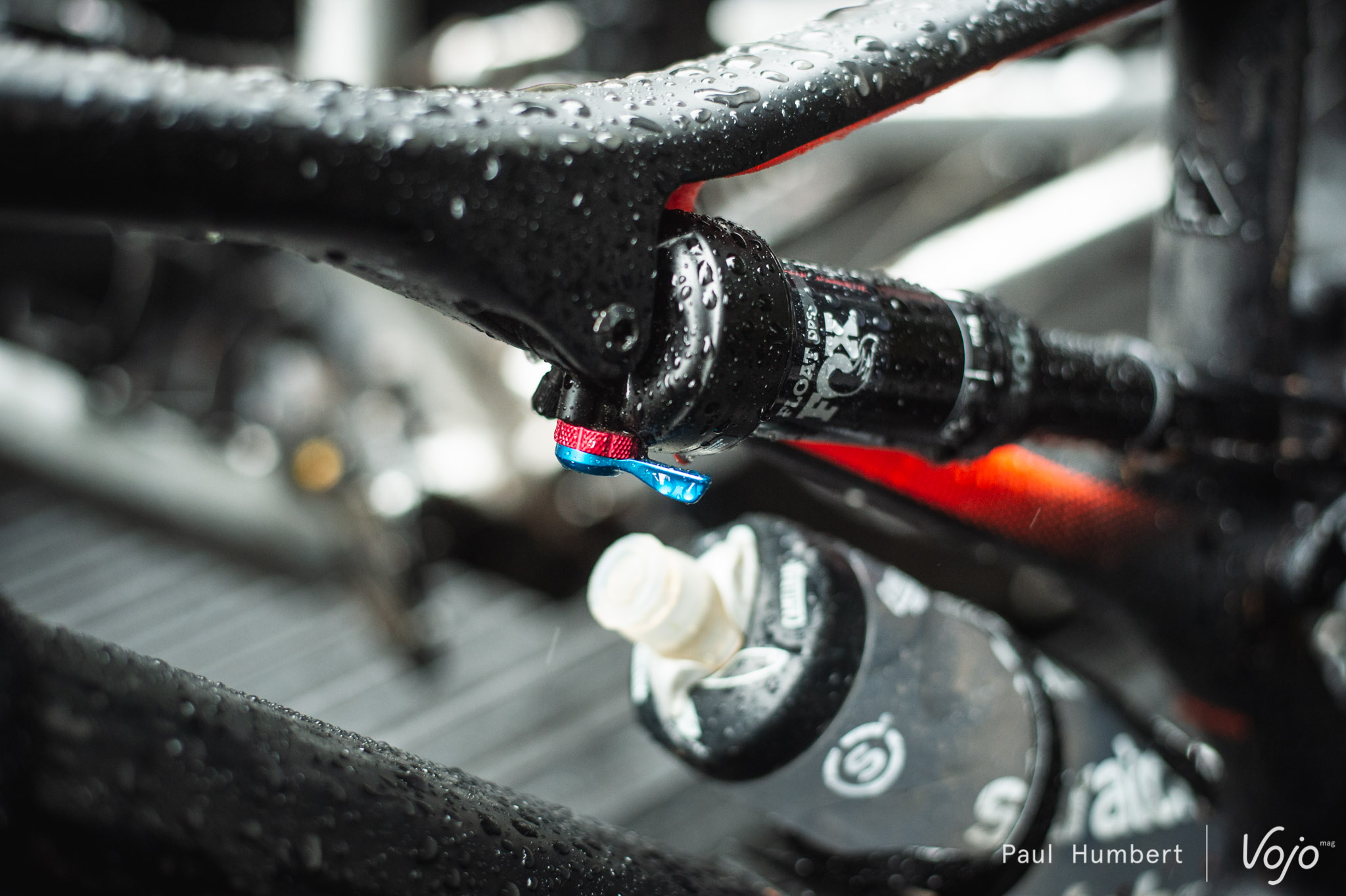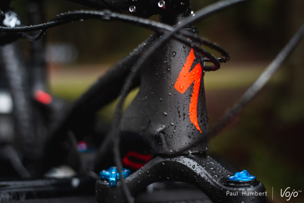Pour le reste, les composants sont pour la plupart maison, sans fioriture mais avec une excellente ergonomie (poste de pilotage, selle). La tige de selle télescopique X-Fusion Manic n’a rien de luxueux mais elle fait vraiment bien le job, et son maniement est ici rendu encore plus agréable par l’adoption de la commande au guidon Specialized, vraiment parfaite.