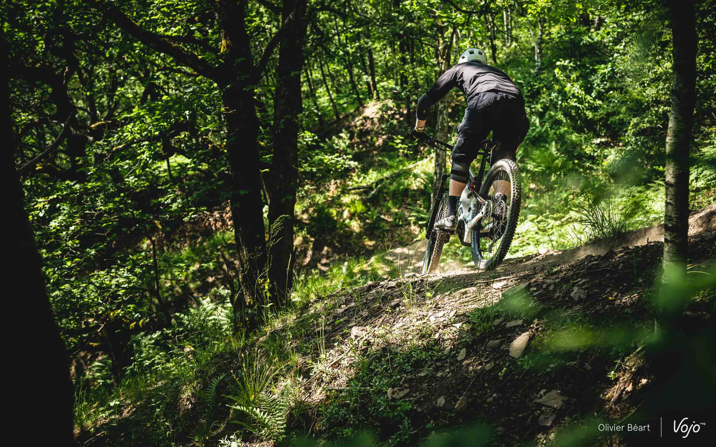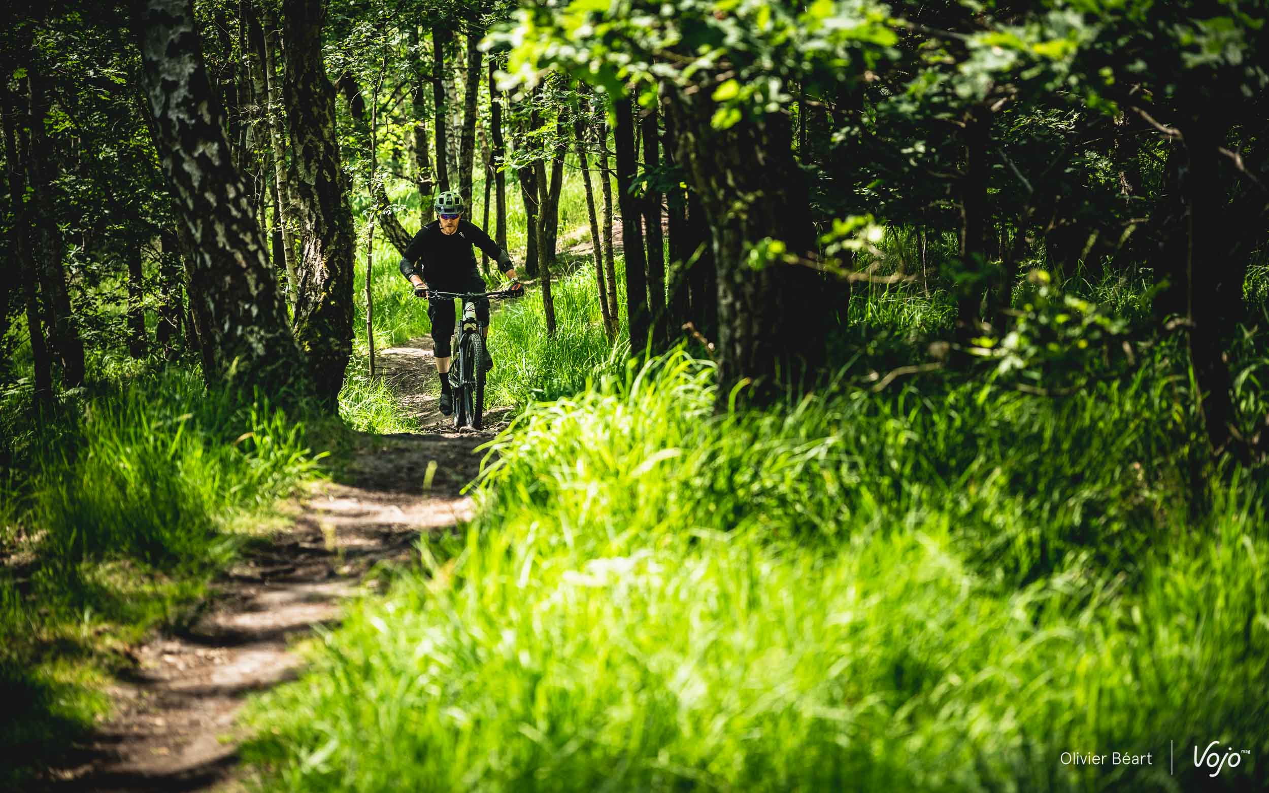 La philosophie demeure la même lorsque la pente s’inverse : le G Light Trail invite à profiter des sentiers et des obstacles rencontrés sans chercher les excentricités de pilotage ou à battre des records de vitesse. La plateforme est plutôt accessible, offrant une bonne dose de maniabilité et une vraie sensation de sécurité, renforcée par la longueur du vélo. A nouveau, on sent qu’on est bien posé au sol, avec un vélo prévisible qui met son pilote en confiance, mais sans le pousser à sauter à chaque racine où à se jeter dans les virages en balançant le vélo. Clairement, il n’est pas fait pour cela. Son créneau, c’est le côté rassurant, ce qui plaira beaucoup aux bikers moins aguerris. A noter que la rigidité du châssis carbone nous a semblé parfaitement dosée, sans aucun excès.