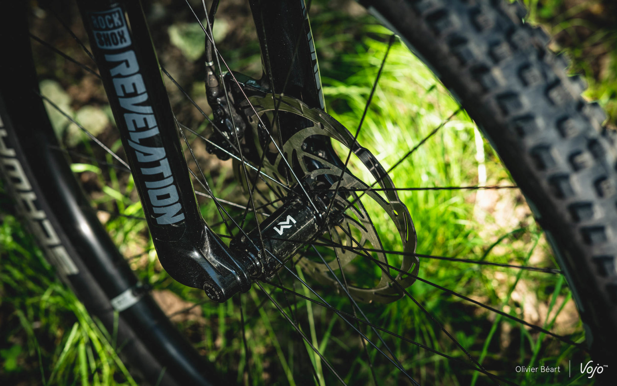 C’est RockShox qui est aux commandes niveau suspensions avec un amortisseur Deluxe Select et une fourche Revelation RC. Sur le terrain, cette dernière impose de faire un certain choix entre confort à basse vitesse et soutien dans les appuis et freinages (nous en reparlerons), mais pour le prix du vélo, difficile d’avoir mieux.