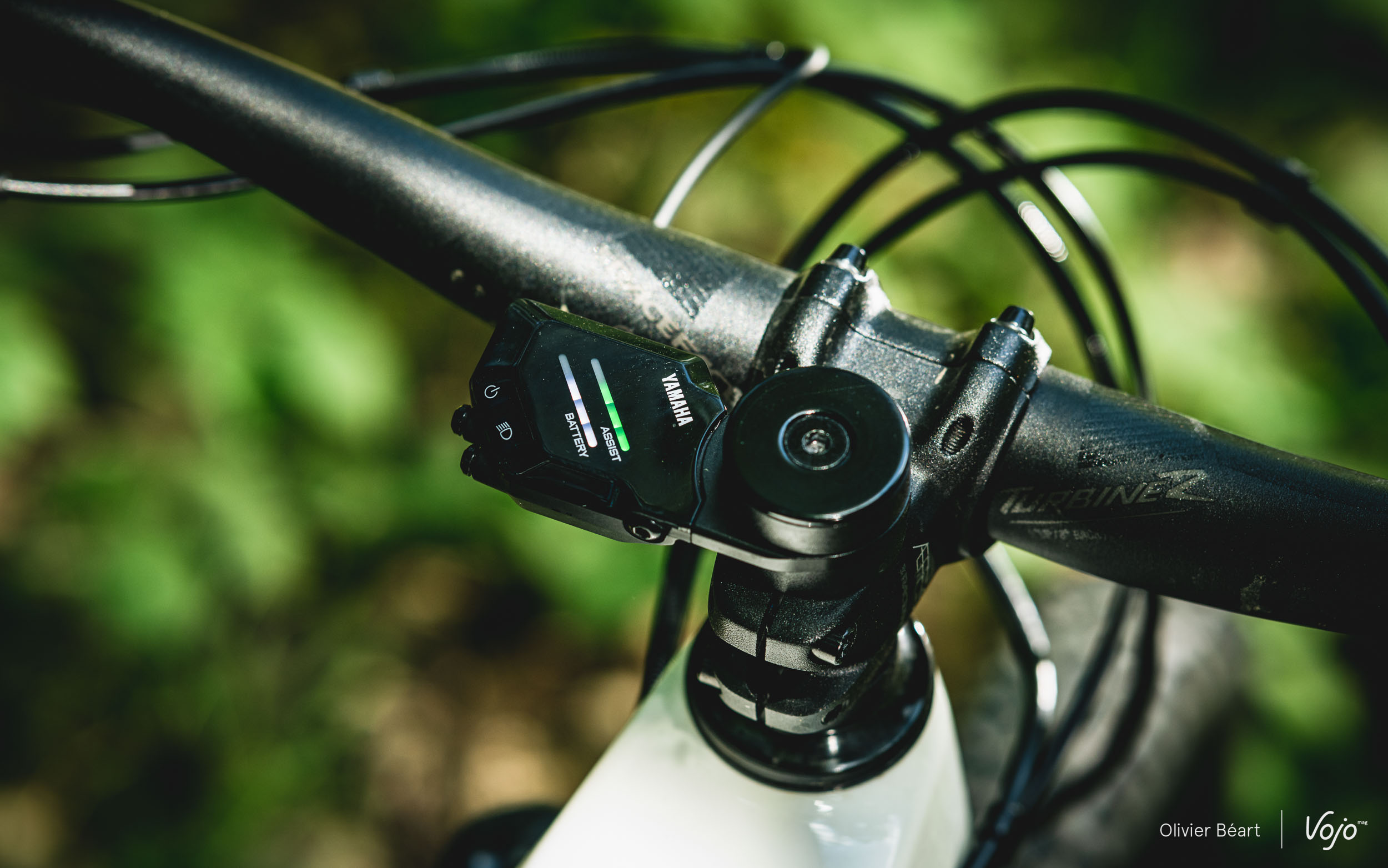 Ce tableau assez réjouissant du côté de l’assistance est hélas un peu terni par quelques détails. Tout d’abord, l’assistance manque de discrétion au niveau sonore. Si celle-ci n’est pas la plus bruyante de celles que nous avons eu l’occasion de tester jusqu’à présent, la fréquence de son bruit nous semble par contre mal ajustée et trop aiguë, ce qui a pour conséquence de donner l’impression que celle-ci est plus audible. C’est un problème auquel on avait déjà fait face lors de la première itération du Specialized Levo SL et que la marque californienne a réussi à corriger avec la seconde génération présenté récemment. Peut-être que Yamaha suivra la voie à l’avenir ? Autre bruit agaçant, celui de la batterie qui a tendance à bouger dans son logement et à émettre des claquements en descente technique. Enfin, cette assistance Air Drive Issue du Yamaha PW-X3 est aussi affectée par le problème de sensibilité excessive qu’on lui avait déjà reprochée, notamment sur le R Raymon TrailRay E 9.0. Cette hypersensibilité se ressent lorsque le vélo est à l’arrêt, pied sur la pédale, où l’on peut constater que la manivelle tremble comme un cheval fougueux, impatient de partir.
