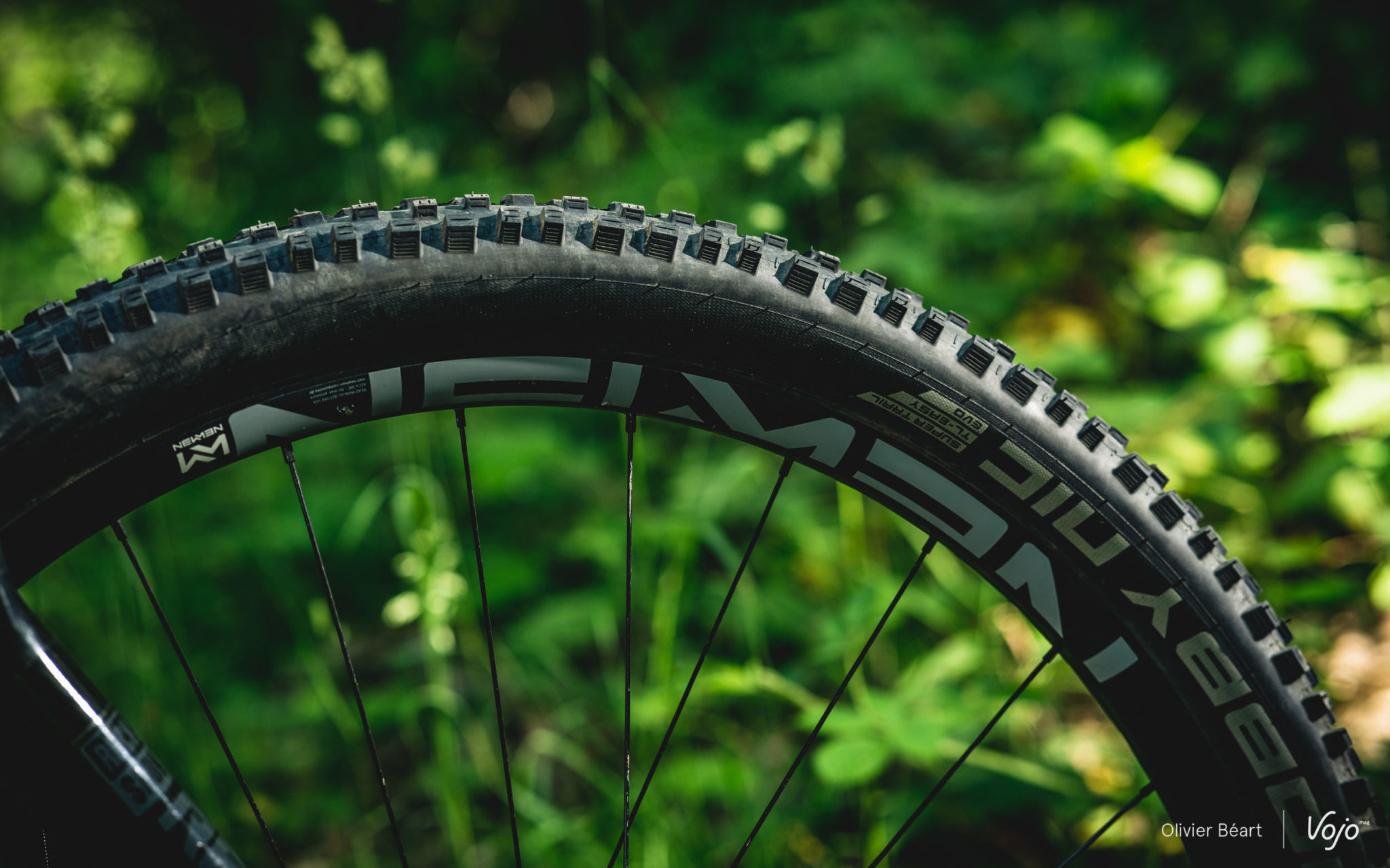 Quant aux pneus, si le catalogue annonce des Continental Mountain King en 2.3, notre modèle de test est arrivé équipé de Schwalbe Nobby Nic 2.3. Fort étroits d’apparence, nous avons pensé en début de test que nous devrions les changer rapidement mais, au final, nous les avons conservés pour toute la durée de l’essai car ils ne nous ont pas tant pénalisés que cela et leur compromis entre faible résistance au roulement et accroche correcte est plutôt pertinent sur ce genre de vélo pour un usage polyvalent.